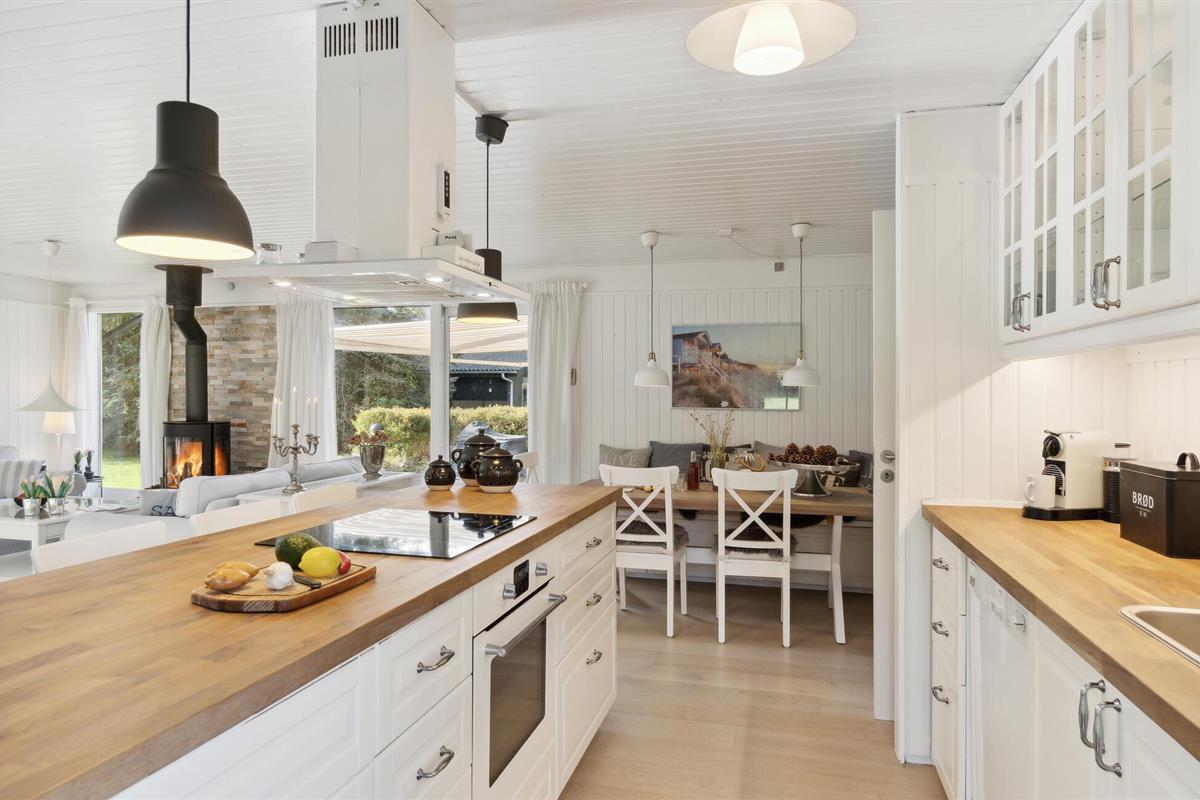 Geniet van een stijlvol houten vakantiehuis vlak bij Vester Lyng strand, perfect voor een ontspannen familievakantie.