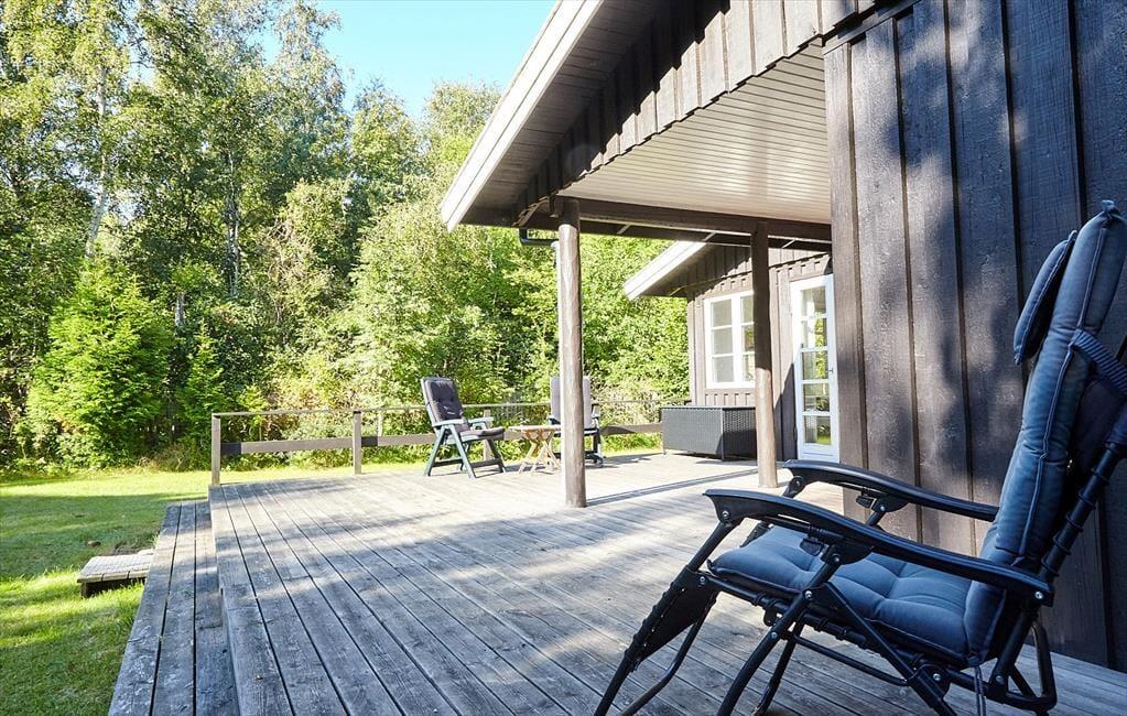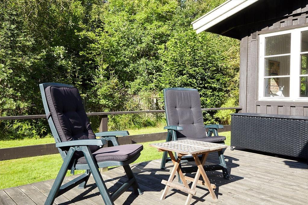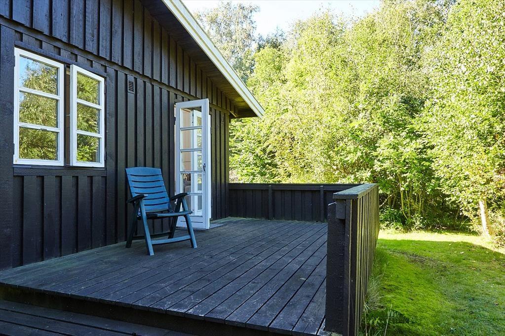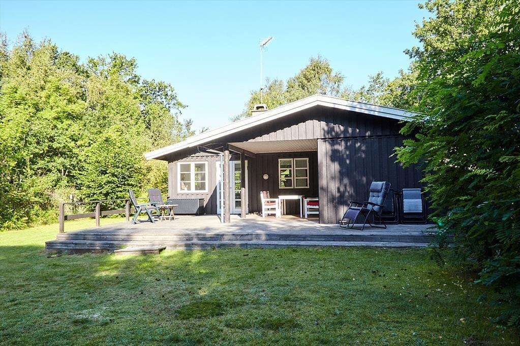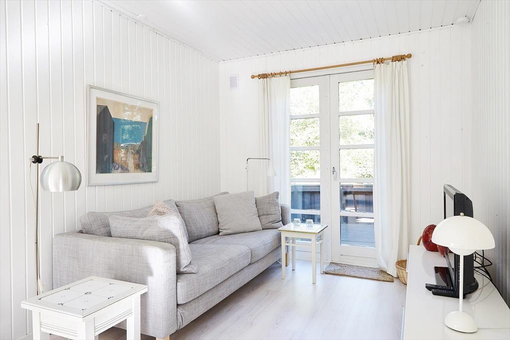Das Haus ist eingerichtet mit einem schönen und hellen Wohnzimmer mit Möglichkeiten zu Entspannung und Gemütlichkeit. Hier können Sie sich in ein gutes Buch vertiefen oder eine Runde Karten spielen. Die offene Küche verfügt über einen guten Essbereich. Das Badezimmer ist mit Dusche. Es gibt drei Schlafzimmer, das eine mit Doppelbett und das andere mit zwei Einzelbetten und das letzte mit einem Einzelbett. Vom Wohnzimmer aus haben Sie einen Zugang zu einer schönen Terrasse, die aus einem besonders gemütlichen überdachten und einem größeren offenen Teil besteht. Hier können Sie die Sonne von morgens bis abends genießen, während die Kinder im Garten spielen.