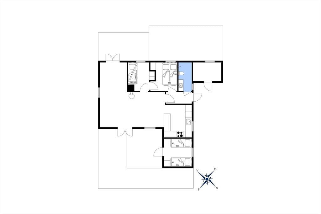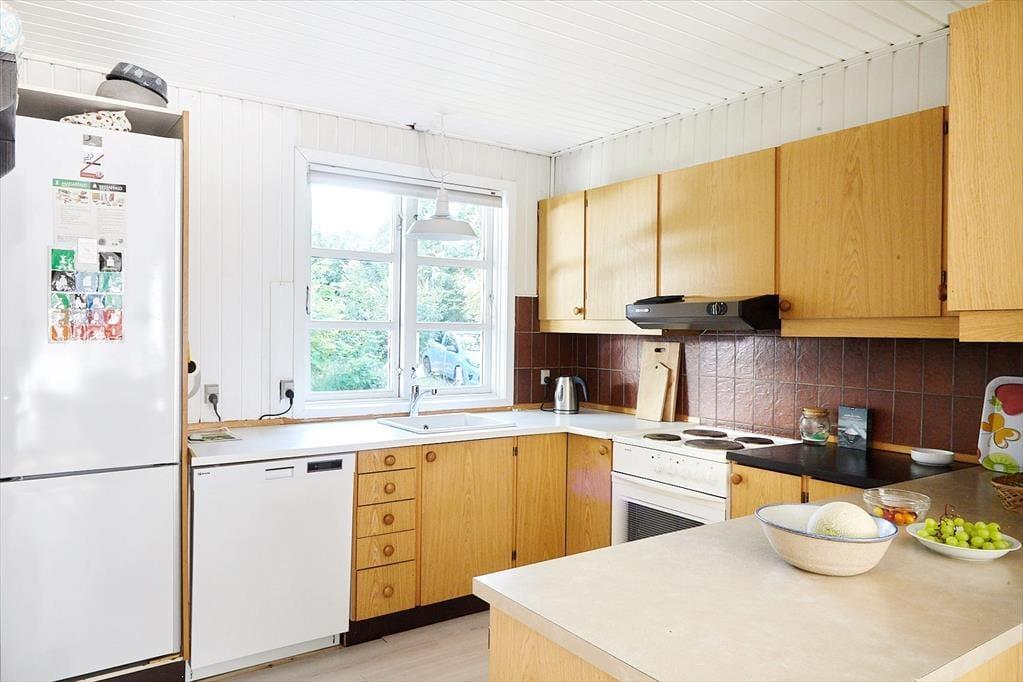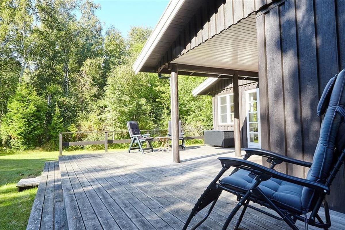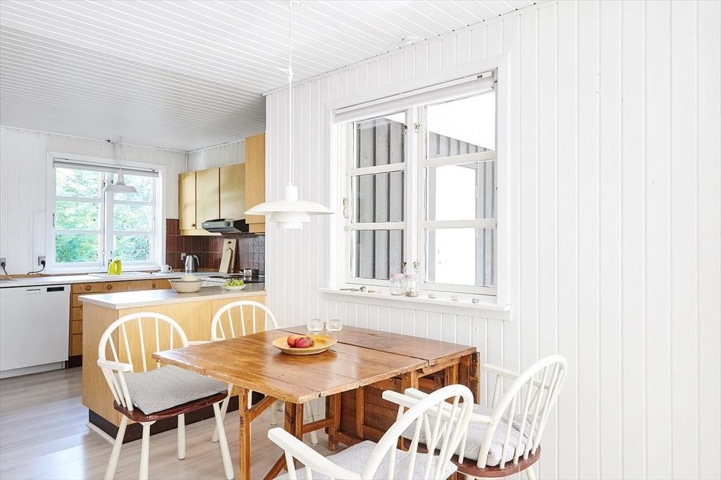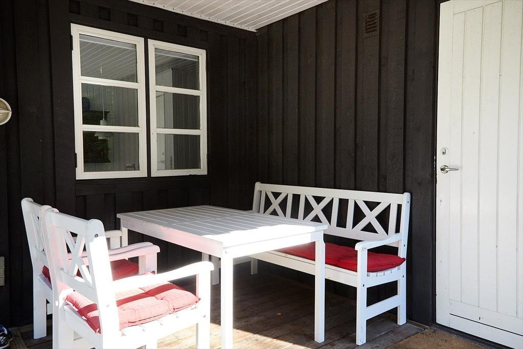 Das Haus ist eingerichtet mit einem schönen und hellen Wohnzimmer mit Möglichkeiten zu Entspannung und Gemütlichkeit. Hier können Sie sich in ein gutes Buch vertiefen oder eine Runde Karten spielen. Die offene Küche verfügt über einen guten Essbereich. Das Badezimmer ist mit Dusche. Es gibt drei Schlafzimmer, das eine mit Doppelbett und das andere mit zwei Einzelbetten und das letzte mit einem Einzelbett. Vom Wohnzimmer aus haben Sie einen Zugang zu einer schönen Terrasse, die aus einem besonders gemütlichen überdachten und einem größeren offenen Teil besteht. Hier können Sie die Sonne von morgens bis abends genießen, während die Kinder im Garten spielen.