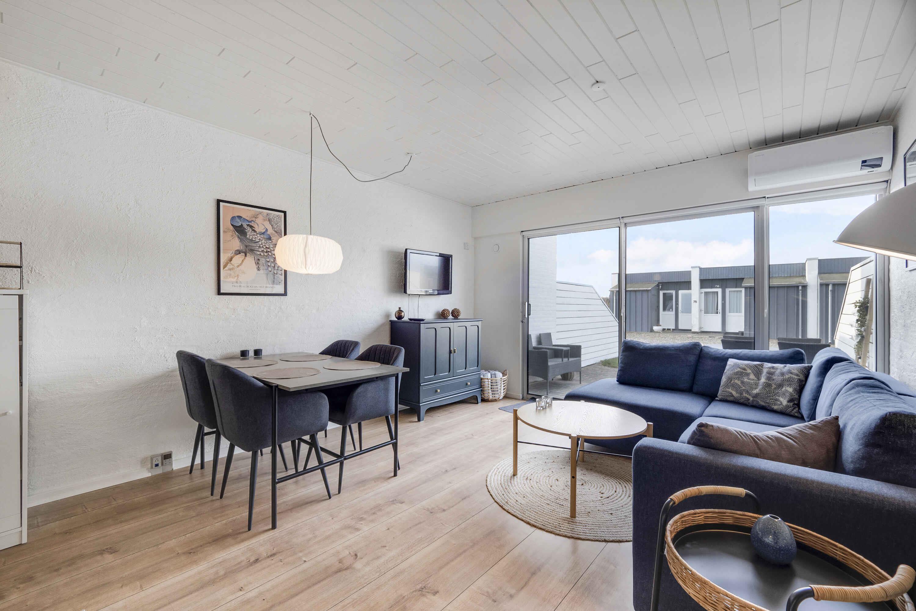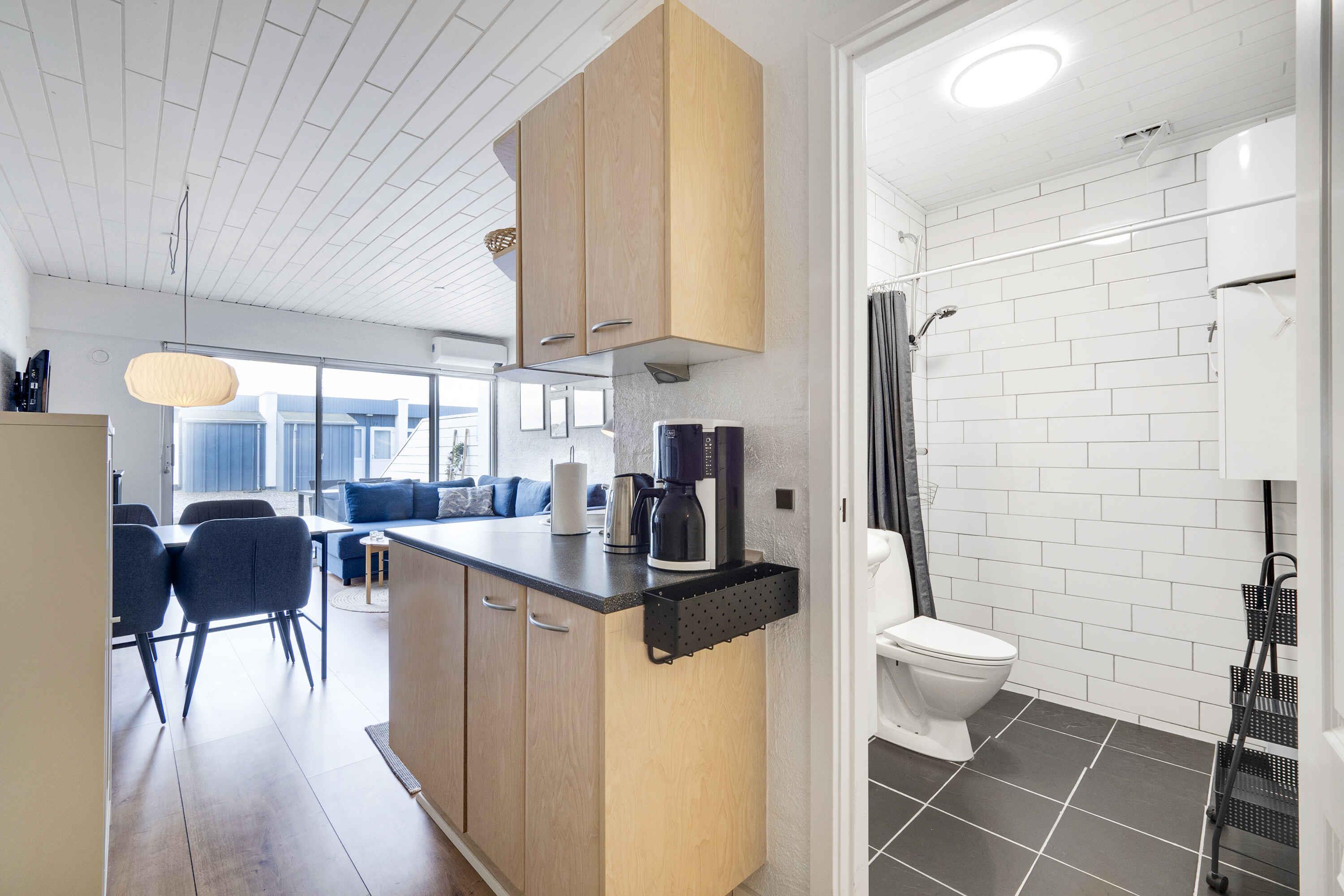In de eerste rij duinen wordt een prachtig gerenoveerde vakantiewoning te huur aangeboden in Agger Tangeferiecenter. Gratis toegang tot binnenzwembad/sauna (in de winter gesloten). Het gebied maakt deel uit van Nationaal Park Thy en Cold Hawaii. Kom en ervaar de soms woeste Noordzee, goede vismogelijkheden en mooie wandel-/hardlooproutes. De woning is onlangs gerenoveerd en voorzien van nieuw meubilair. Slaapkamer met 2 eenpersoonsbedden die kunnen worden samengevoegd tot een tweepersoonsbed en een kledingkast. Mooi badkamer met douche en vloerverwarming. De keuken is gecombineerd met de woonkamer en is uitgerust met een koelkast met vriesvak, oven, koffiezetapparaat, waterkoker en vaatwasser. De woonkamer is voorzien van nieuw meubilair en een slaapbank voor 2 personen. Er is internet en een flatscreen-tv met Chromecast. De woning heeft een nieuwe warmtepomp. Mooie terras met mooi uitzicht over een groene omgeving. Er is een speeltuin, tennisbaan en minigolf bij het complex. Het vakantiecentrum heeft een binnenzwembad met kinderbad en sauna, dat gratis gebruikt kan worden vanaf Pasen tot week 42. Er is een wasserette. Er staan gasbarbecues bij het centrum die vrij gebruikt kunnen worden. Als u uw eigen eten bij het centrum wilt eten, moet u daar drankjes kopen. Er zijn veel uitstapjes in de omgeving. Er worden fietsen en uitrusting voor wateractiviteiten verhuurd. Leuke omgeving voor stellen en gezinnen met kinderen, een luie vakantie of een actieve vakantie.