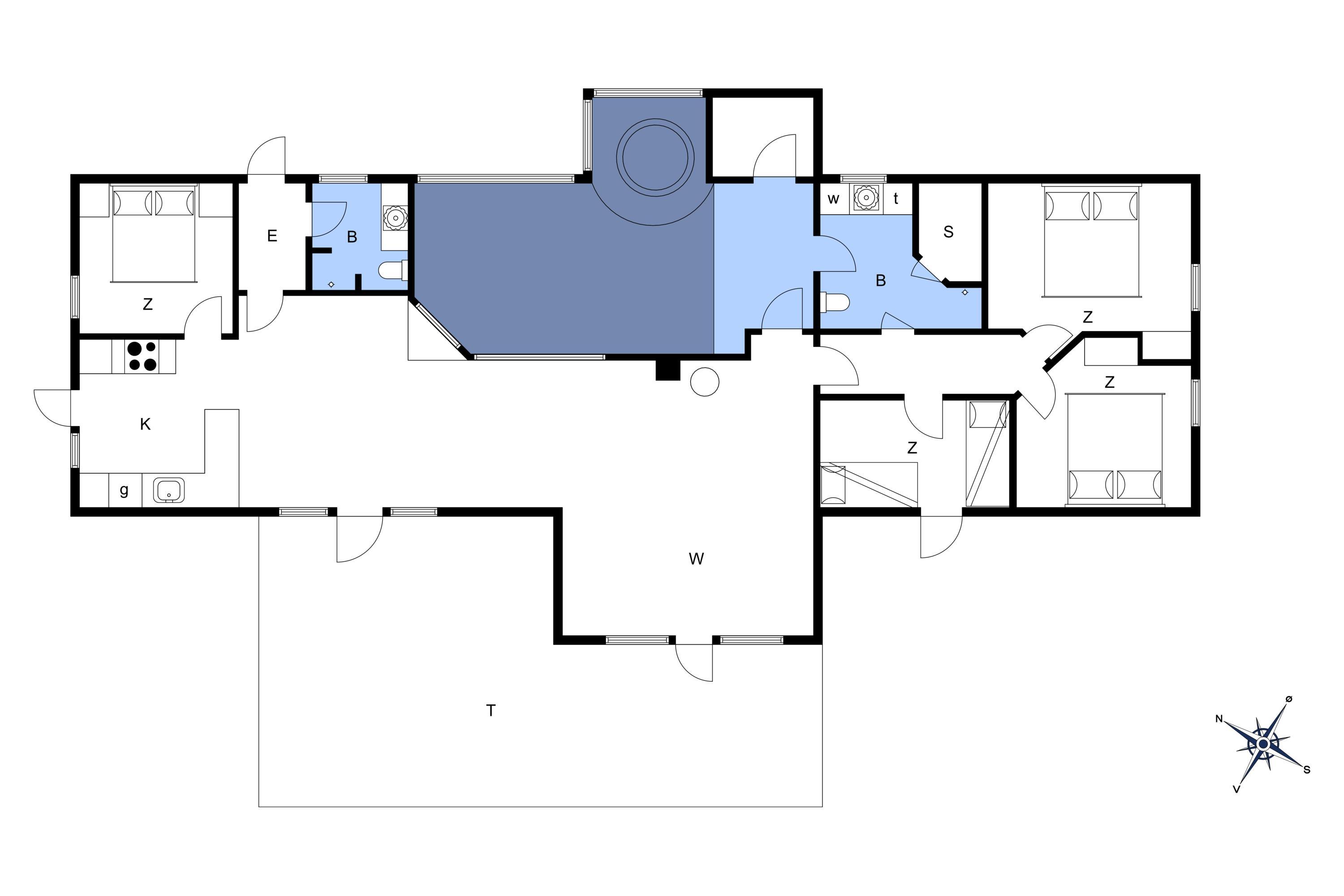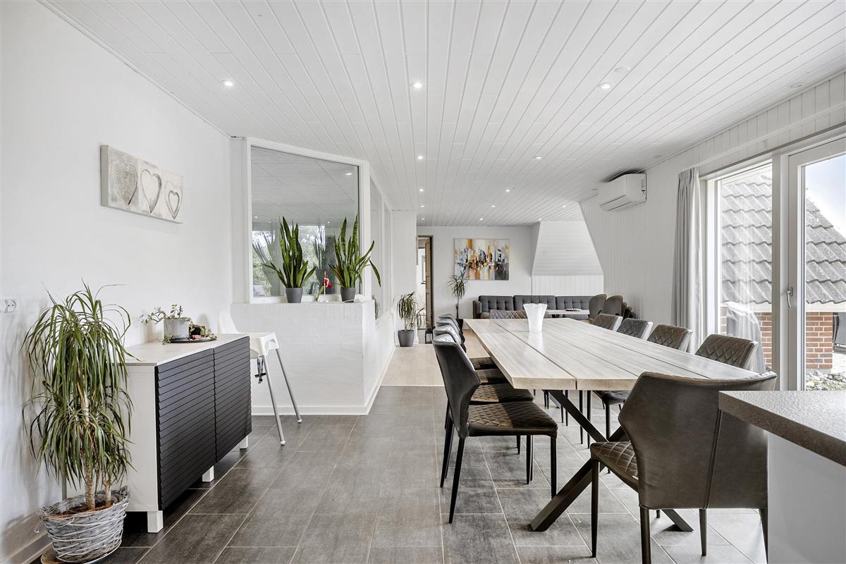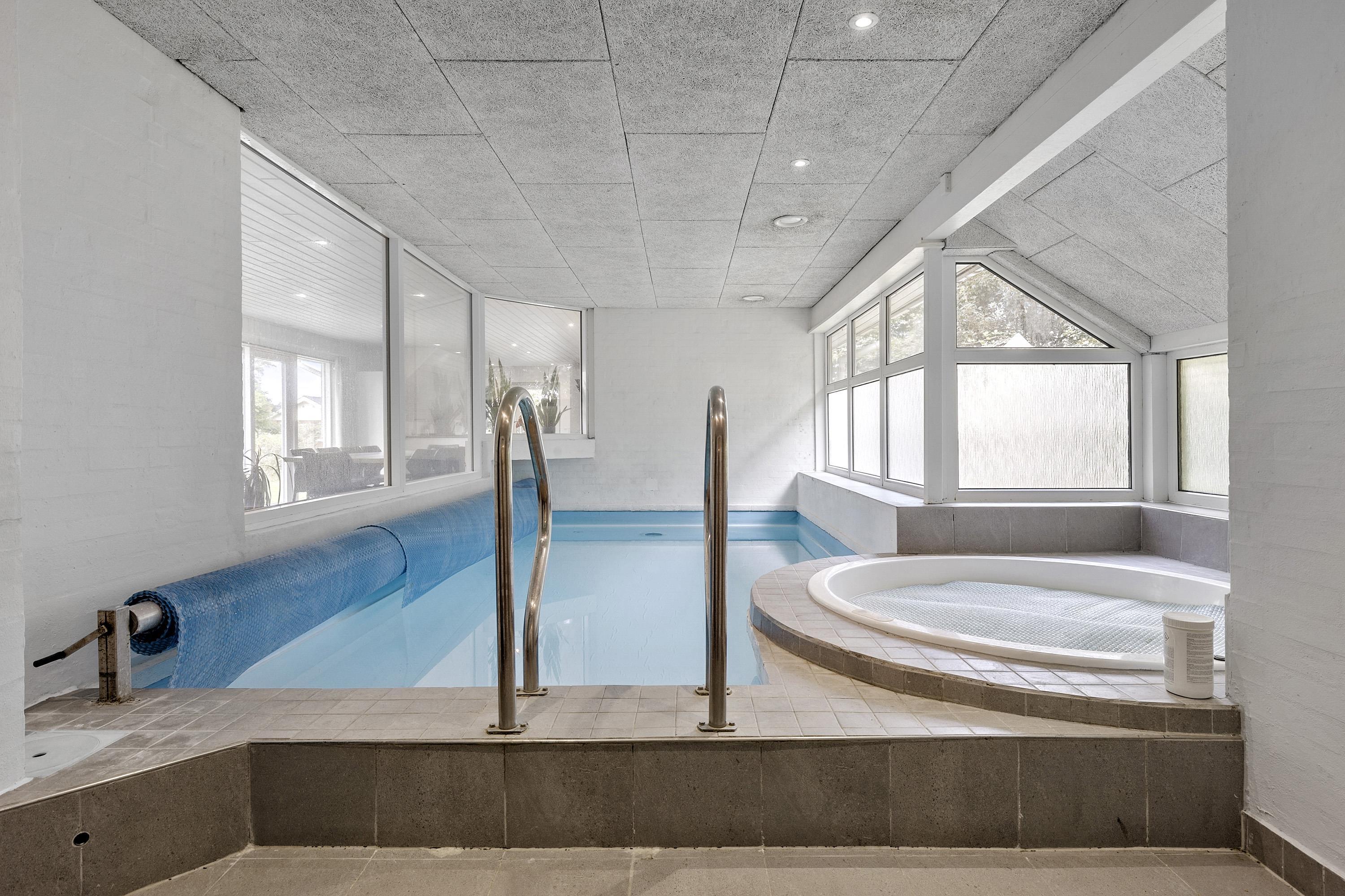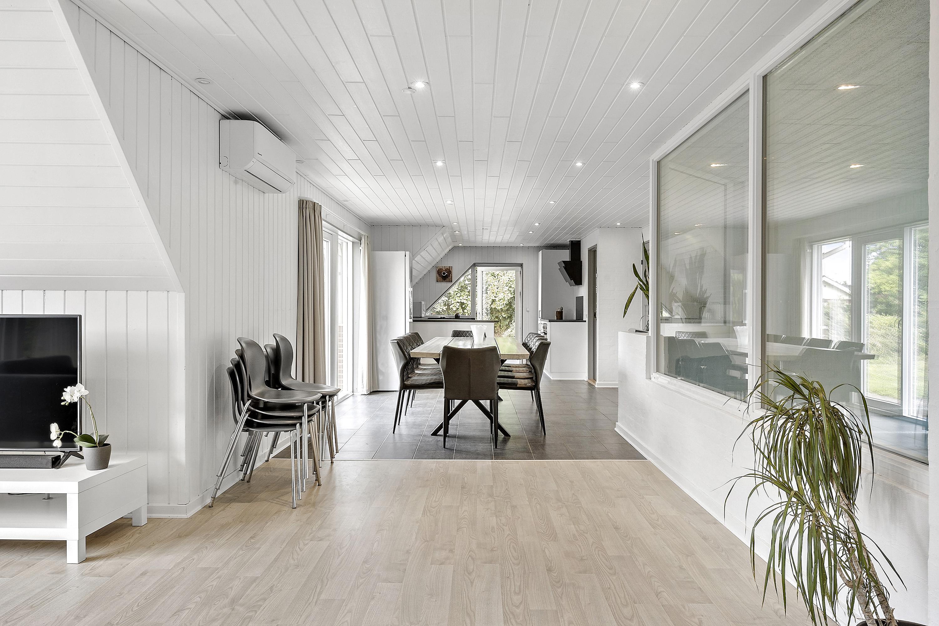 Das Urlaubsdomizil befindet sich im beliebten Ferienhausgebiet von Skåstrup Strand, nur 200 Meter abseits des kinderfreundlichen Badestrandes, der Ihnen auch gute Angelbedingungen bietet. Das Haus empfängt Sie mit einer hellen und gut ausgestatteten Küche, die sich in offener Verbindung zum kombinierten Wohn- und Essbereich befindet. Der moderne und ansprechende Wohnbereich verwöhnt Sie mit einem romantisch knisternden Kaminofen und einem direkten Zugang zum großen Terrassenareal. Vom Wohnraum aus gelangen Sie darüber hinaus auch in den schönen Poolraum, der neben dem Swimmingpool auch mit einem attraktiven Whirlpool besticht. Die Schlafplätze verteilen sich auf insgesamt vier gute Schlafräume mit drei Doppelbetten und vier Etagenbetten. Hinzu gesellen sich zwei gute Badezimmer mit je einer Dusche. Im gemütlichen Nebengebäude mit El-Heizung sind drei weitere Schlafgelegenheiten in Form von Matratzen untergebracht – das Nebengebäude kann bis zu 3 Wochen vor Anreise erworben werden – fragen Sie bitte Slotsferie Danmark nach dem Preis.
