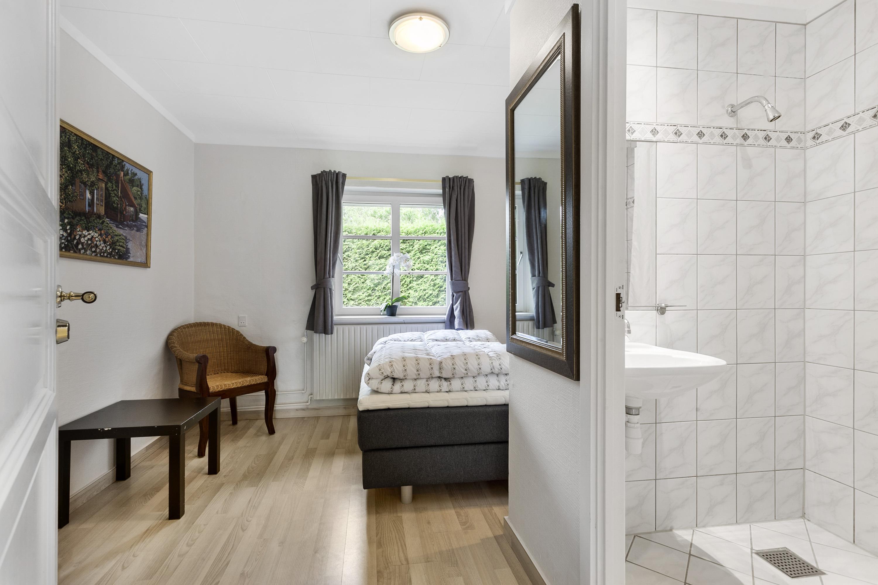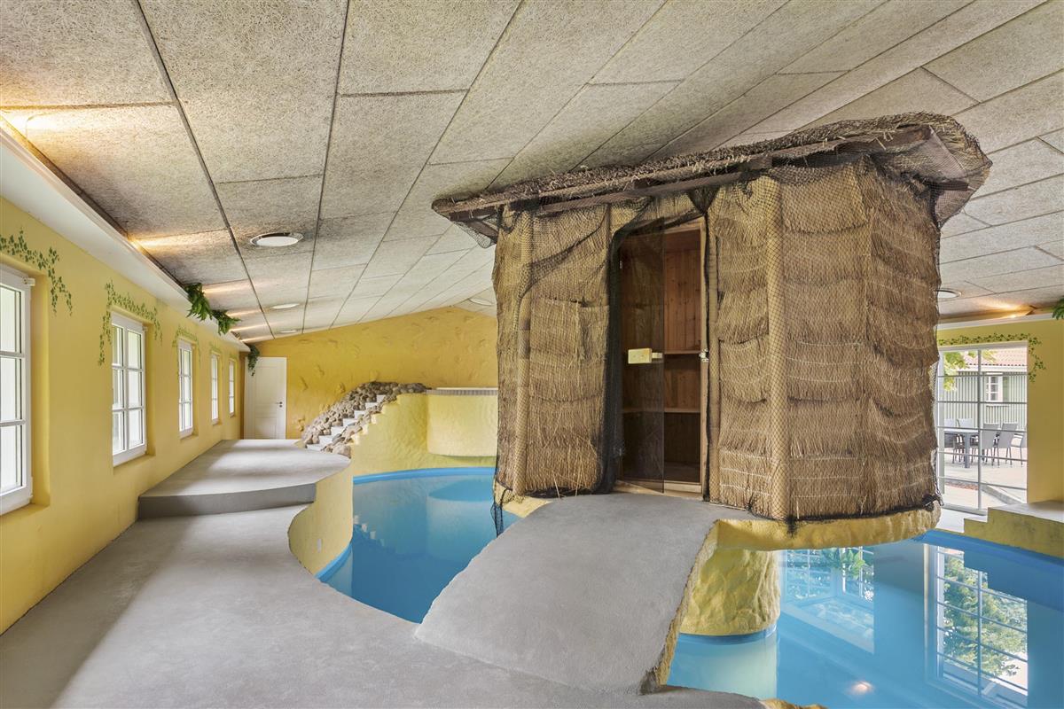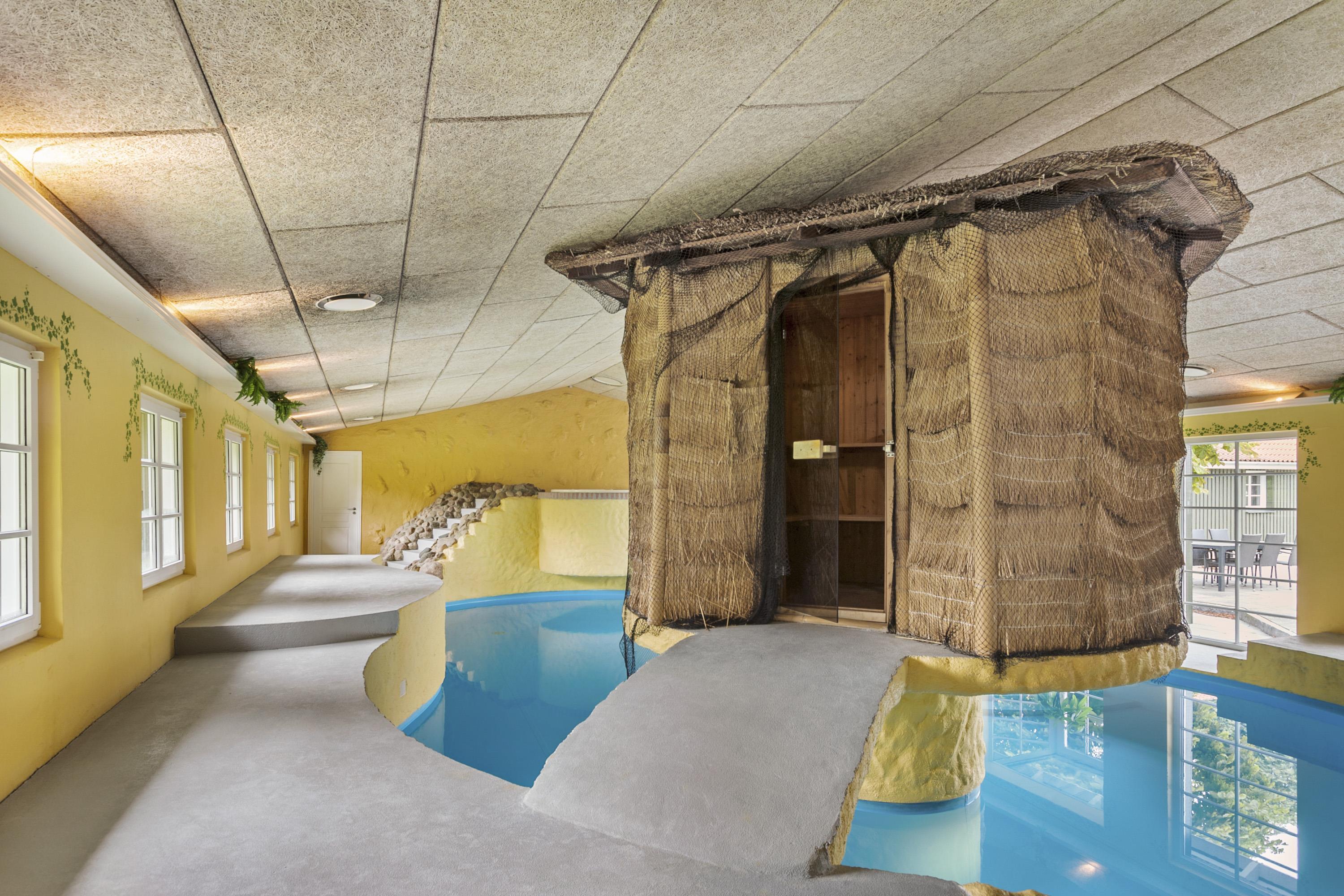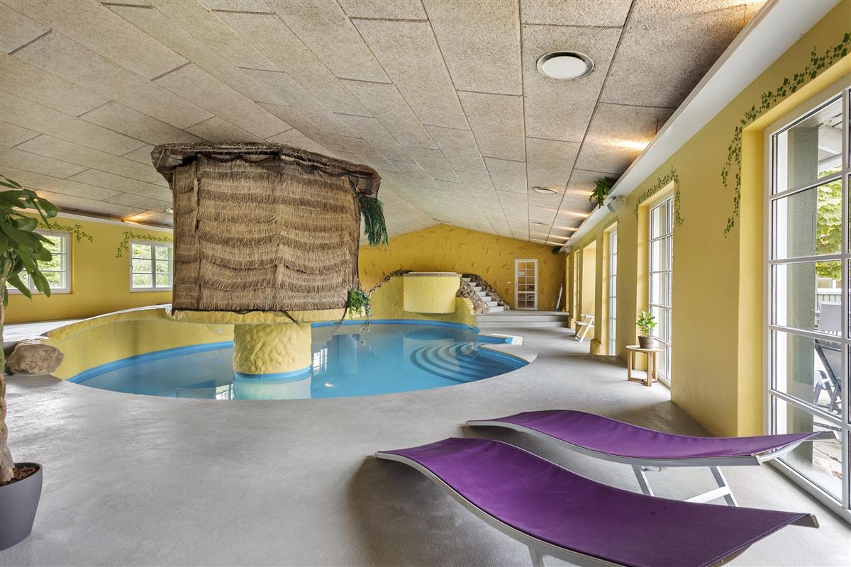 Large holiday home with swimming-pool located in the popular holiday home area Vejlby Fed close to Middelfart. The holiday home suits 12 persons and was renovated in 2013. It includes a large and nice swimming-pool room which invites to relaxation and care for body and soul. The room contains a large swimming-pool (50 m2), jacuzzi and sauna. The living room includes a sofa and a dining table, so that you can enjoy dinner together. Furthermore, there are an open-plan kitchen and 6 bedrooms, all of which have double beds and access to own bathrooms. Outside the house there is a terrace with garden furniture and grill.