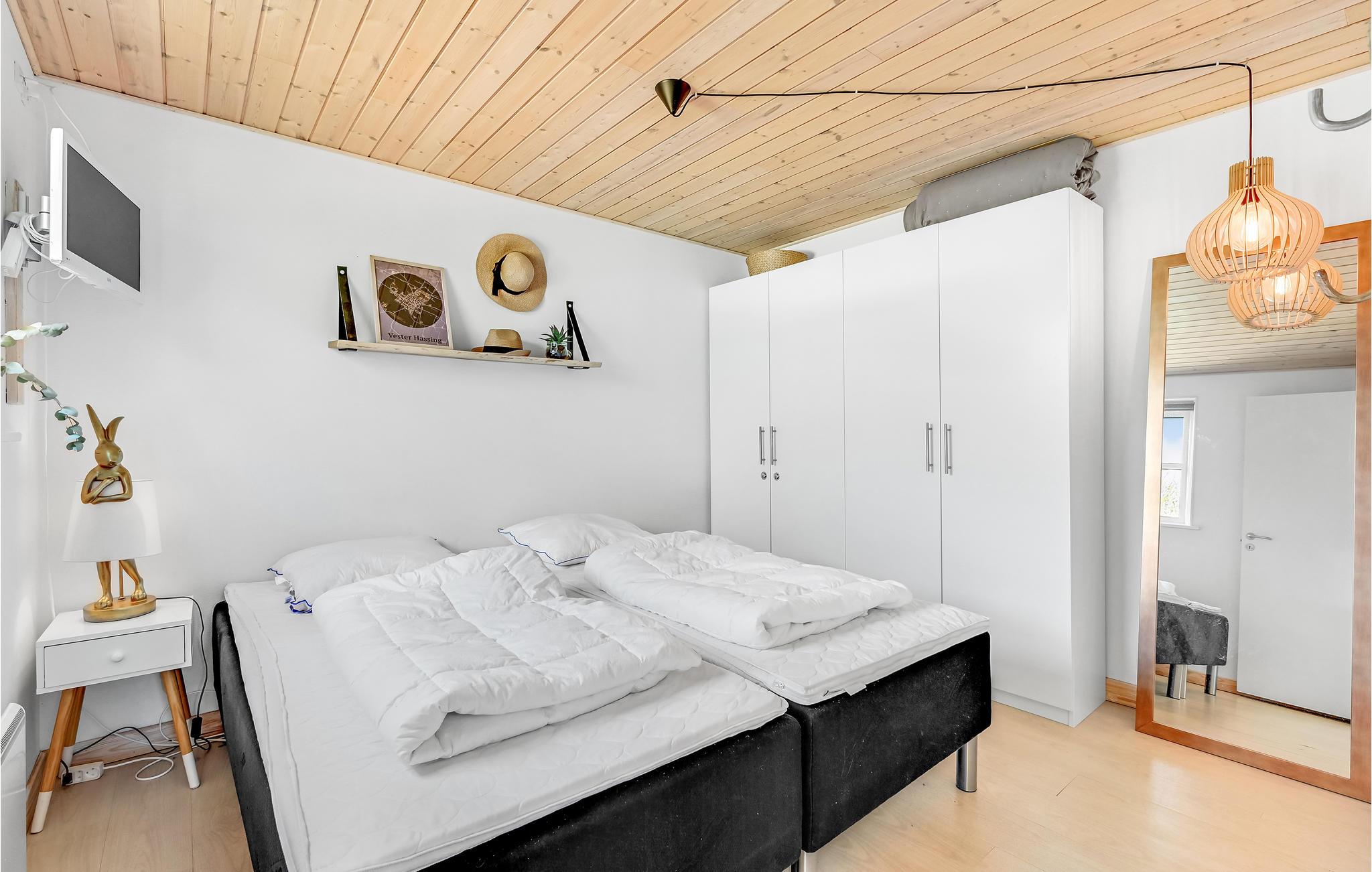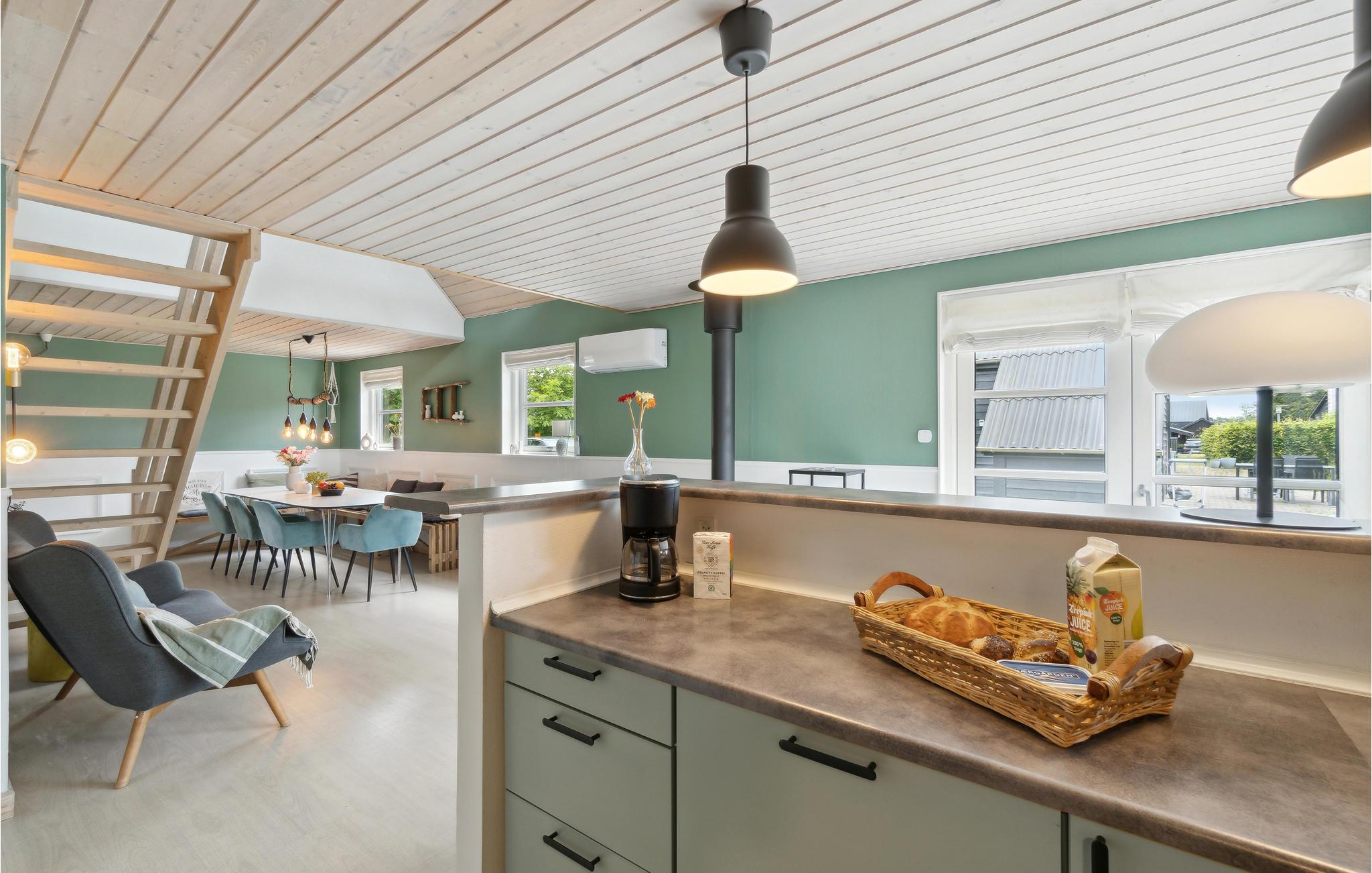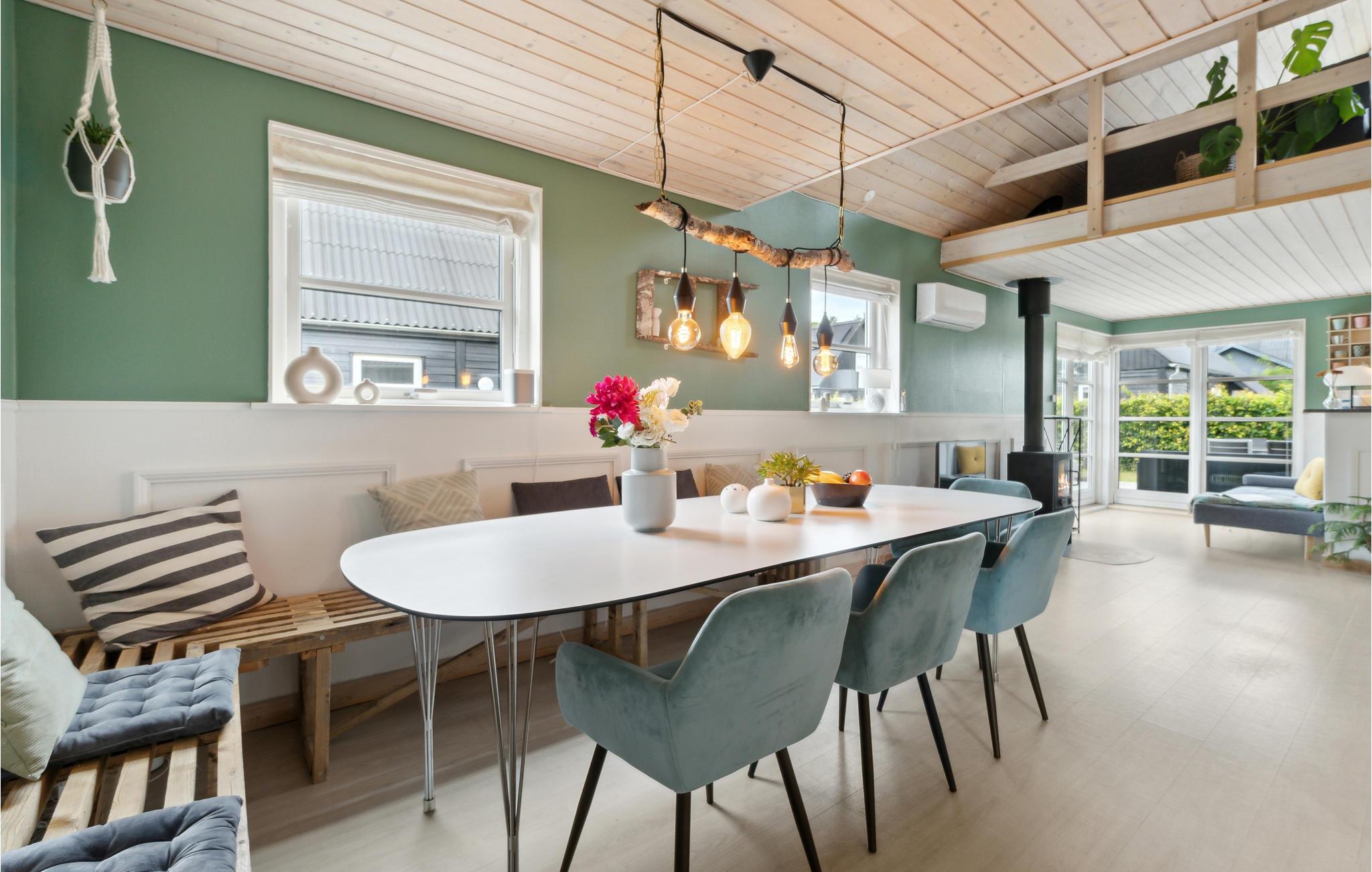 Het huis wacht op zijn gasten in Vesthimmerland. Met 3 slaapkamers biedt het ruimte voor 6 personen, die op elk moment van het jaar kunnen genieten van een ontspannen vakantie samen. Na een lange dag vol activiteiten kunt u gezellig samenzijn op de grote bank en luisteren naar het knisperen van de vlammen in de houtkachel.