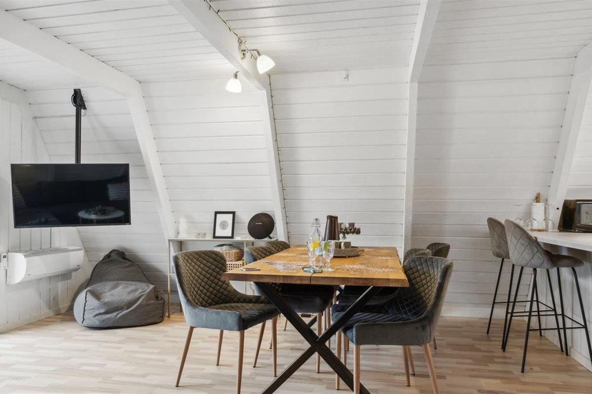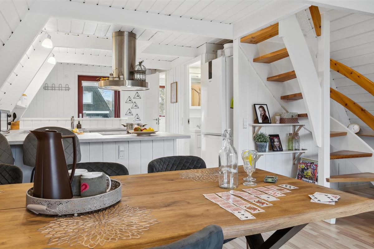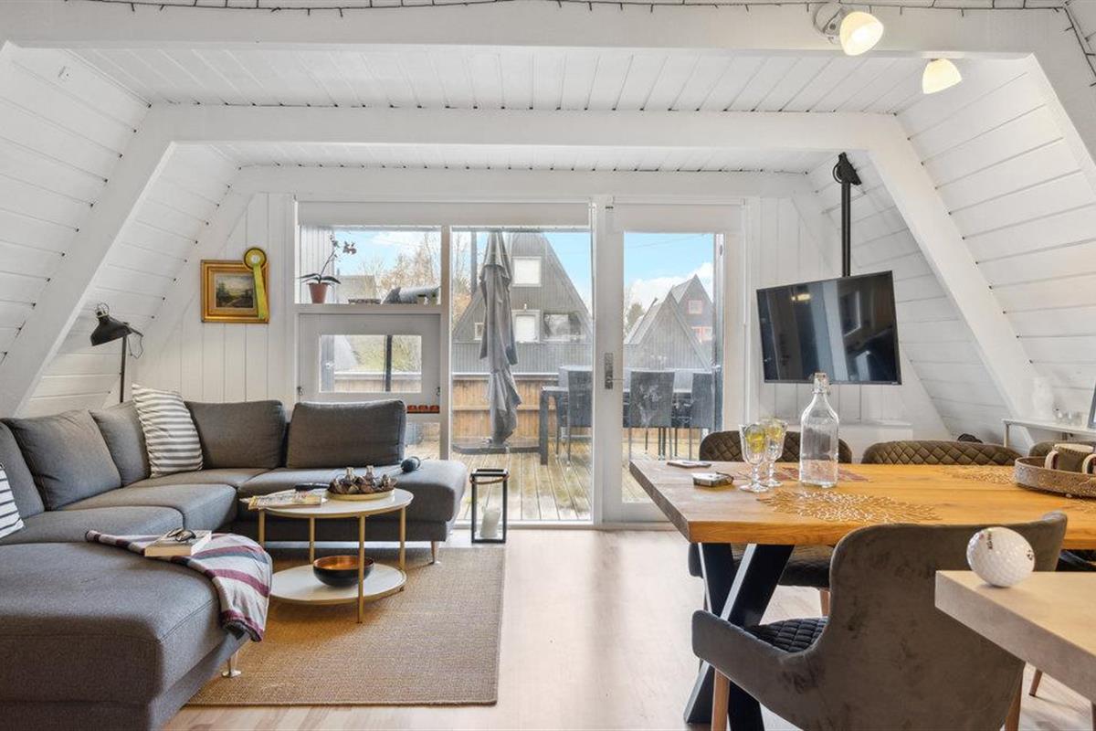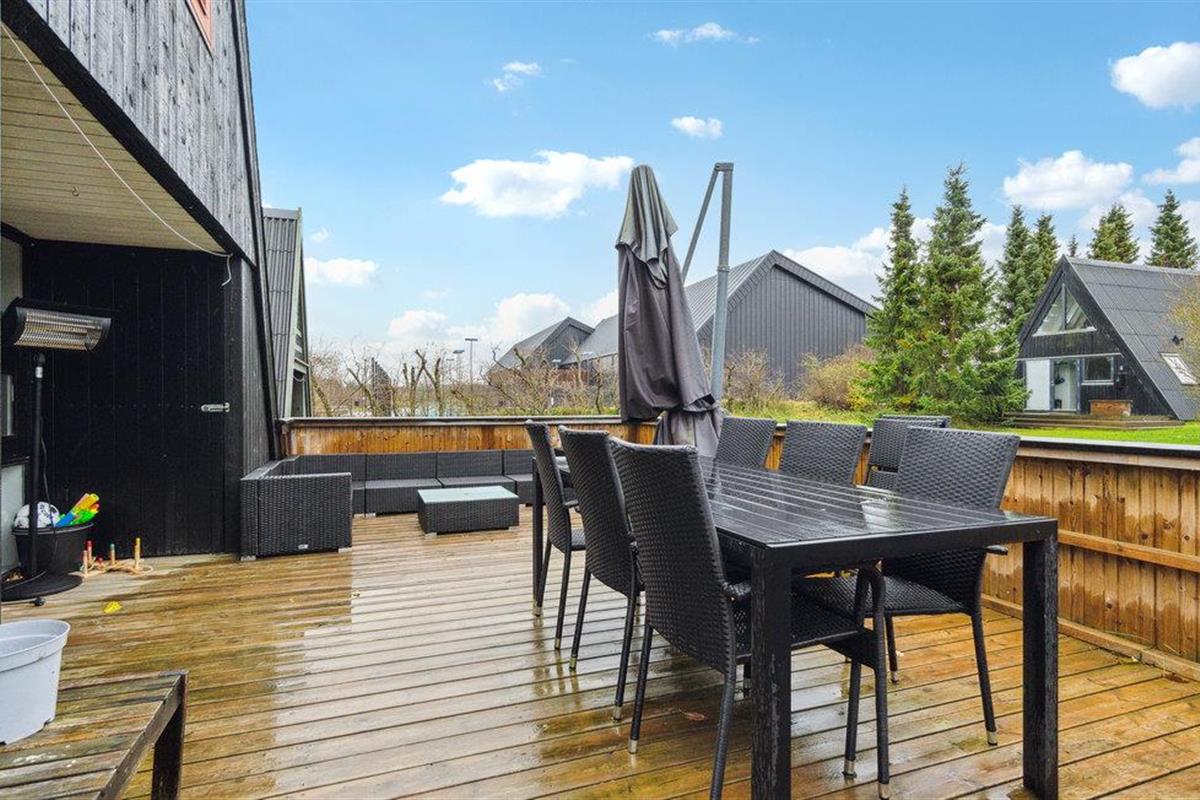 Vanuit de woonkamer heeft u toegang tot het houten terras met tuinmeubilair, waar het heerlijk toeven is in de buitenlucht.