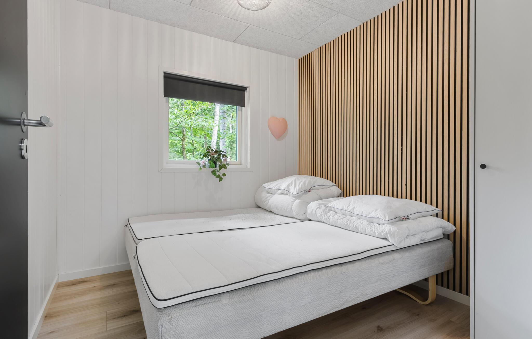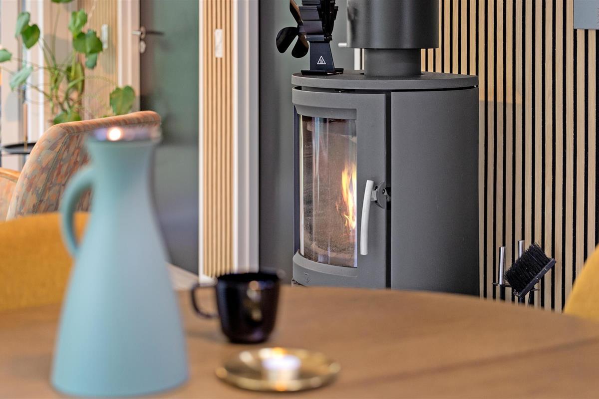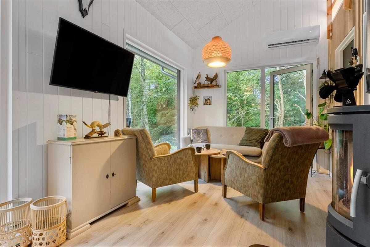 Stap binnen en laat je verrassen door het moderne en stijlvolle interieur van dit charmante vakantiehuis. Grote schuifdeuren en brede vensterpuien bieden een prachtig uitzicht op het groen en laten desgewenst de aangename boslucht binnen in de smaakvol ingerichte kamers. Verheug je op gezellige kookavonden en harmonieuze maaltijden aan de comfortabel verlichte eettafel terwijl de houtkachel zachtjes knettert. Sluit een lange dag in de vrije natuur af met een bordspel of stream een spannende film in de uitnodigende woonkamer.
