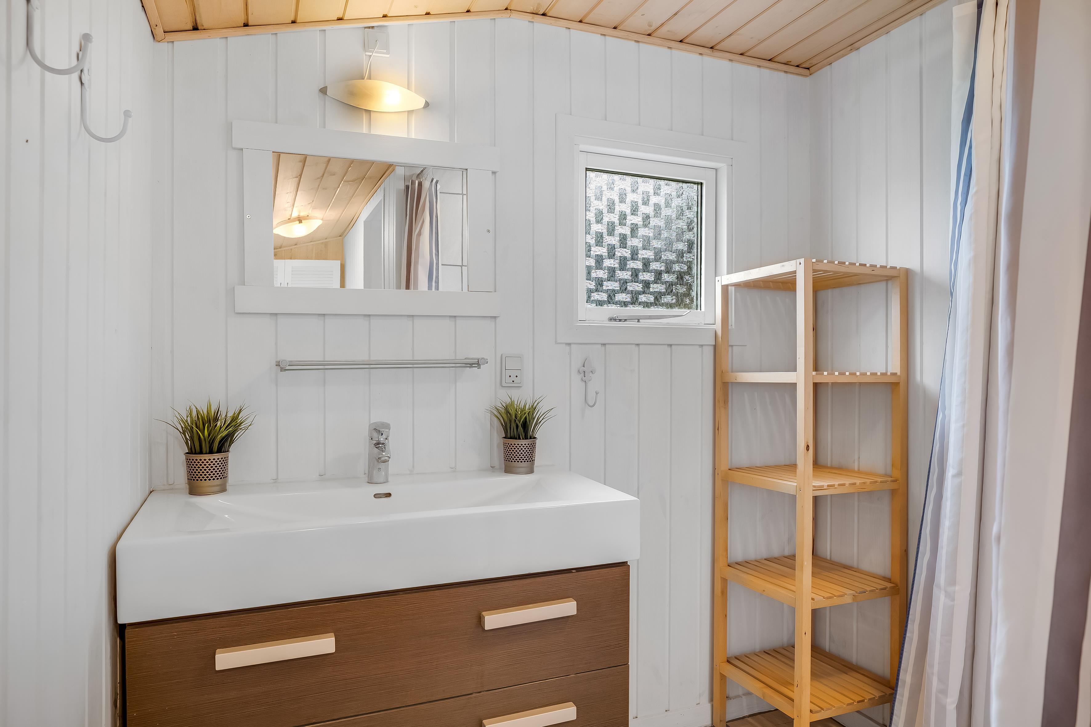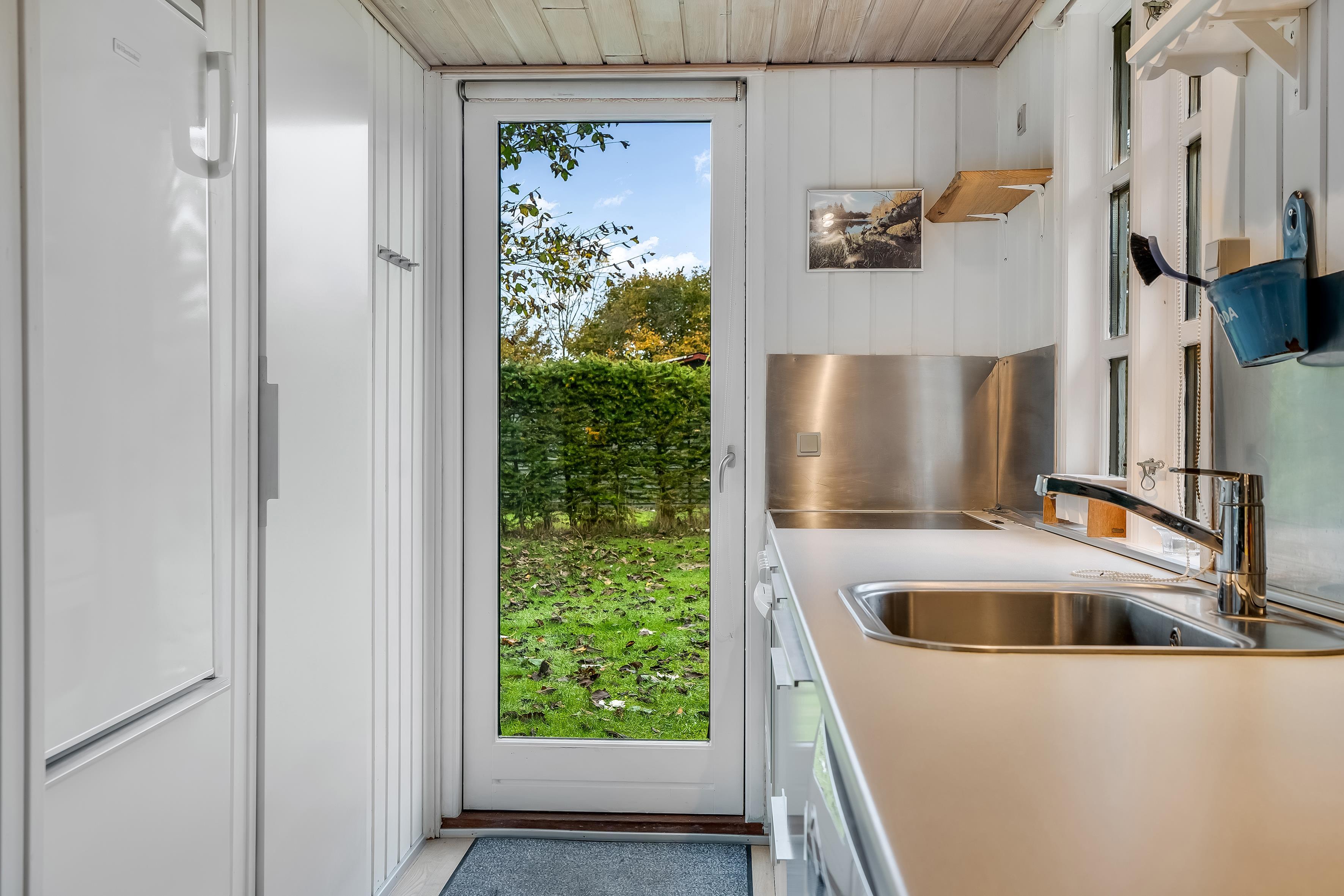 The bathroom is equipped with modern facilities, including a shower, a toilet and underfloor heating, ensuring a pleasant experience all around. The house also has a practical dishwasher, which makes cleaning up after meals a breeze. The kitchen is well-equipped with a ceramic hob, oven, fridge, freezer (15 litres), microwave and a coffee machine, so you can prepare delicious meals and enjoy your morning coffee in peace and quiet.