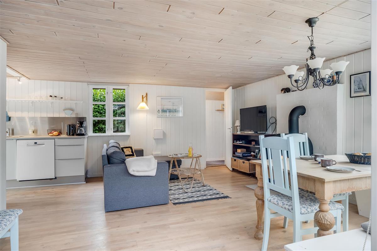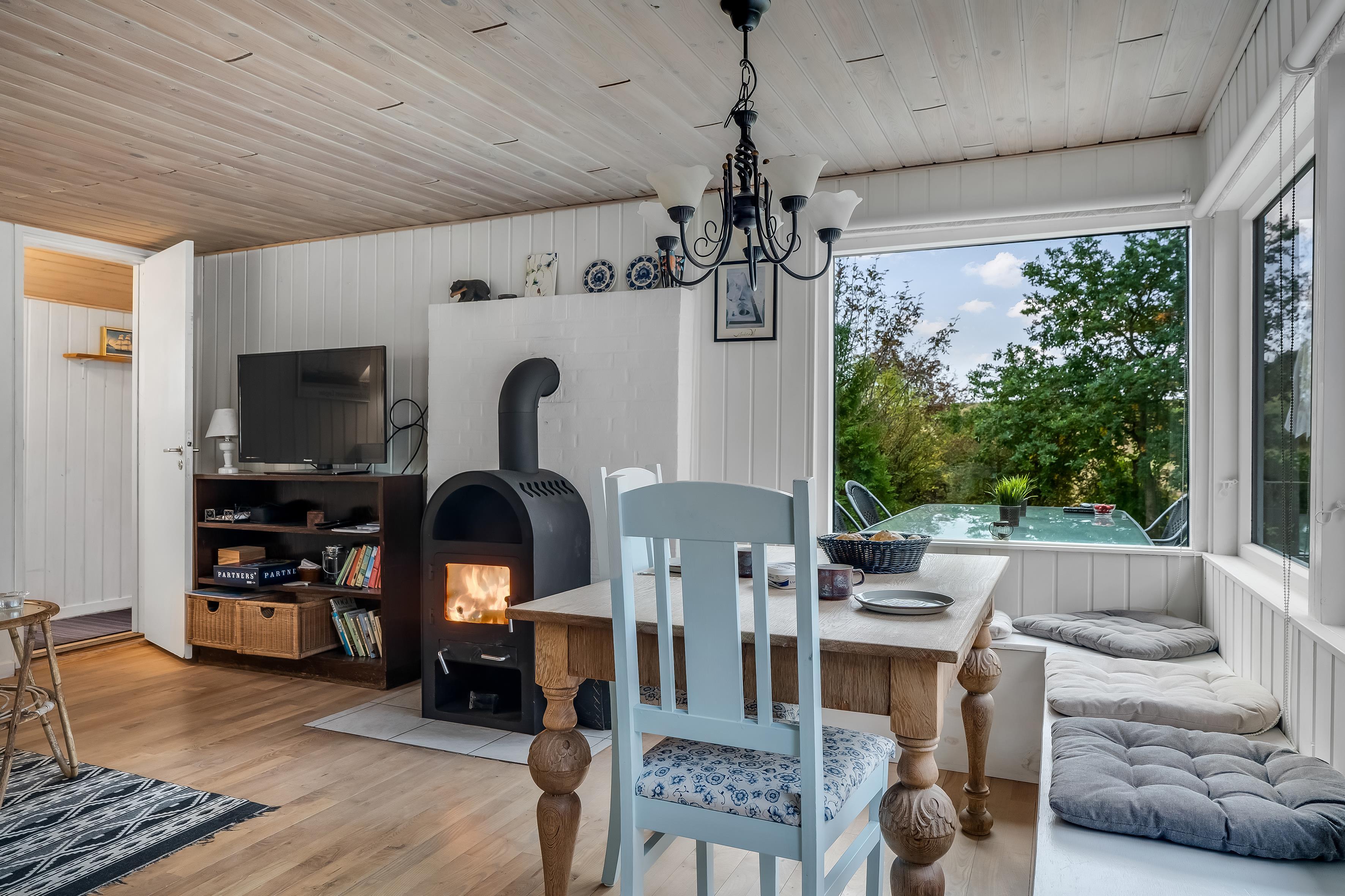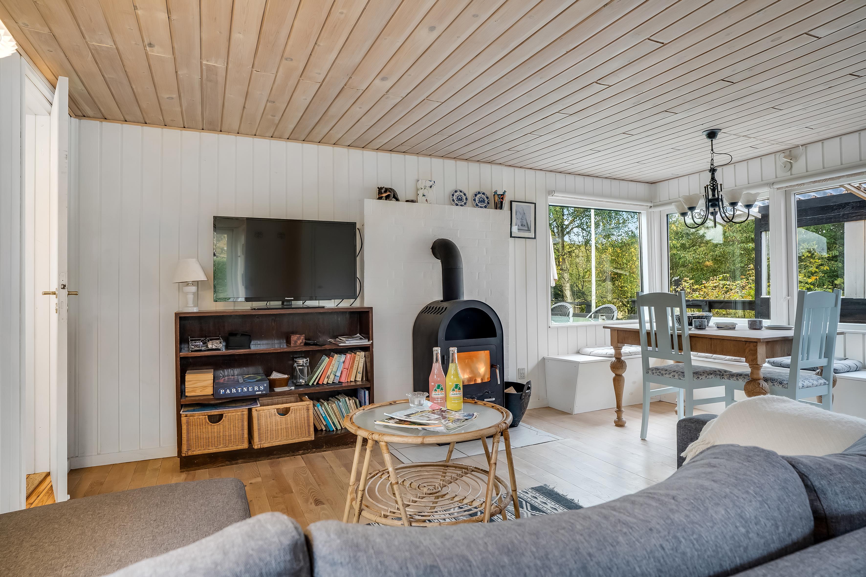 The house is also equipped with a wood-burning stove, which creates a warm and cozy atmosphere on cooler evenings. There is a television with Danish TV channels for entertainment, as well as wireless internet, so you can stay connected to the outside world if you wish.