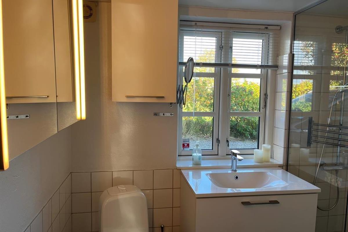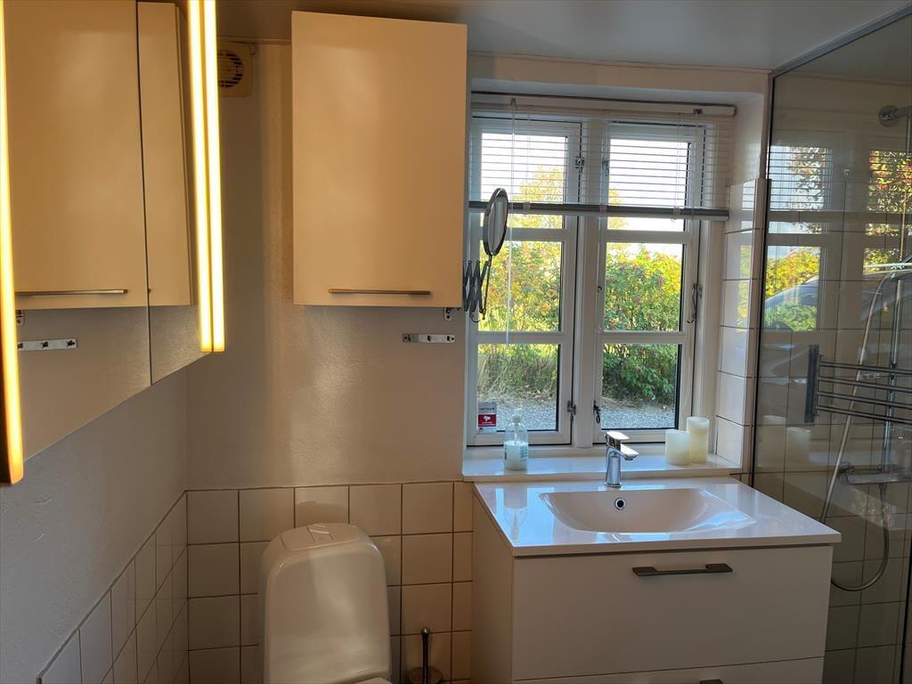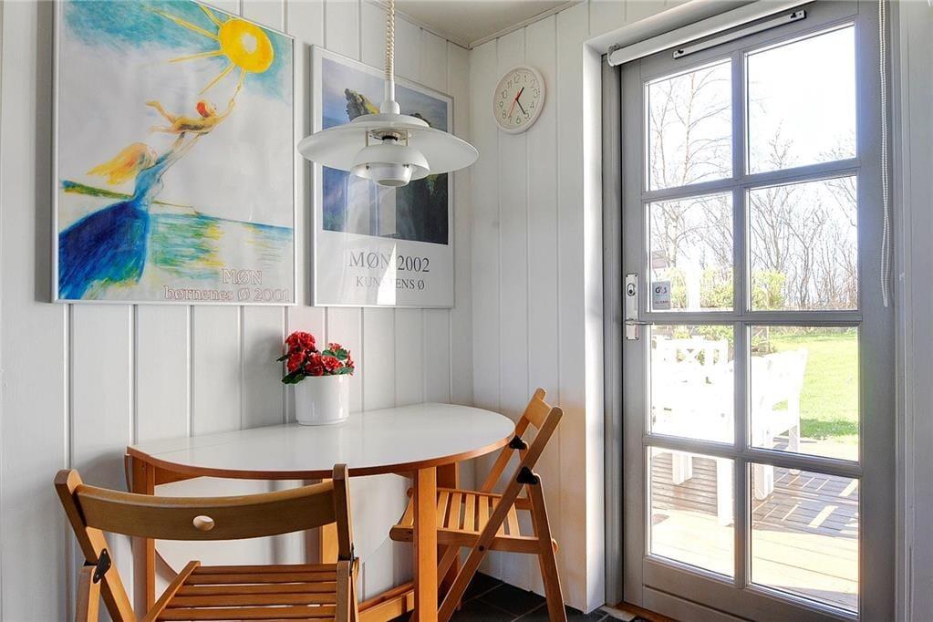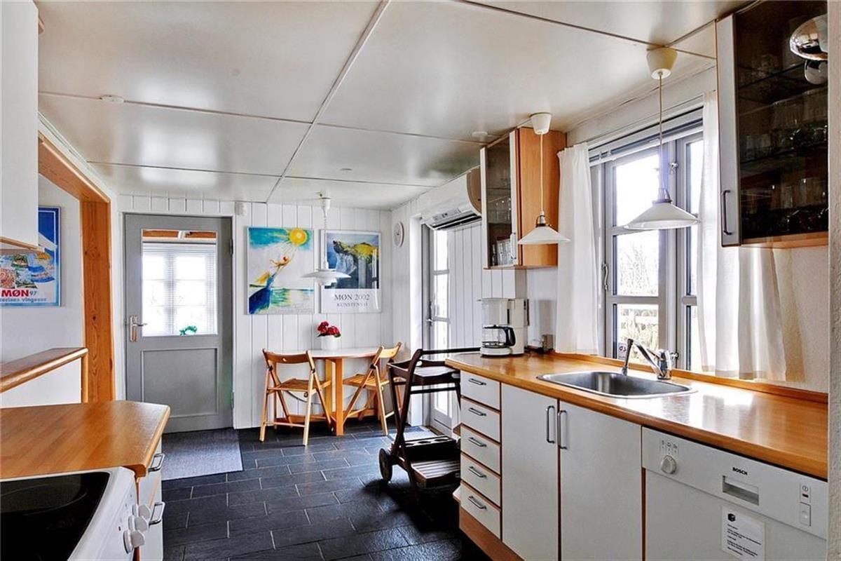 Das Haus liegt in natürlicher Umgebung auf Westmøn mit Aussicht über das Wasser zum östlichen Teil von Møn. Nächste Einkaufsmöglichkeit ist in Stege.