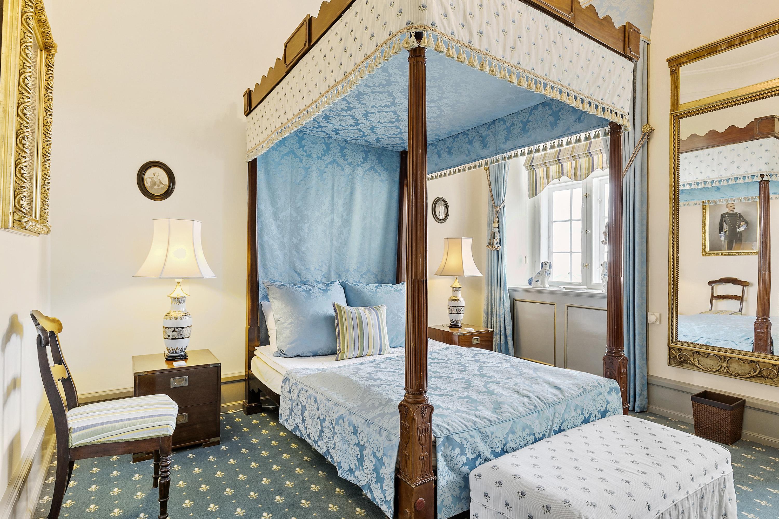 As a guest in Lerchenborg you will be living in the castle's south wing, which is exclusively decorated and contains in the ground floor 4 bedrooms. On the 1st floor there are 4 further bedrooms, each with private bathroom, flat-screen TV and mini fridge. From the bedroom section in the south wing you have to cross the hall with portraits to get into the living room with sofas, fireplace and table arrangement. If you walk a few steps down, you get into the castle café with seating for maximum 50 persons. In the castle café there is a large functional kitchen with a large gas stove. The castle café is available for use during your stay.