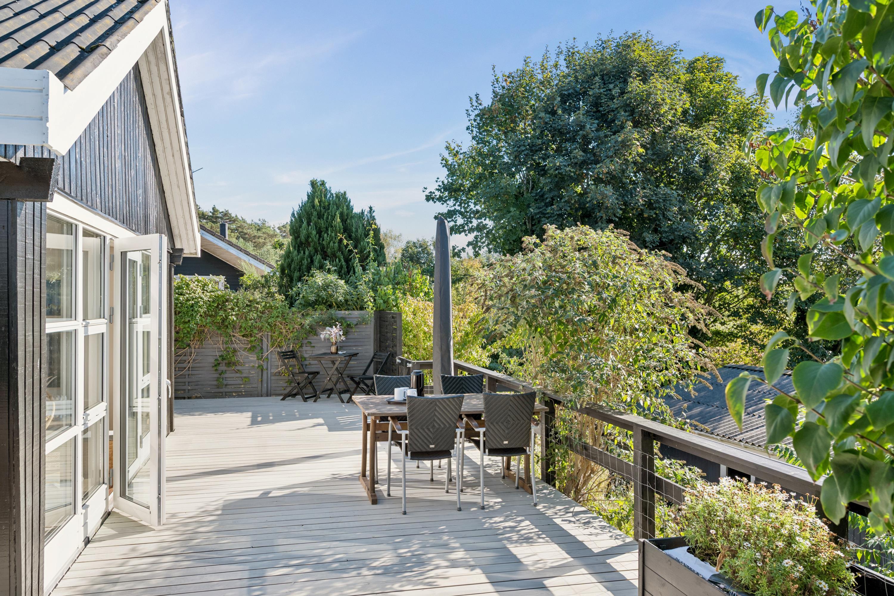 Not far from Ebeltoft you will find this very cosy holiday home. The house has a lovely bright living room, furnished with good furniture and equipped with, among other things, a heat pump and a wood-burning stove. From here there is access to several wonderful terraces with garden furniture.