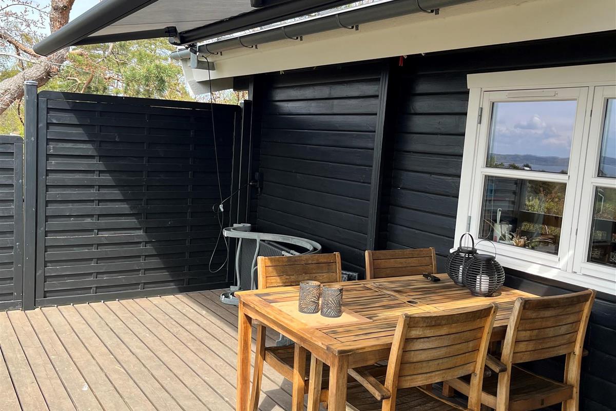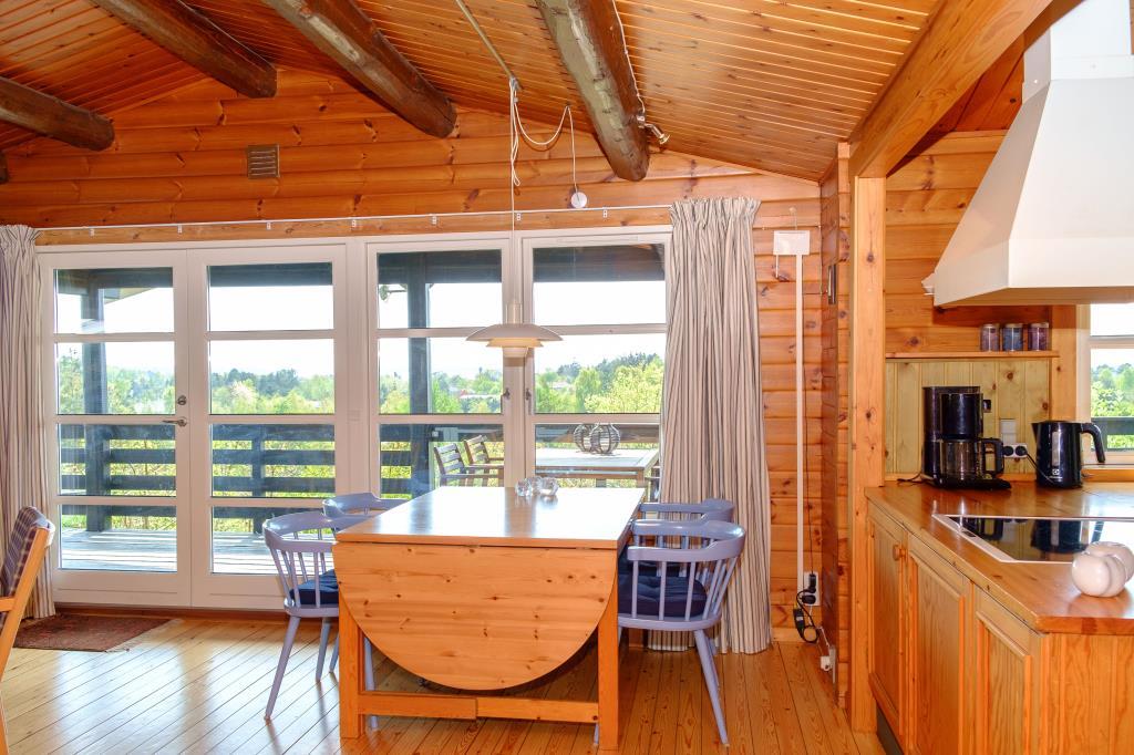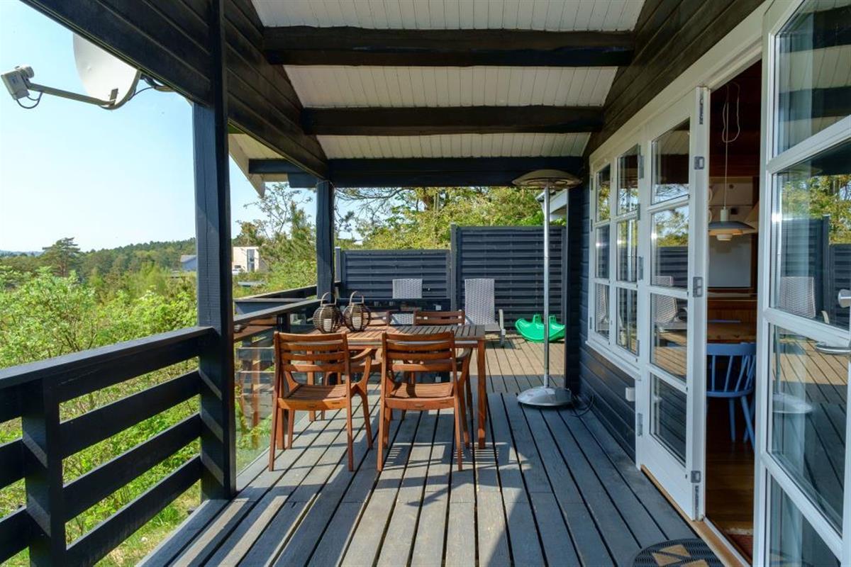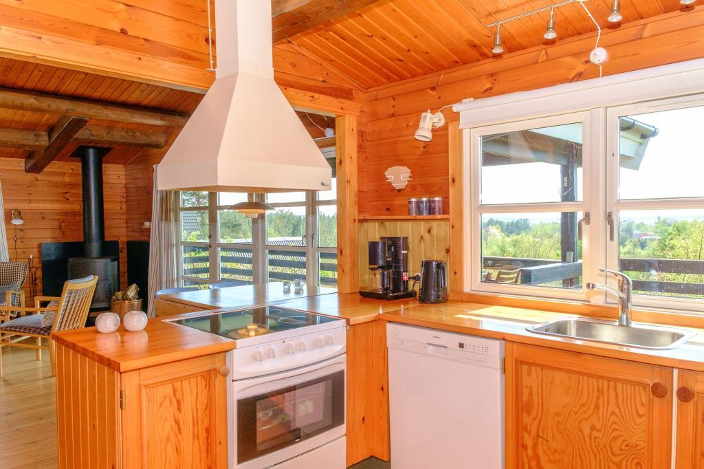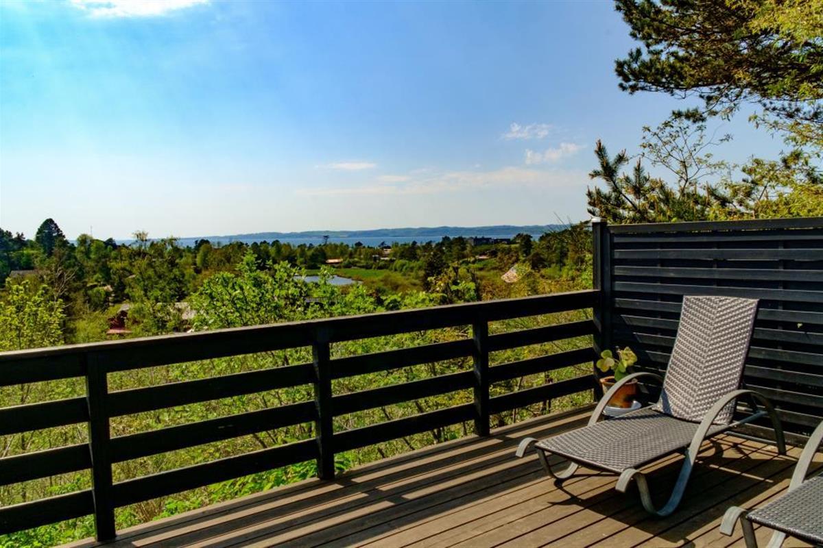 Lovely, newly renovated, and well-equipped summer house, situated high on a dead-end road on a natural plot with a beautiful south/west-facing panoramic view over Ebeltoft Vig and Mols Bjerge, which can be enjoyed from both the terrace and the living room and kitchen. Beautiful, large, and secluded terrace with garden furniture and grill, divided into an open terrace with continuous sun and a covered terrace where you can enjoy evening drinks while the sun sets over Mols Bjerge. Cozy and personally decorated living room with attention to detail, featuring a wood-burning stove, satellite TV, stereo system with CD and DVD. Good and well-equipped kitchen with ceramic hob, refrigerator with separate freezer, microwave, and dishwasher. Beautiful, newer bathroom with shower, underfloor heating, and washing machine. The sleeping accommodations in the house are distributed among 3 bedrooms: 1 with a double bed, 1 with 2 single beds, and 1 with bunk beds. All with good and comfortable box mattresses. For the little holiday guests, the house offers a crib and a high baby chair, baby bathtub, as well as toys, games, children's books, and videos for both boys and girls. The house is very well-planned and is therefore suitable for two couples or a family. Good location and suitable for hiking in Mols Bjerge. Additionally, the house is within walking distance to the beach, the forest, the shops, and the restaurants in Ebeltoft town.