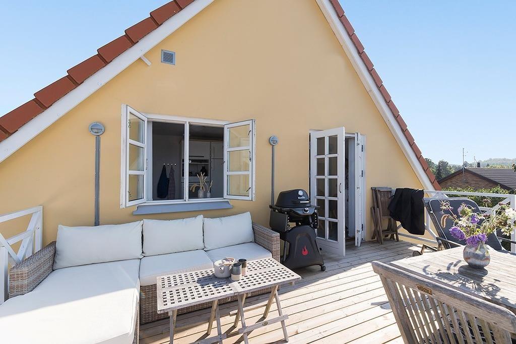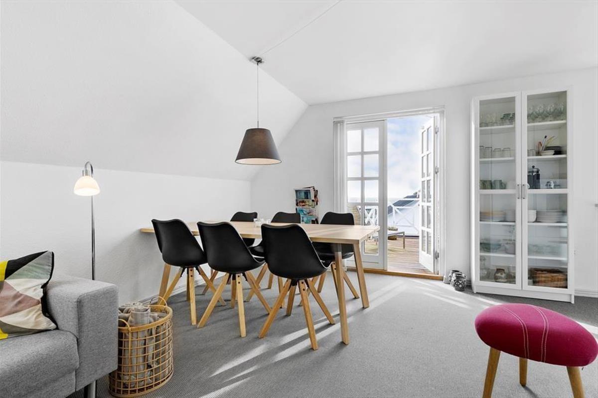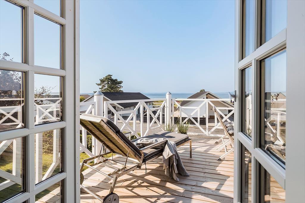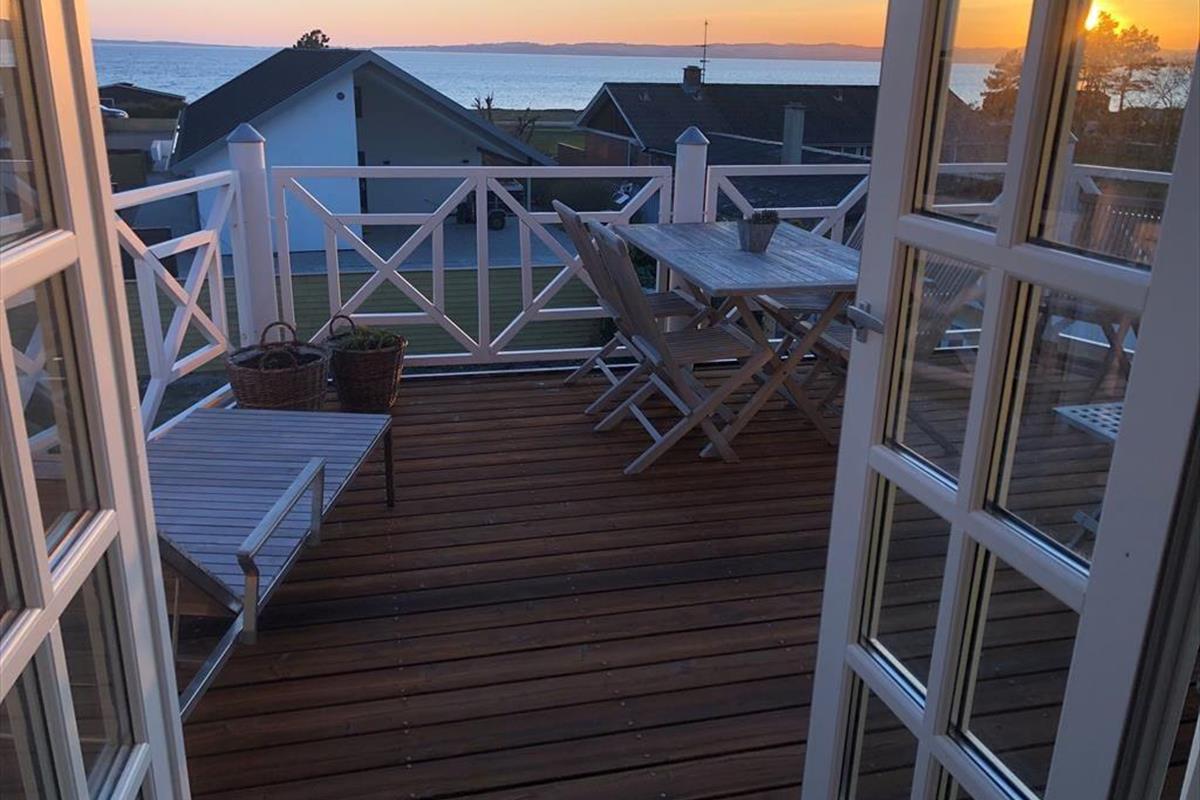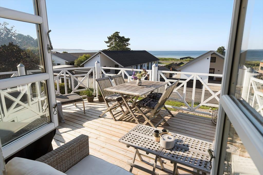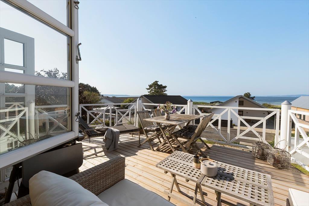Deine einladende, reizende Ferienwohnung im ersten Stock einer hübschen Patrizier-Villa vereint modernen Komfort mit viel Gemütlichkeit. Stilvolle Möbelstücke und Dachschrägen mit Dachflächenfenstern sorgen für ein stimmungsvolles Ambiente, das zum Entspannen einlädt. In der offenen Küche genießt du nicht nur die Nähe und Gesellschaft deiner Lieben, die sich im angrenzenden Wohn- und Essbereich tummeln, sondern auch einen schönen Ausblick über die Ebeltoft Vig. Vom Wohnraum gelangst du hinaus auf eine fantastische Terrasse, auf der Loungemöbel, ein Grill und ein Essplatz zu herrlichen Stunden an der frischen Seeluft einladen. Im Wohnraum stehen ein Essplatz und eine gemütliche Polstersitzecke zur Verfügung. Hier kannst du dich in aller Ruhe niederlassen, Bücher lesen, mit deinen Mitreisenden Karten spielen und den Abend mit einem schönen Film ausklingen lassen. Der Eingangsbereich deiner Ferienwohnung verfügt über Stauraum. Der Rest der Wohnfläche ist einem ansprechenden Badezimmer mit Dusche und zwei schönen Schlafräumen überlassen. Einer der Schlafräume begrüßt dich mit einem Doppelbett. Im zweiten Raum stehen ein Doppelbett und ein Etagenbett bereit. Falls du mit deiner gesamten Familie oder deinem gesamten Freundeskreis anreisen möchtest, kannst du zusätzlich die tolle Erdgeschosswohnung (Nr. 8408) buchen.