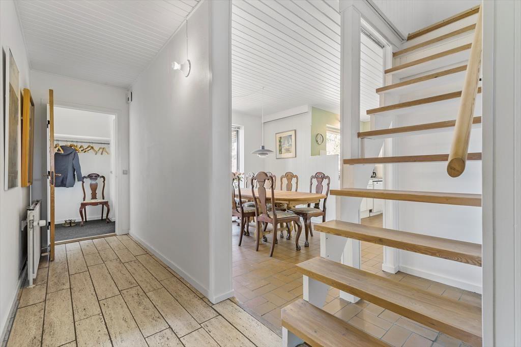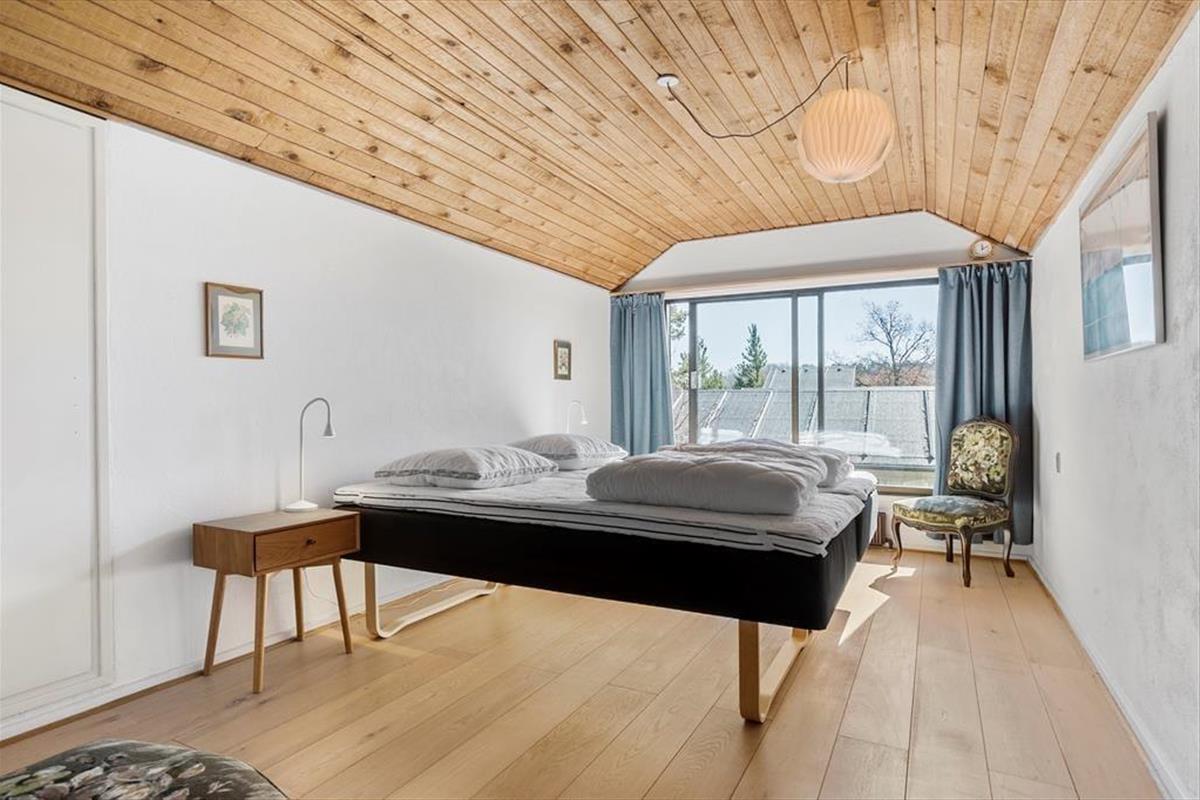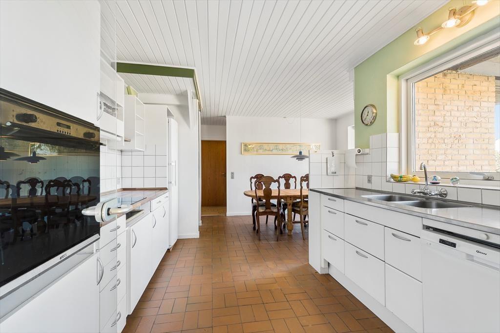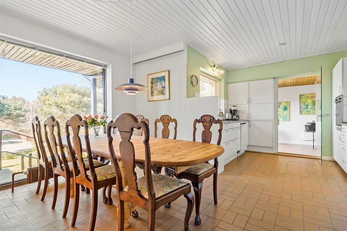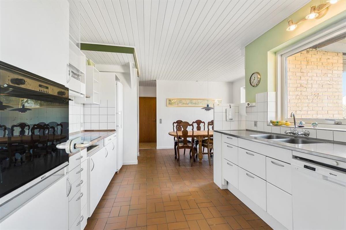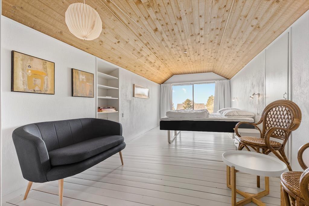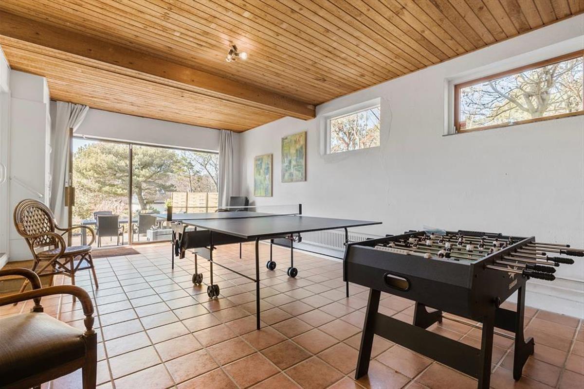 Einrichtung; Das große Aktivitätshaus mit einer Wohnfläche von 235 m² beherbergt bis zu 10 Personen. Lediglich 200 Meter trennen das Haus vom Badestrand an der Ebeltoft Vig, über dem die sogenannte Blaue Flagge weht. Die fünf großen Schlafzimmer beinhalten jeweils ein gutes Doppelbett. In einigen Zimmern können die Doppelbetten auseinandergeschoben werden. Eines der Zimmer begeistert mit seiner außergewöhnlich schönen Größe und einem Zugang zu einem Balkon mit Aussicht auf das Wasser. Ein anderes Schlafzimmer ist durch einen Vorhang vom Wohnraum getrennt. Der schöne Wohnraum verwöhnt mit einem Kaminofen, einem großen Fernseher und einem Zugang zur Terrasse. Auf jeder Etage befindet sich ein ansprechendes Badezimmer. Beide Bäder verfügen über eine Duschnische und eine Fußbodenheizung. Die helle und freundliche Küche umfasst einen Essplatz. Sie ist durch eine Glastür vom Aktivitätsraum getrennt. In diesem sorgen eine Tischtennisplatte und ein Tischkicker für Spaß und Abwechslung. Im Hauswirtschaftsraum stehen eine Waschmaschine, ein Wäschetrockner und eine Lademöglichkeit für E-Autos bereit. Zusätzlich zu den Betten und Einrichtungen im Aktivitätsraum ist das Haus mit hochwertigen Gebrauchtmöbeln ausgestattet. Falls Sie einen Urlaub mit mehr als 10 Personen planen, schauen Sie sich Haus Nr. 8408 und Haus Nr. 8409 an.