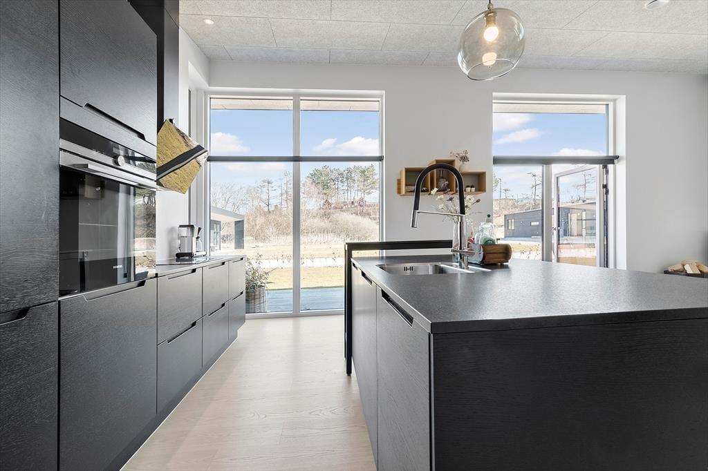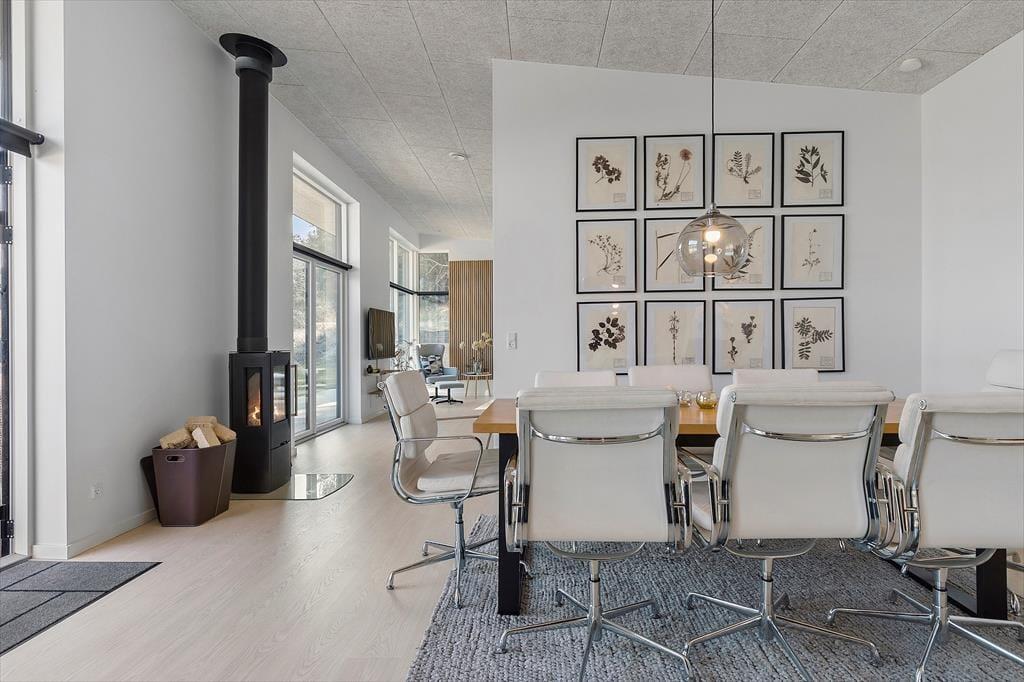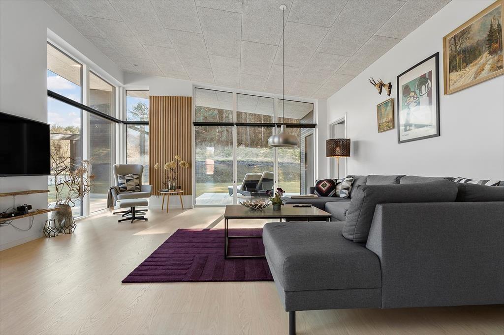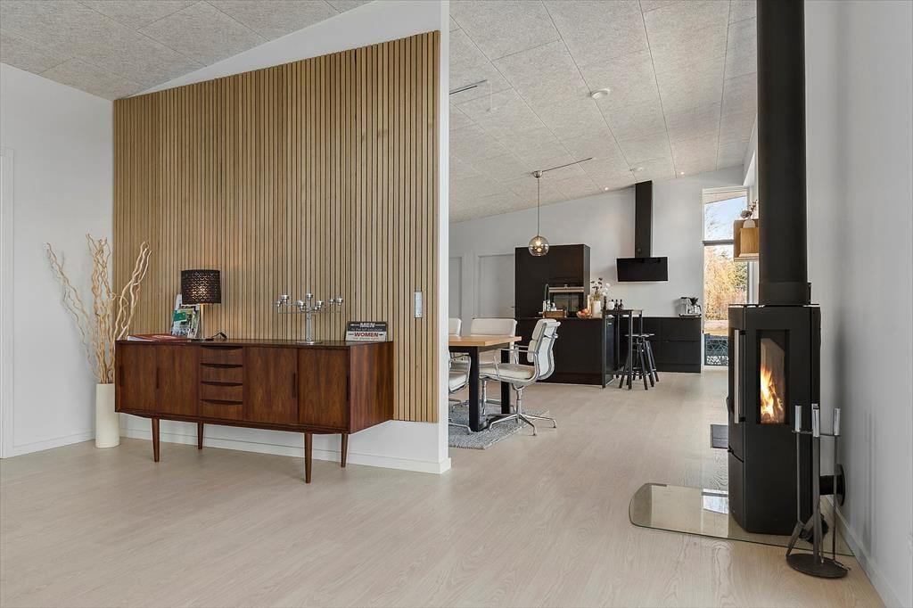 Willkommen im Bækholmen 5 C – einem hellen, neu erbauten Ferienhaus mit Platz für acht Personen und euren vierbeinigen Freund. Das Haus bietet ein lichtdurchflutetes und einladendes Wohnzimmer mit bequemen Möbeln und einem Kaminofen, wo ihr gemeinsam plaudern, Spiele spielen oder einen gemütlichen Filmabend genießen könnt. Vom Wohnzimmer aus hast du direkten Zugang zur überdachten Terrasse – perfekt für den Morgenkaffee oder das Abendessen vom Grill. Die Küche ist modern und gut ausgestattet, unter anderem mit eingebautem Ofen, Geschirrspüler und allem, was ihr für gemeinsame, leckere Mahlzeiten benötigt. Die Aufteilung auf vier Schlafzimmer macht es leicht, Raum für Paare, Freunde und Kinder zu schaffen, und mit zwei Badezimmern – von denen eines einen Whirlpool und Sauna bietet – stehen Entspannung und Wohlgefühl im Mittelpunkt. Für die kleinsten Gäste stehen sowohl Hochstuhl als auch Kinderbett bereit.