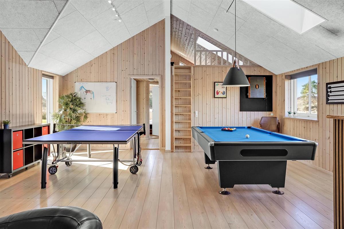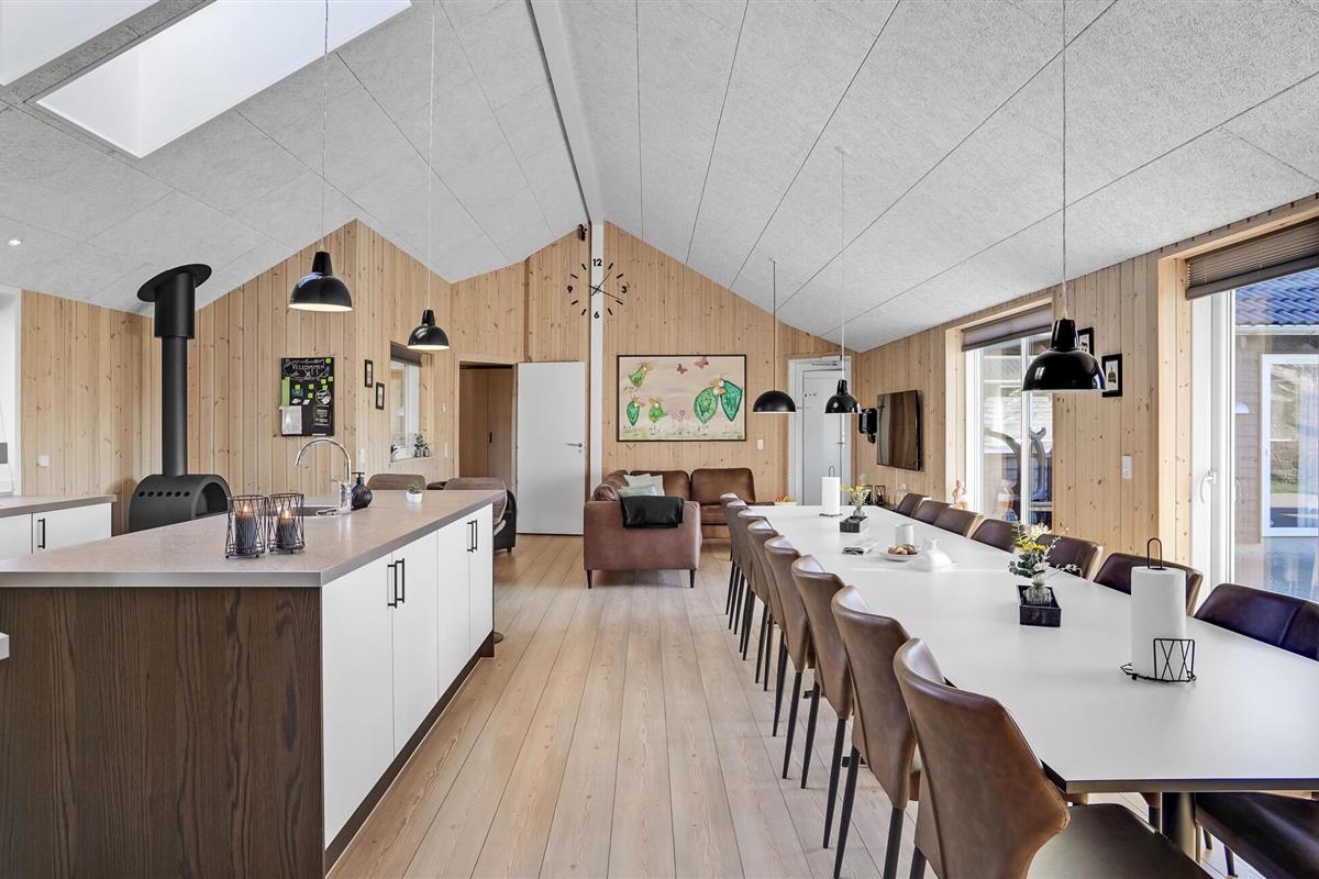 Het vakantiehuis met ruimte voor 22 personen wacht op zijn gasten in Vibæk Strand. Breng hier een heerlijke vakantie door met meerdere gezinnen of een groep vrienden. 8 slaapkamers en 4 badkamers bieden genoeg ruimte. 2 huisdieren zijn ook toegestaan op vakantie. Het zwembad biedt ook een whirlpool voor 6 personen en een sauna.