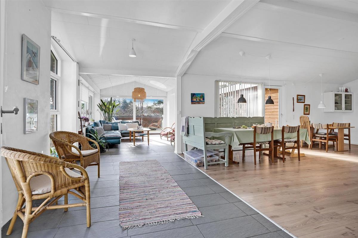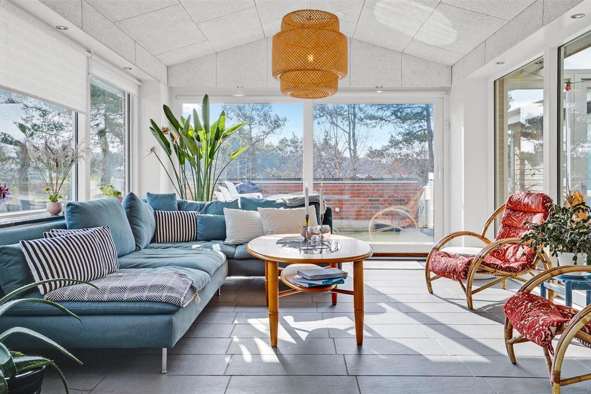 Rustige cottage met grote ramen, gezellige inrichting en dichtbij het zandstrand van Vibæk Strand.