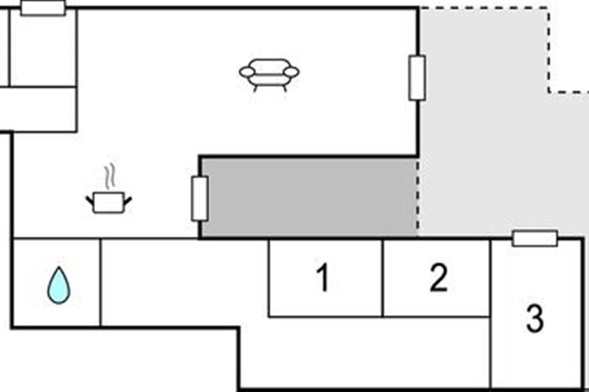Slaapkamer (nr. 1) - 4 Slaapplaatsen. (2-persoonsbed(den)). 1 Slaapplaatsen. (Stapelbed).