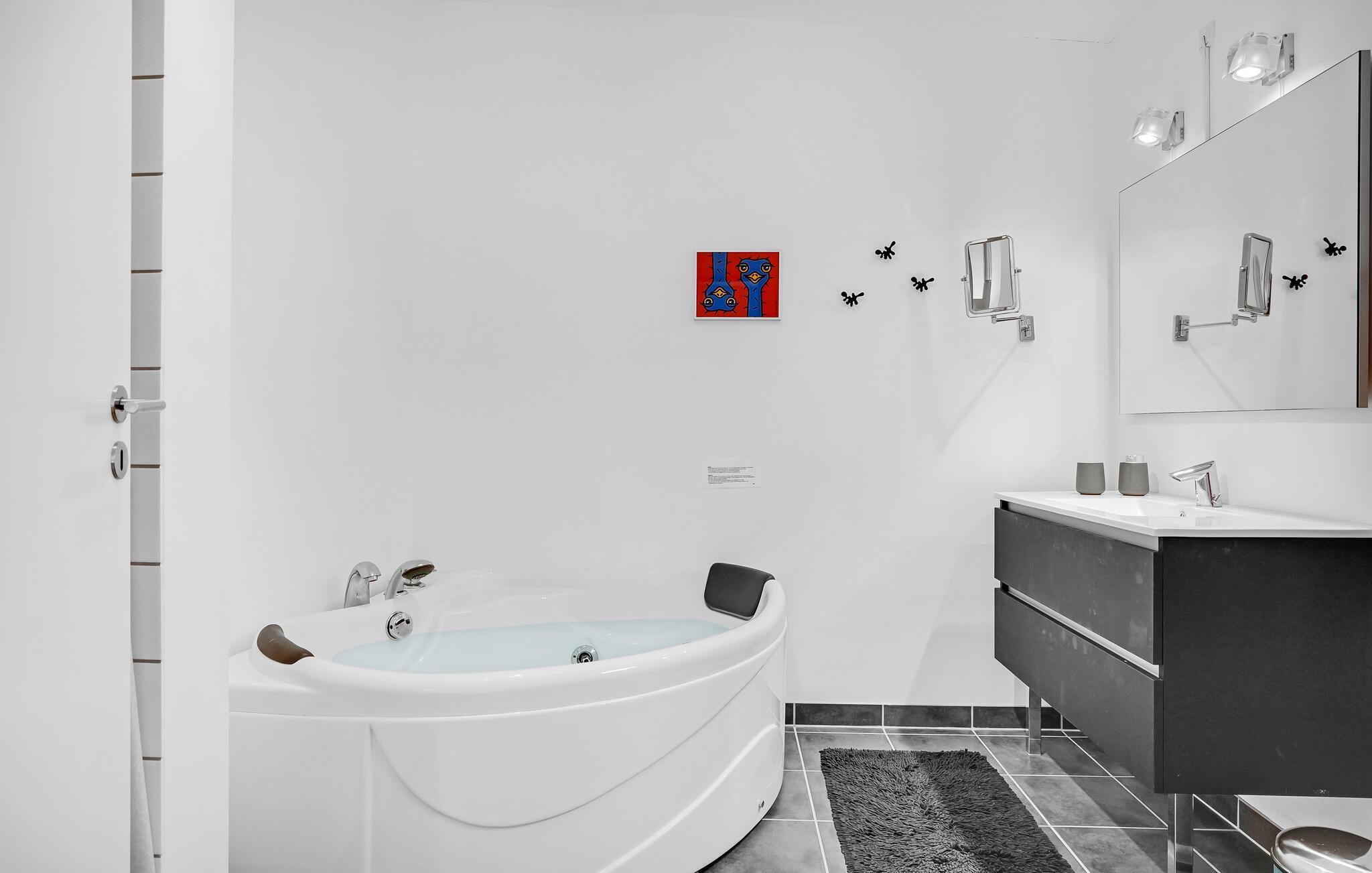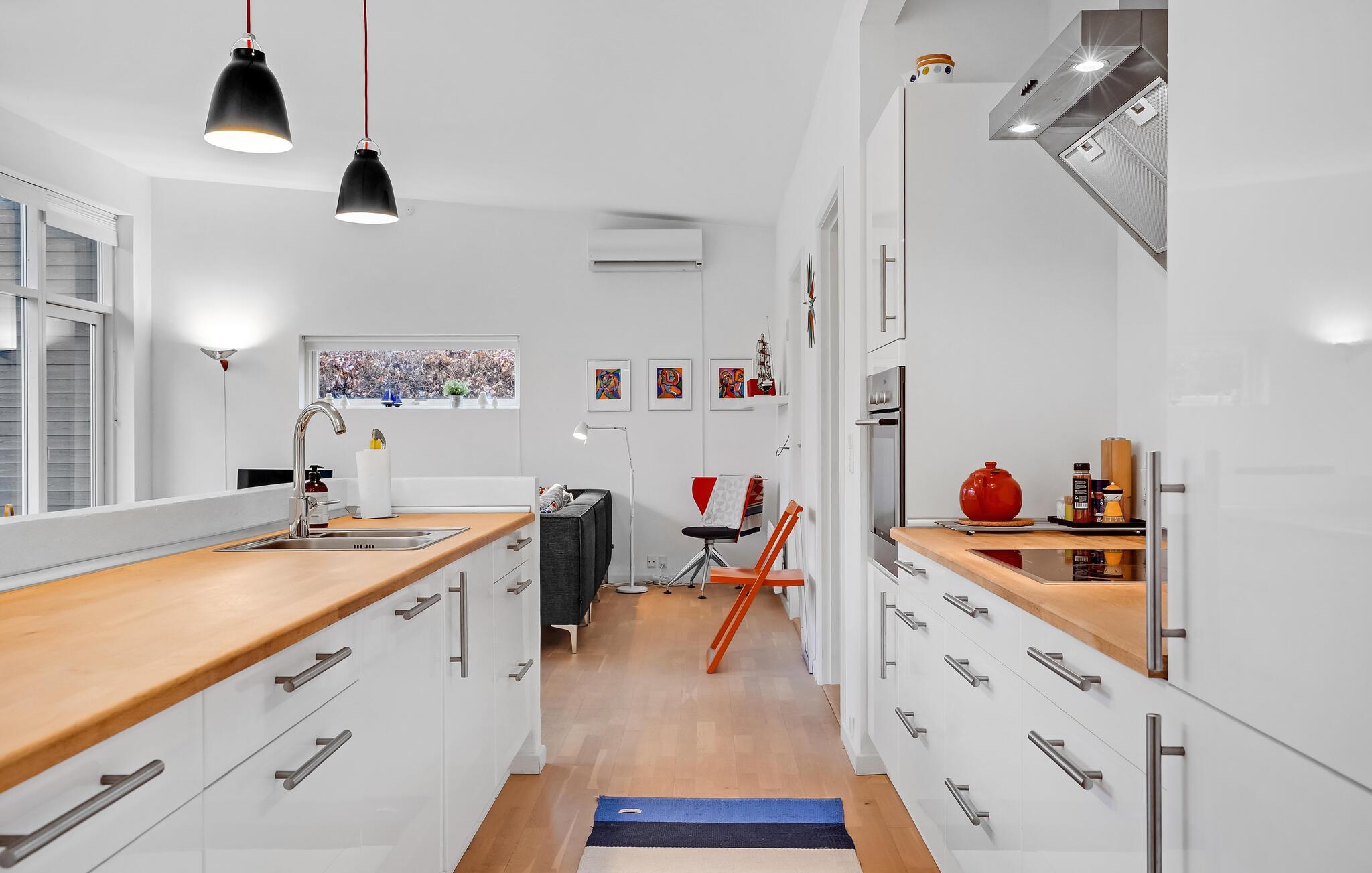 In het dorp Ebeltoft neemt u uw intrek in dit geweldige vakantiehuis, dat bij uitstek geschikt is voor een klein gezin. U komt samen in de centrale open keuken/woonkamer met open haard om samen te eten, bordspellen te spelen of te ontspannen met boeken of tijdschriften. Vanuit het raam kijkt u uit over een prachtige, groene tuin.