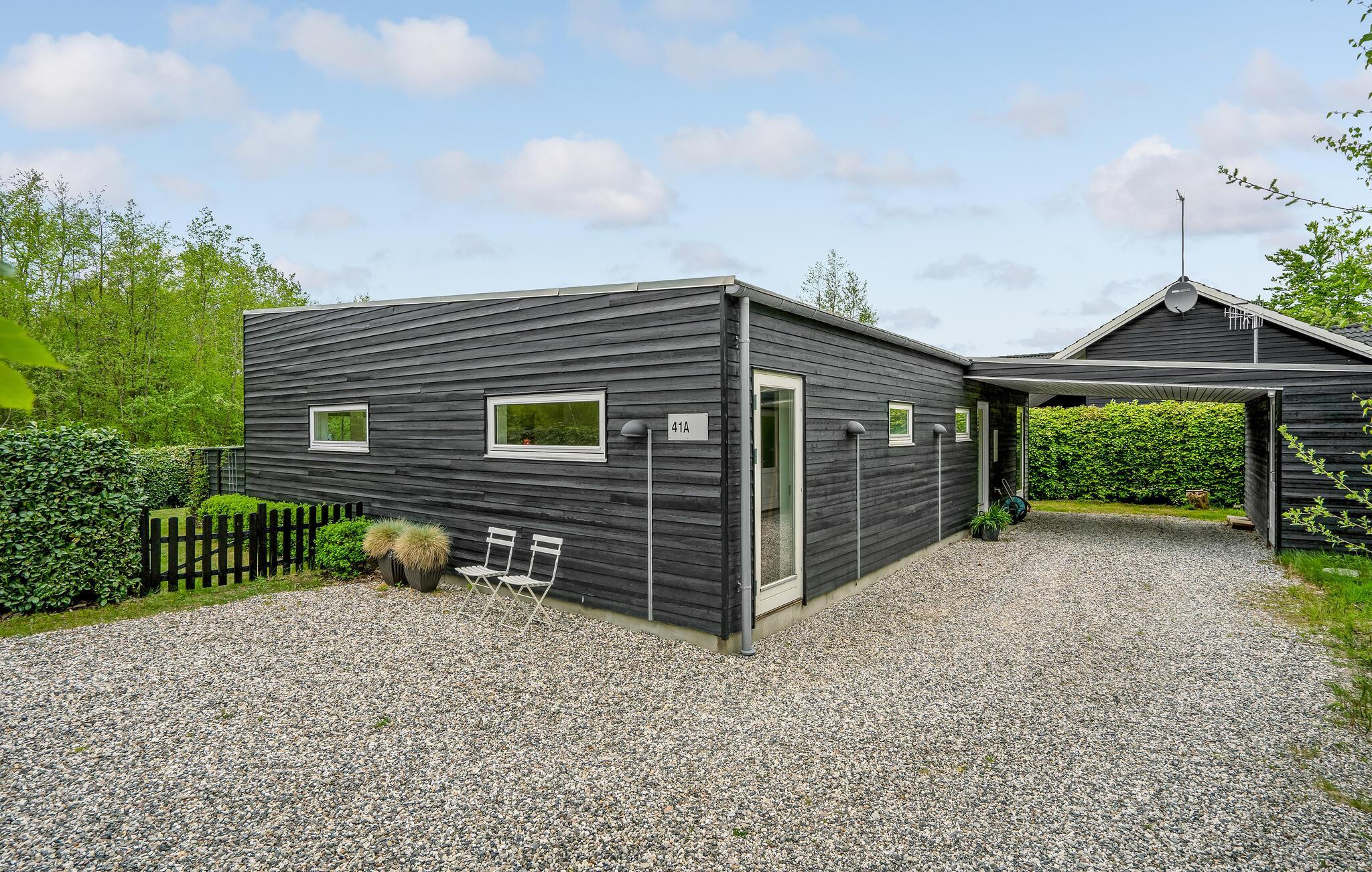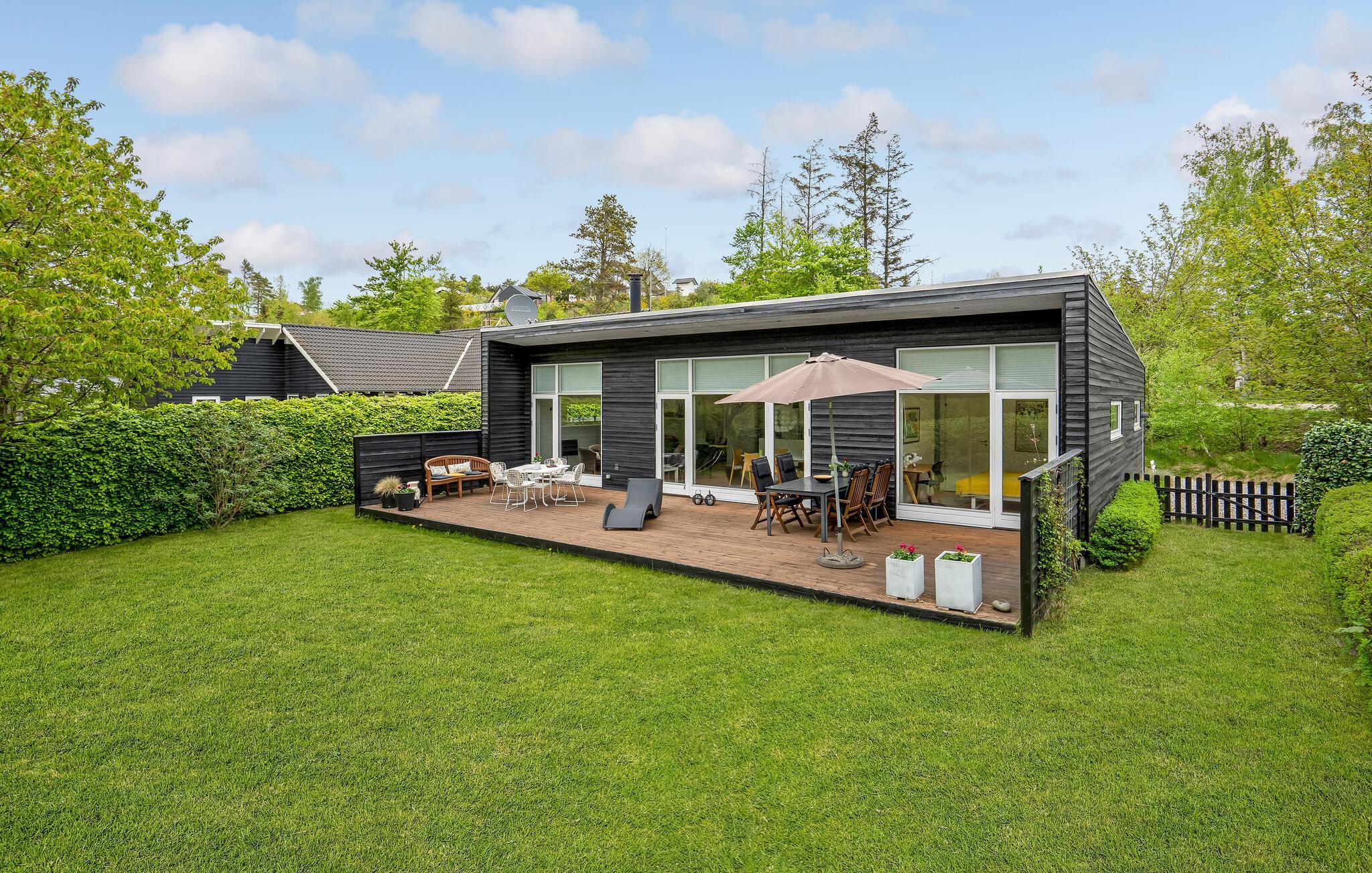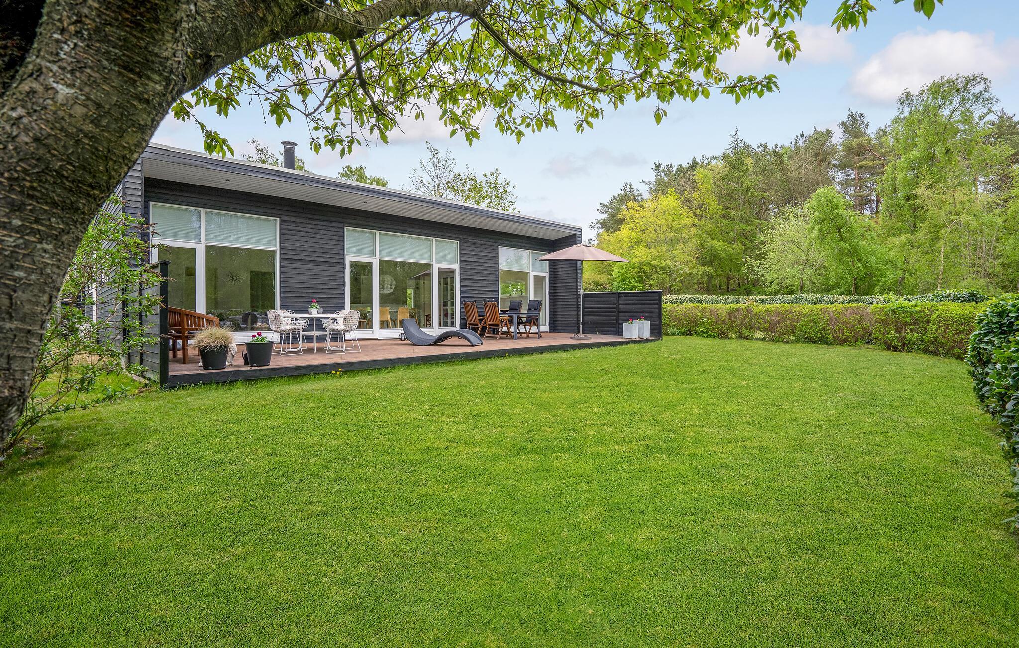 Ontdek dit prachtig ontworpen vakantiehuis in Ebeltoft, met open haard en groene tuin, perfect voor een ontspannen gezinsvakantie.