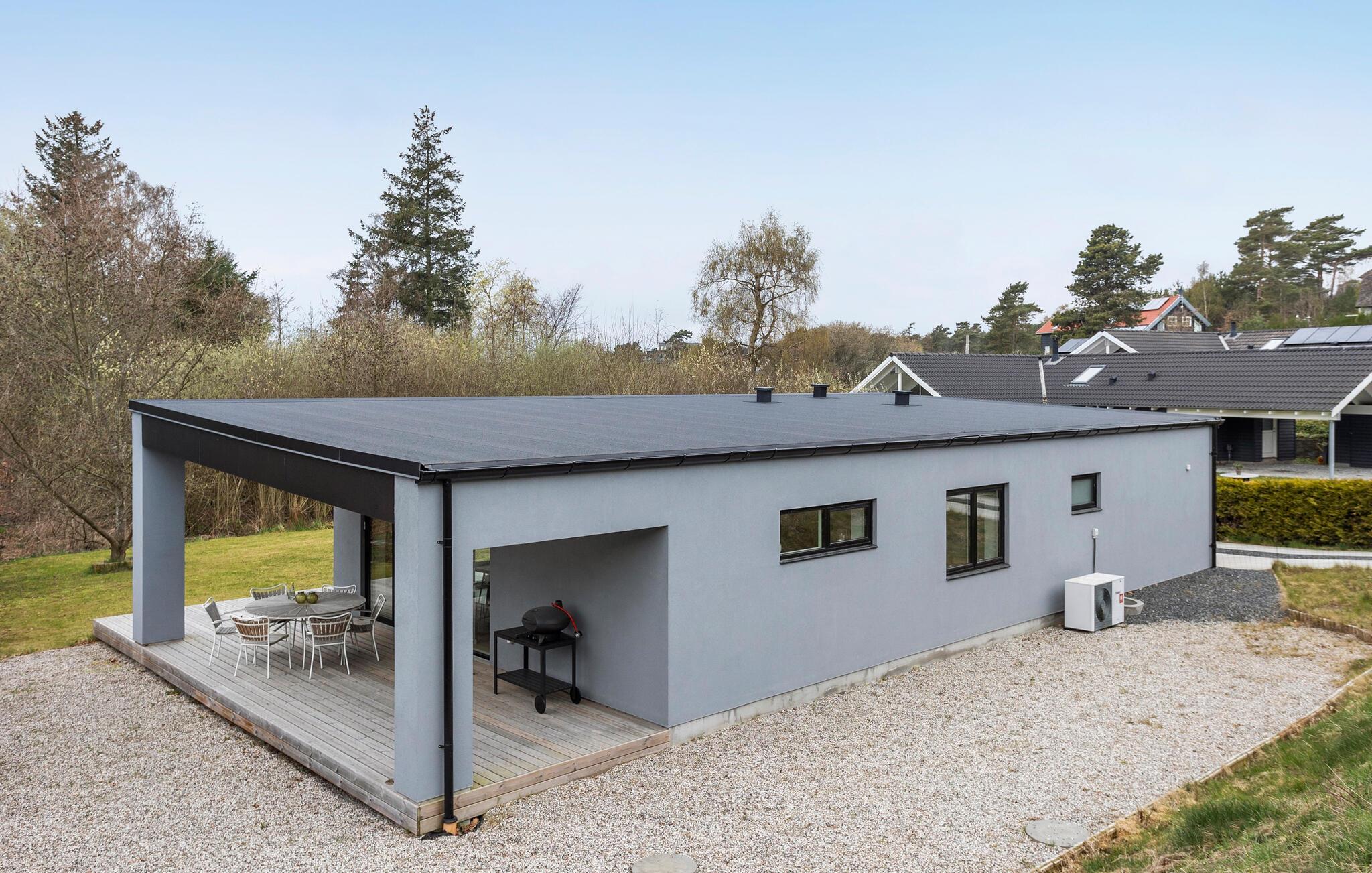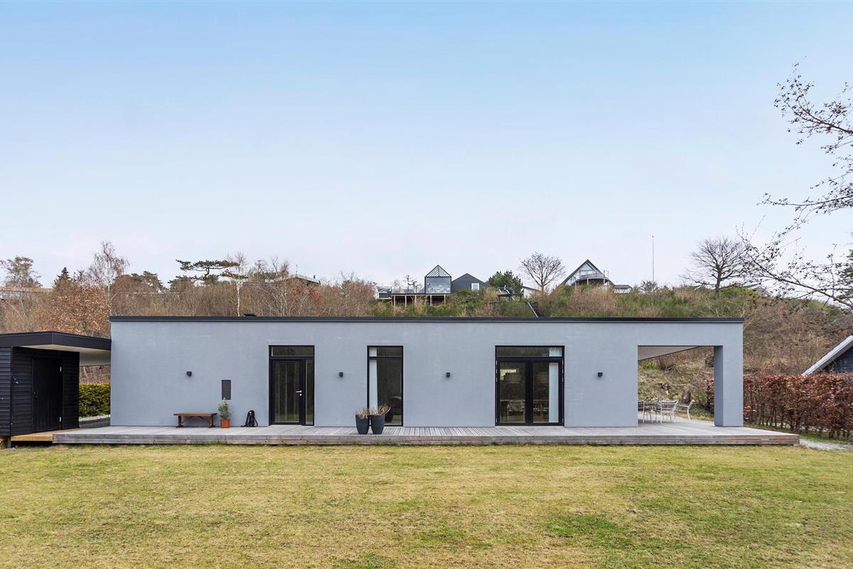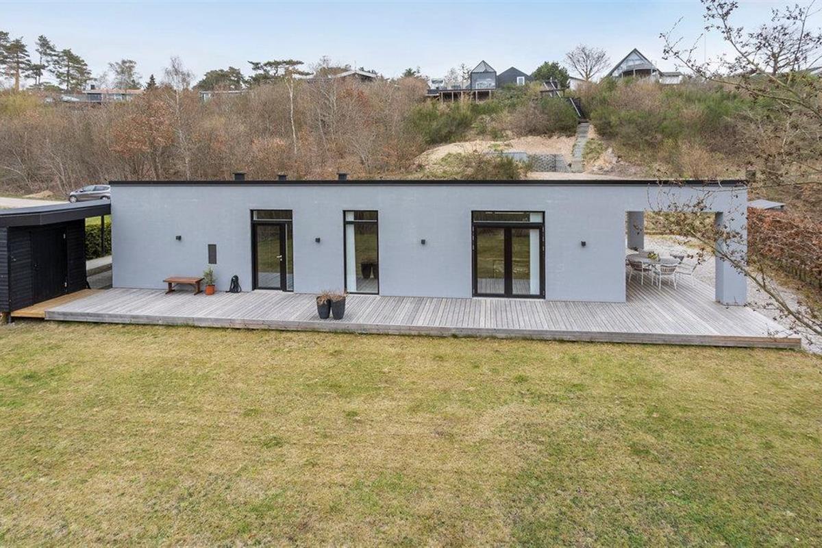 Modern vakantiehuis aan zee nabij Vibæk Strand met tuin, terras en moderne voorzieningen.