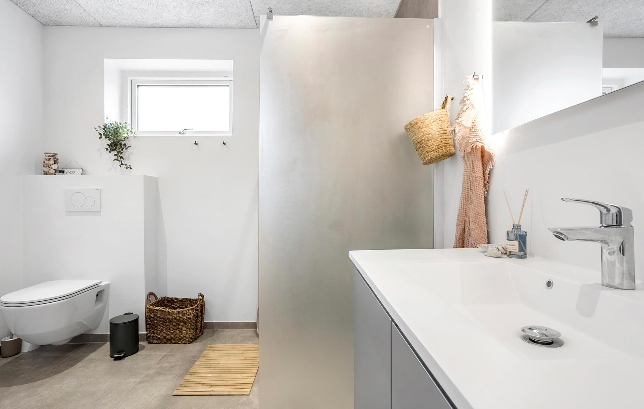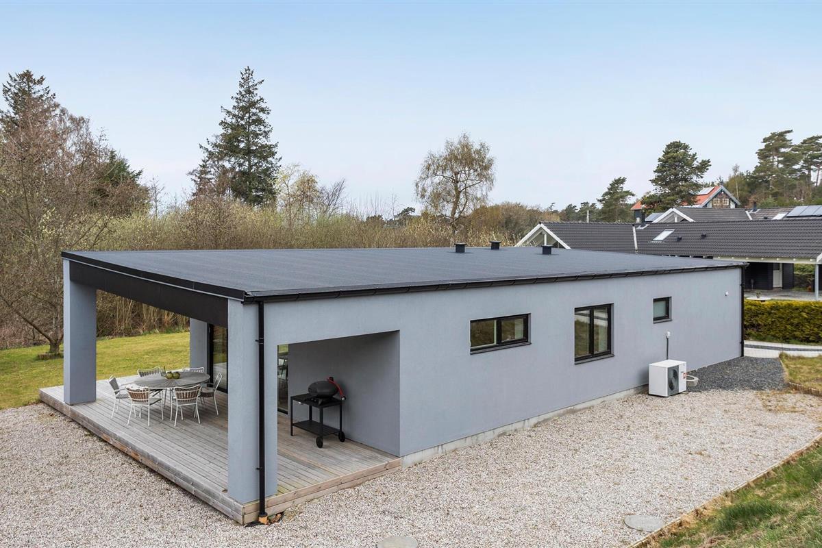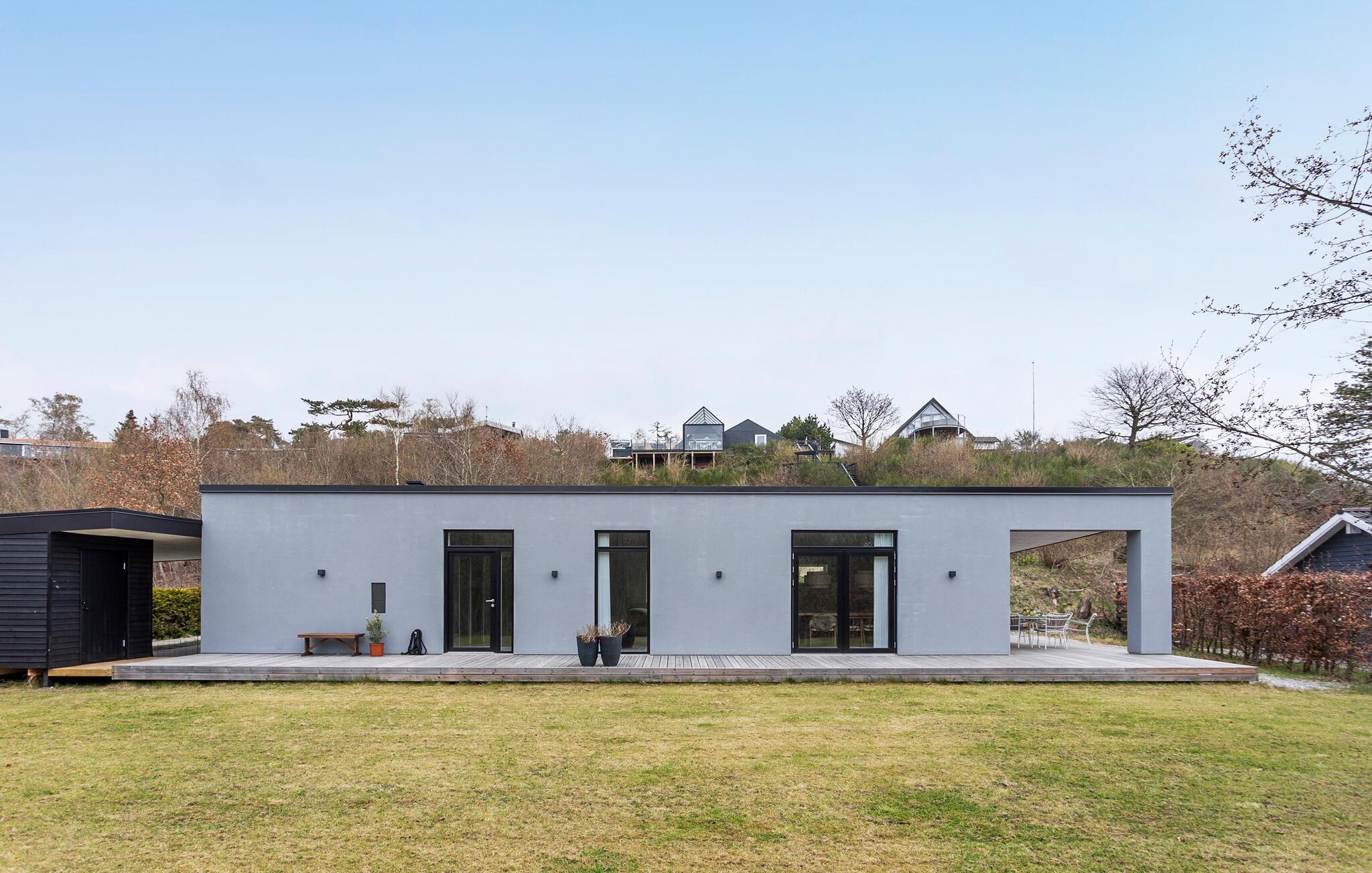 Modern vakantiehuis aan zee nabij Vibæk Strand met tuin, terras en moderne voorzieningen.