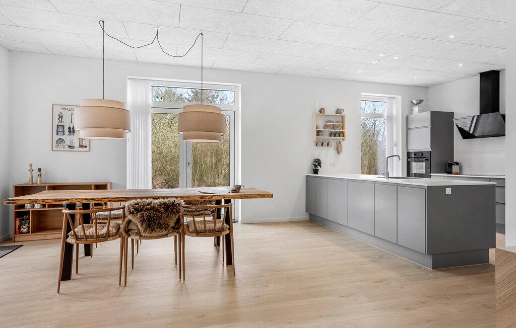 Welkom in dit uitnodigende vakantiehuis, waar zachte kleuren en natuurlijke materialen een harmonieuze feel-good sfeer creëren. Bereid heerlijke maaltijden in de hoogwaardige keuken en vier ze aan de stijlvolle eettafel met uitzicht op het groen. Ontspan op de comfortabele bank en verheug je op gezellige tv-avonden of ontspannende leessessies.