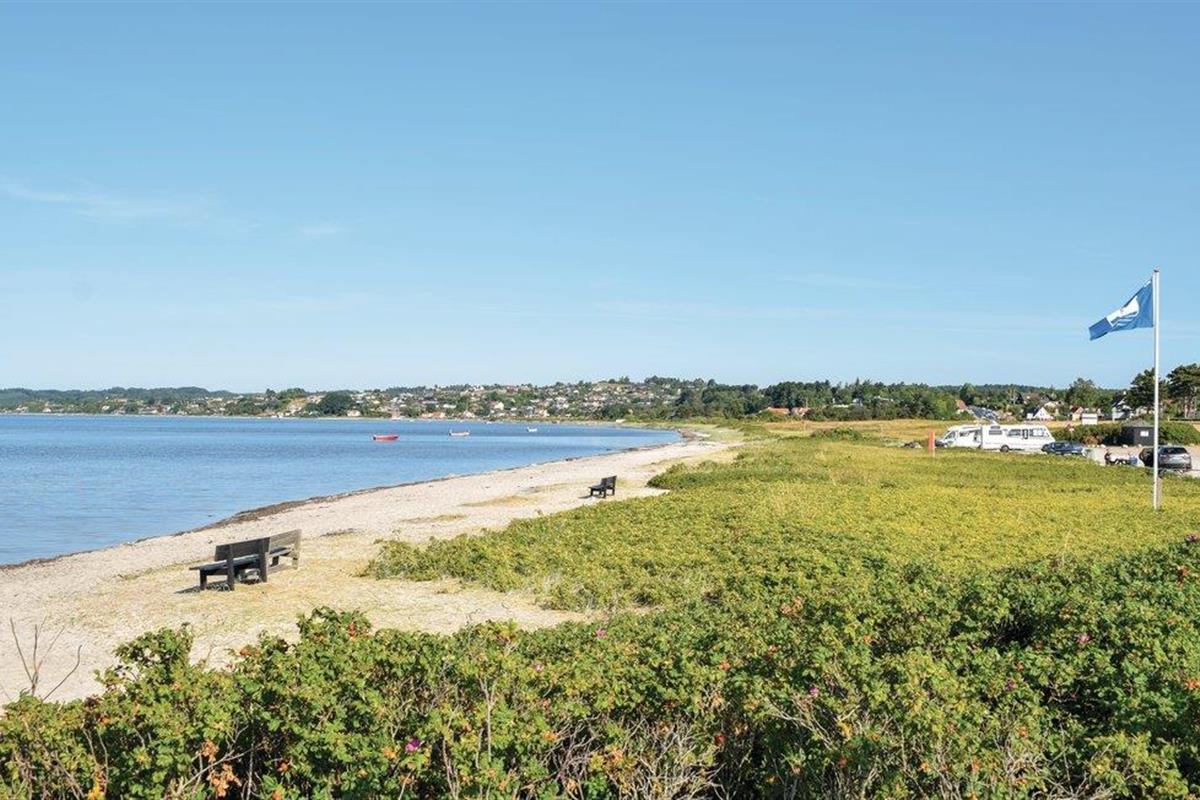 Op de eerste rij aan het populaire Vibæk Strand en naast Vibæk Strandvej, heeft dit architectonisch mooie vakantiehuis een prachtig panoramisch uitzicht en gemakkelijke toegang tot het strand en de stad Ebeltoft. De stad Ebeltoft ligt op loopafstand.