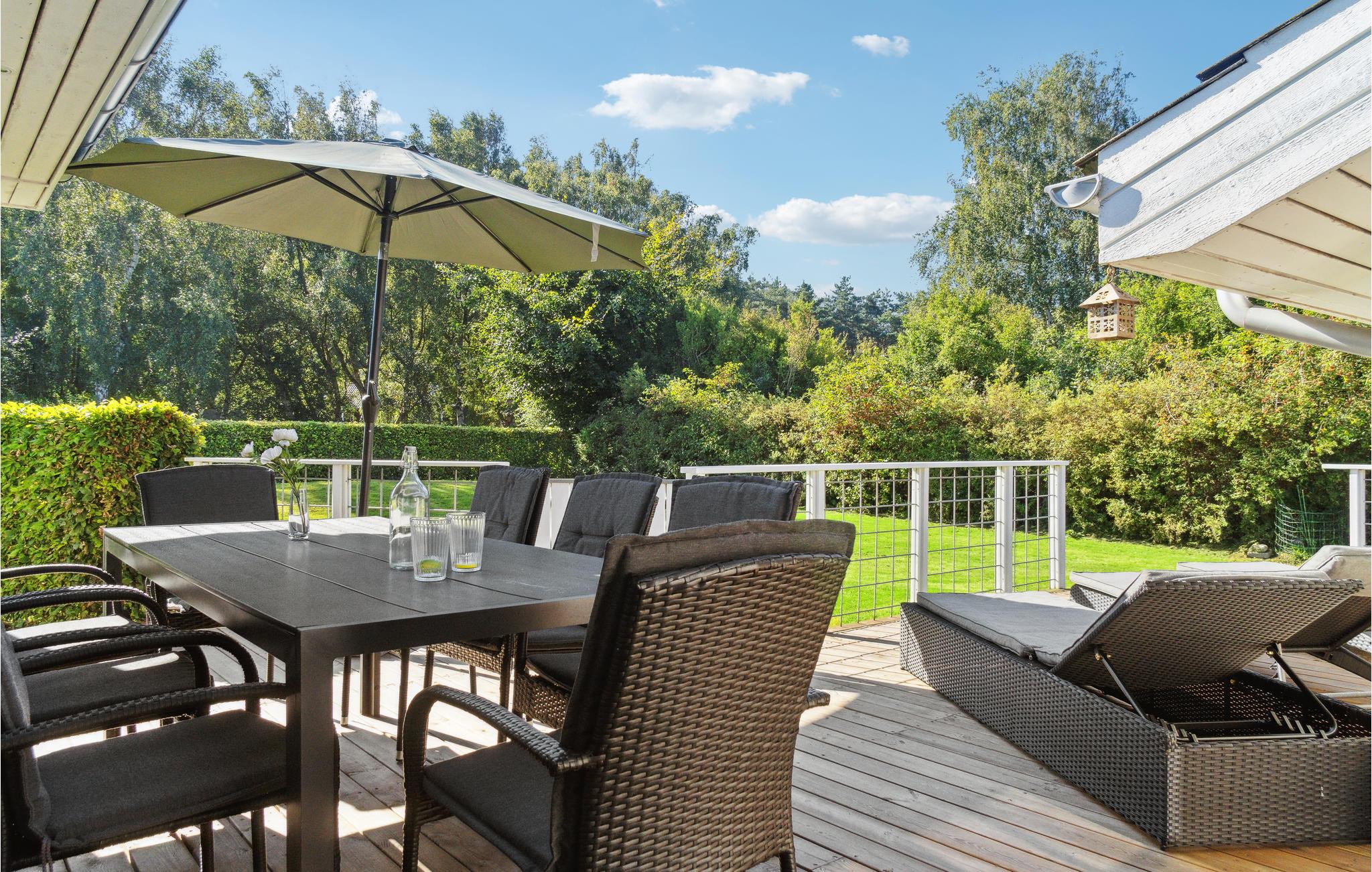 Dit vakantiehuis ligt in een rustige omgeving dicht bij Ebeltoft, en u kunt lopend/fietsend naar winkels, bowling en restaurants. Er is een pad naar het strand. Het huis is goed uitgerust en ingericht zodat zowel één als twee gezinnen op elk moment van het jaar van hun vakantie kunnen genieten. De woning is aangelegd met beplanting, beschutte plekken tegen de wind en gazon. Er is een groot terras en u kunt genieten van de avondzon op het overdekte terras. Binnen een uur rijden vindt u vele bezienswaardigheden. Bezoek bijvoorbeeld het nationale park in Mols Berge.