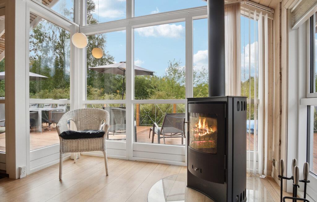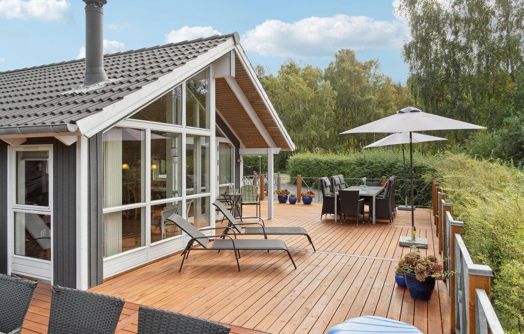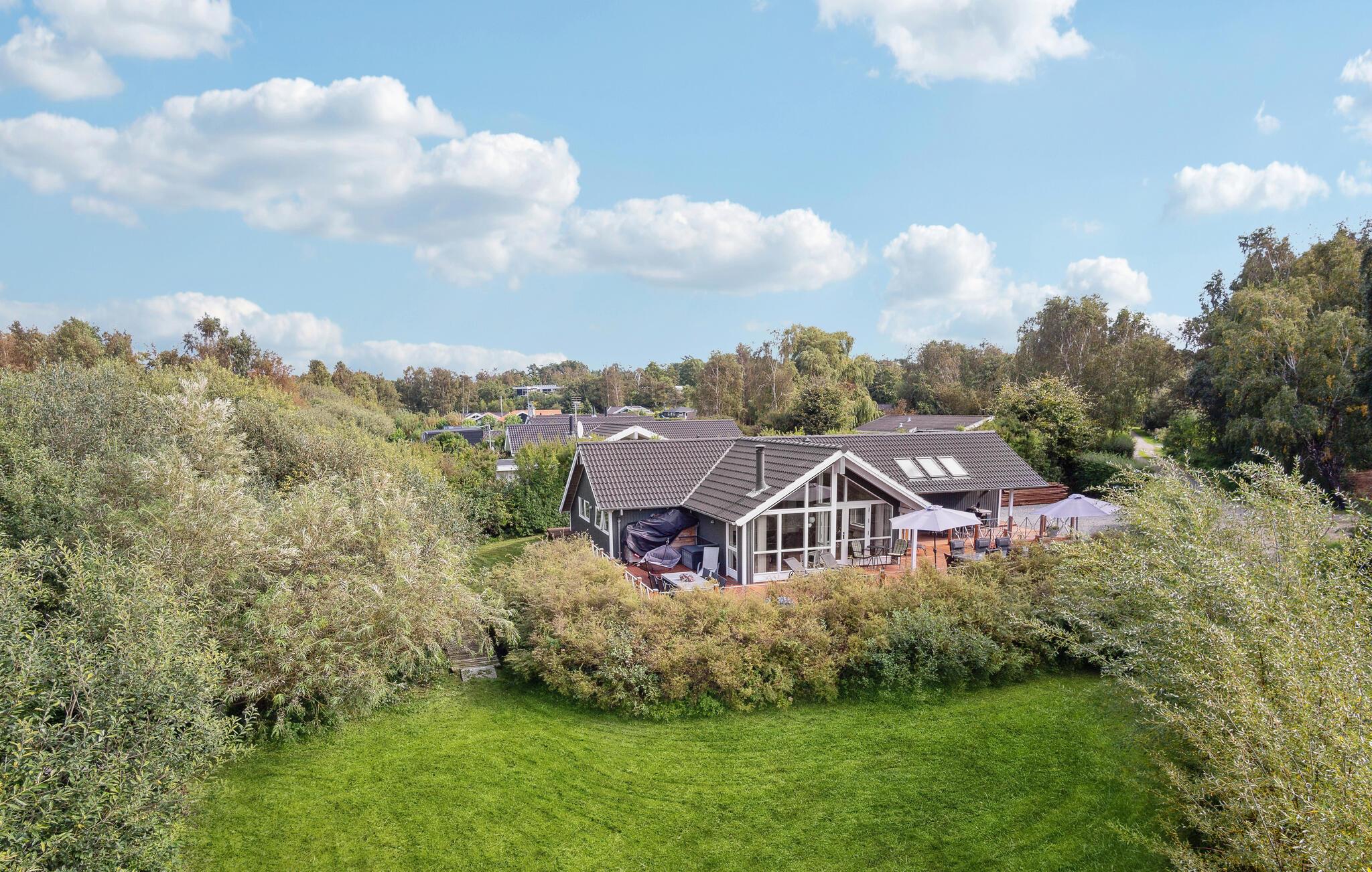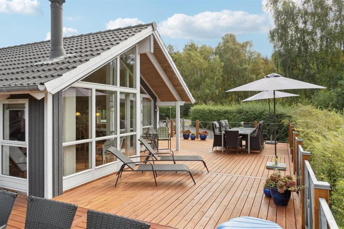 Nieuw en smaakvol vakantiehuis met veel mooie details. Het interieur is licht en er heerst een aangename sfeer. De bouwmaterialen en de inventaris zijn van hoge kwaliteit. Met 2 grote badkamers en vijf ruime slaapkamers is het huis ook geschikt voor twee gezinnen. Het ligt aan het einde van een rustig zomerhuispad, op een vlak gazon en is beschut tegen de wind. Via kleine paadjes bereikt u gemakkelijk het strand en de stad Ebeltoft. De nabijheid van het strand en de stad is in alle seizoenen aantrekkelijk.
