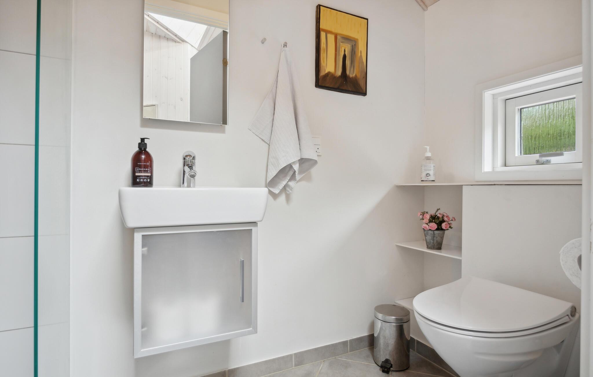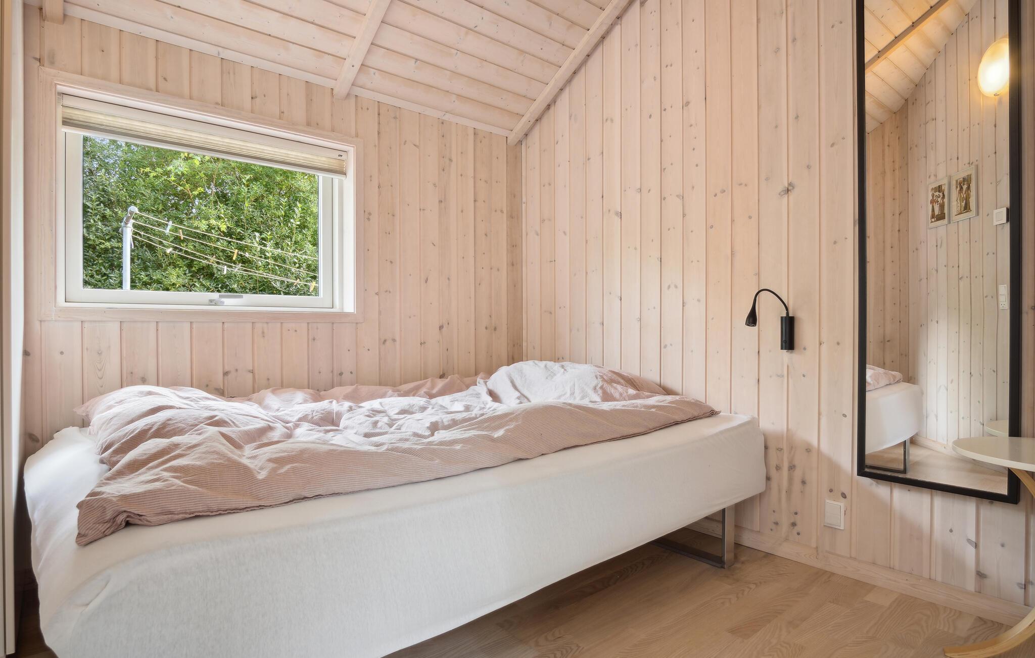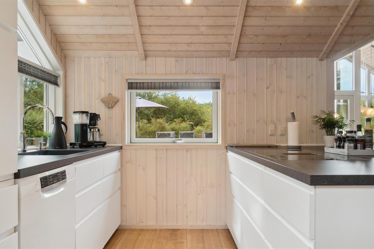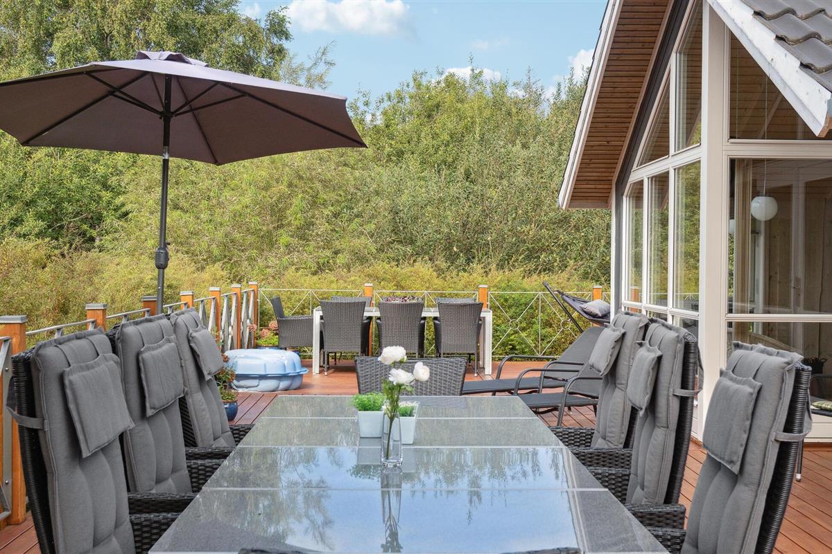 Nieuw en smaakvol vakantiehuis met veel mooie details. Het interieur is licht en er heerst een aangename sfeer. De bouwmaterialen en de inventaris zijn van hoge kwaliteit. Met 2 grote badkamers en vijf ruime slaapkamers is het huis ook geschikt voor twee gezinnen. Het ligt aan het einde van een rustig zomerhuispad, op een vlak gazon en is beschut tegen de wind. Via kleine paadjes bereikt u gemakkelijk het strand en de stad Ebeltoft. De nabijheid van het strand en de stad is in alle seizoenen aantrekkelijk.