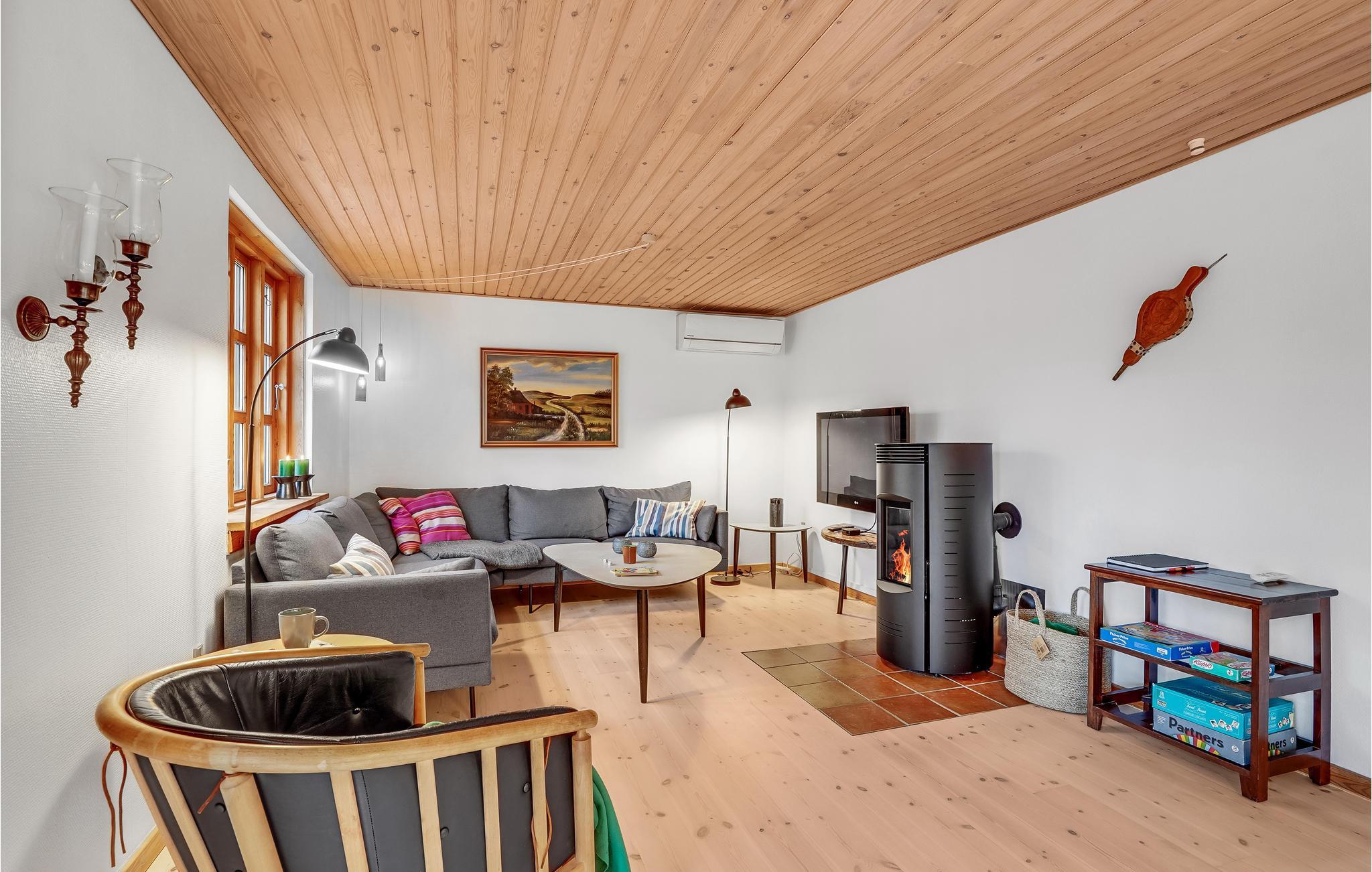 Welkom op het rustige terrein waar dit gezellige vakantiehuis staat. Hier vindt u een gezellige omgeving voor rustige momenten wanneer u thuiskomt van de avonturen van de dag. Geniet van de maaltijden van de dag aan de lange eettafel en leun later achterover in de zithoek terwijl het vuur sfeervol knettert in de pelletkachel, wat een gezellige sfeer creëert op kille avonden.