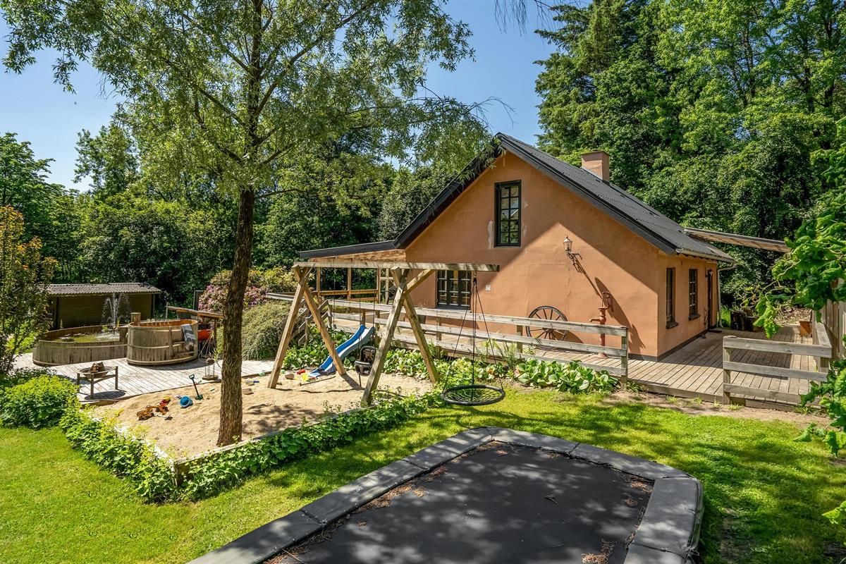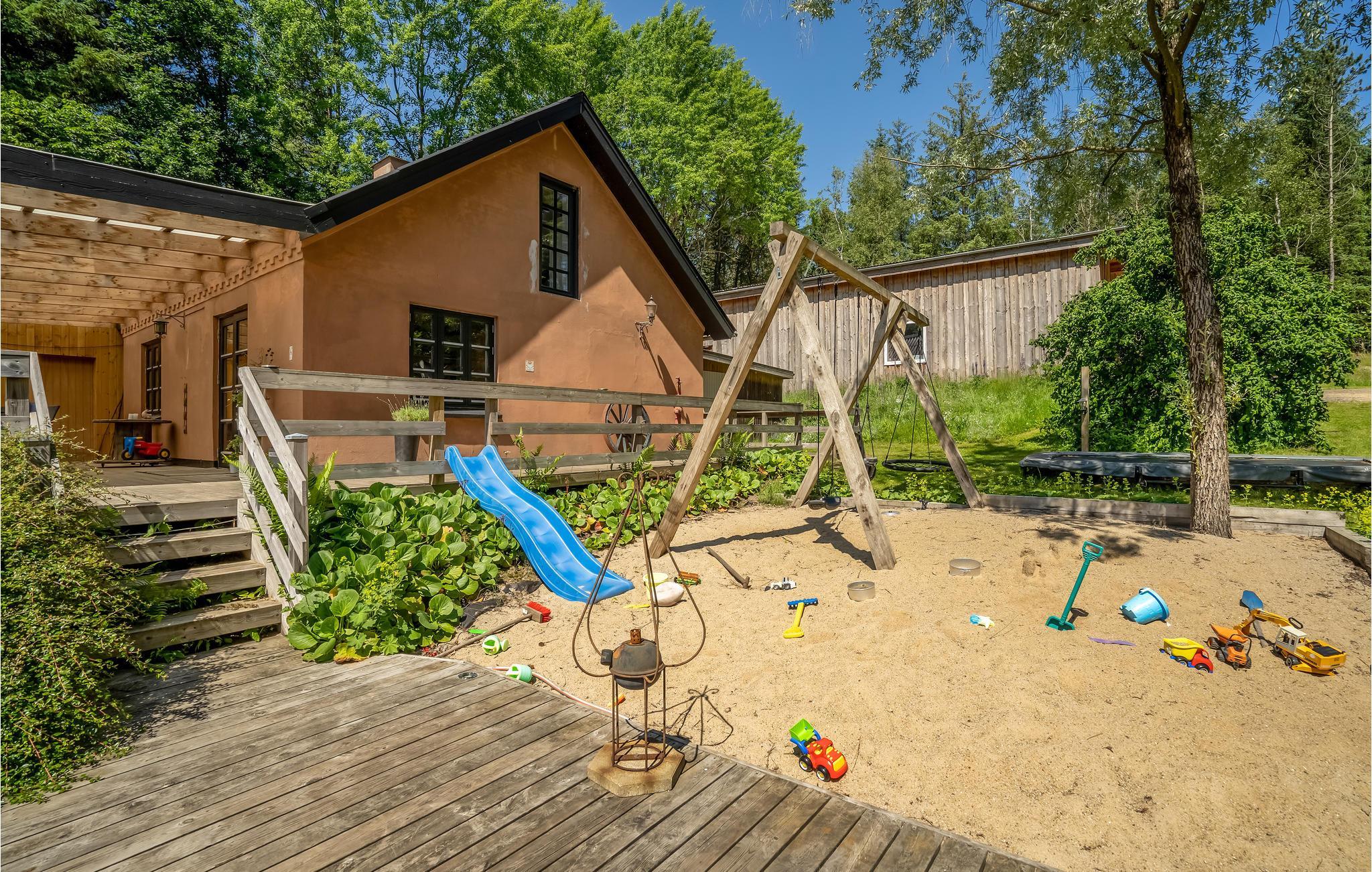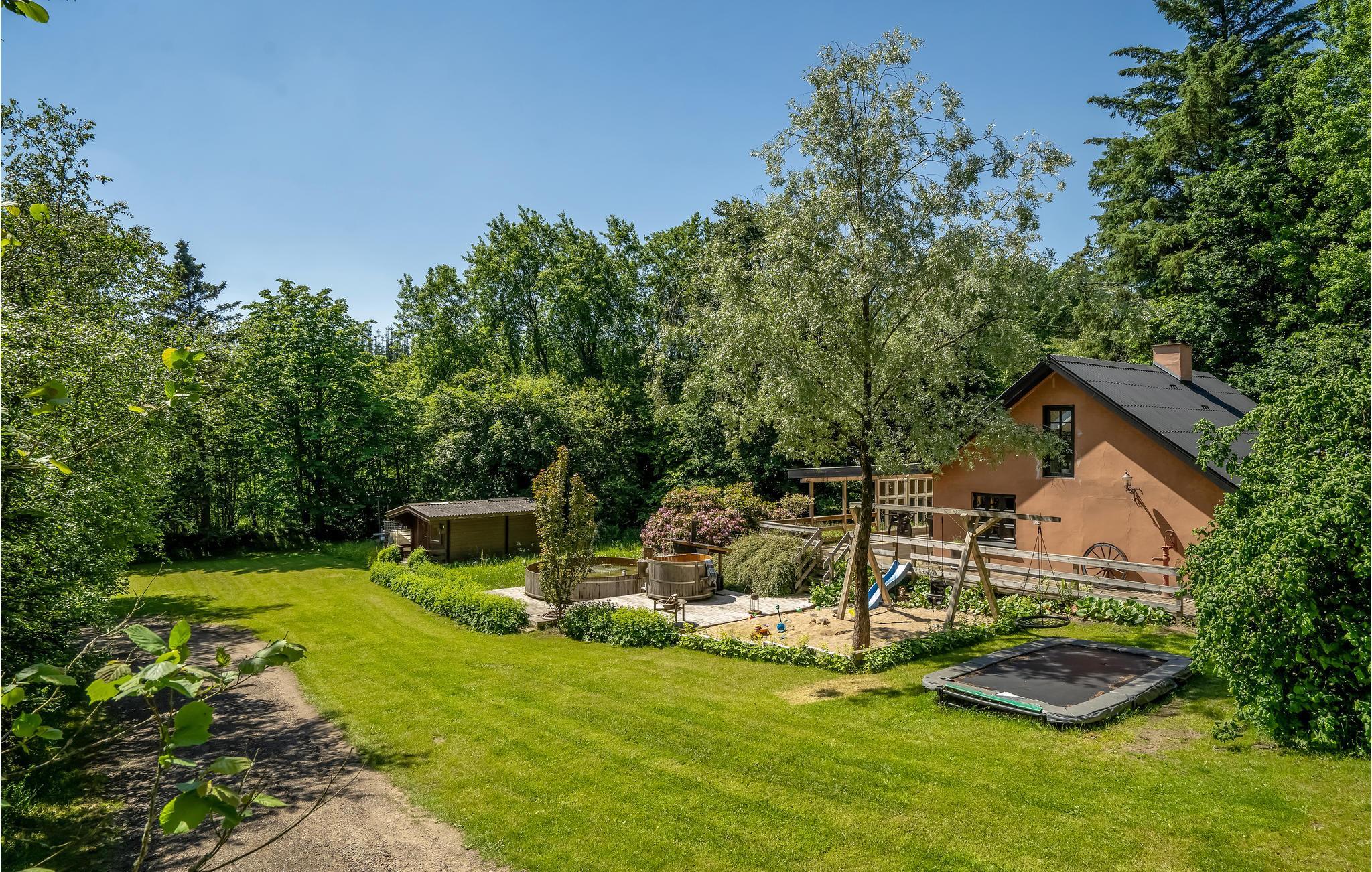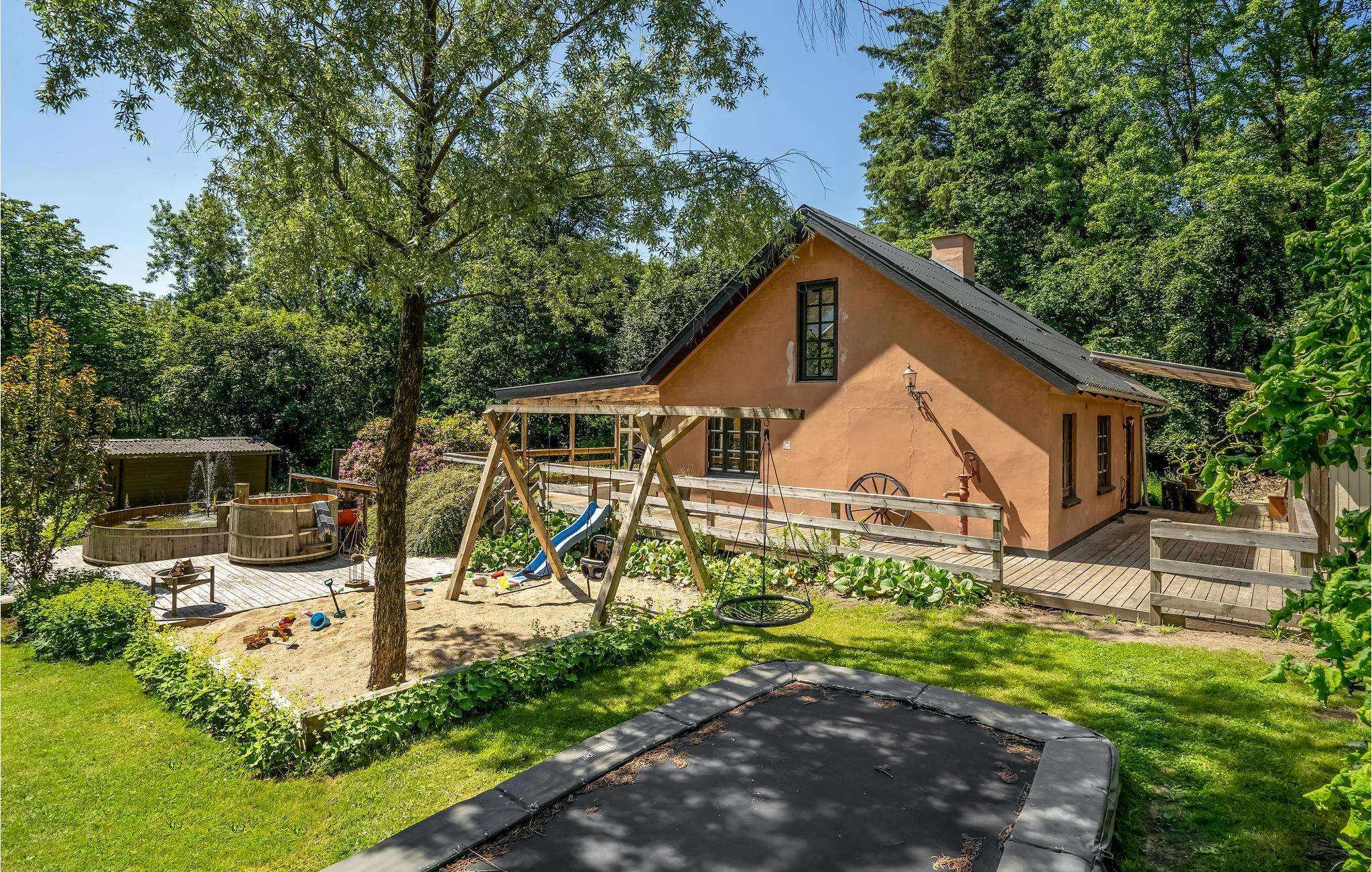 Rustig vakantiehuis in Videbæk met hot tub, speeltoestellen en sfeervolle pelletkachel voor een ontspannen verblijf.
