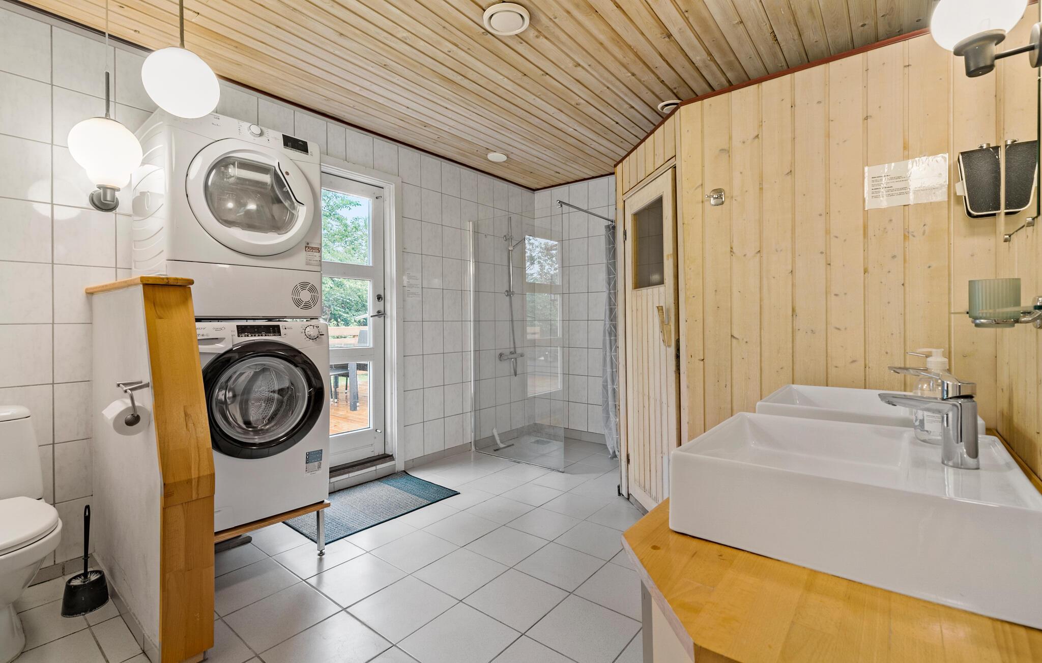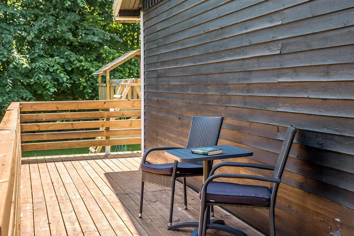 Vakantiehuis met sauna en Canadees buiten bubbelbad voor vijf personen. Om energie te besparen wordt de gasten gevraagd het servicebureau drie dagen voor aankomst te informeren als zij geen gebruik willen maken van de hot tub. De kinderen hebben hun eigen speeltuin met speelhuisje, schommels, zandbak, enz. Er is ook een open haard op het terrein. Het huis ligt niet ver van een zwemstrand, natuurgebieden en winkelmogelijkheden. Het is ook niet ver van golfbanen, vissen, enz. Odsherred heeft veel te bieden. Het door gletsjers gecreëerde landschap is gevarieerd. Golfbanen, vismeren, vissersboten uit Havnsø, kasteel Dragsholm met een spookachtige geschiedenis, attractiepark Sommerland Sjælland en een dierentuin in Odsherred, dit alles en meer.