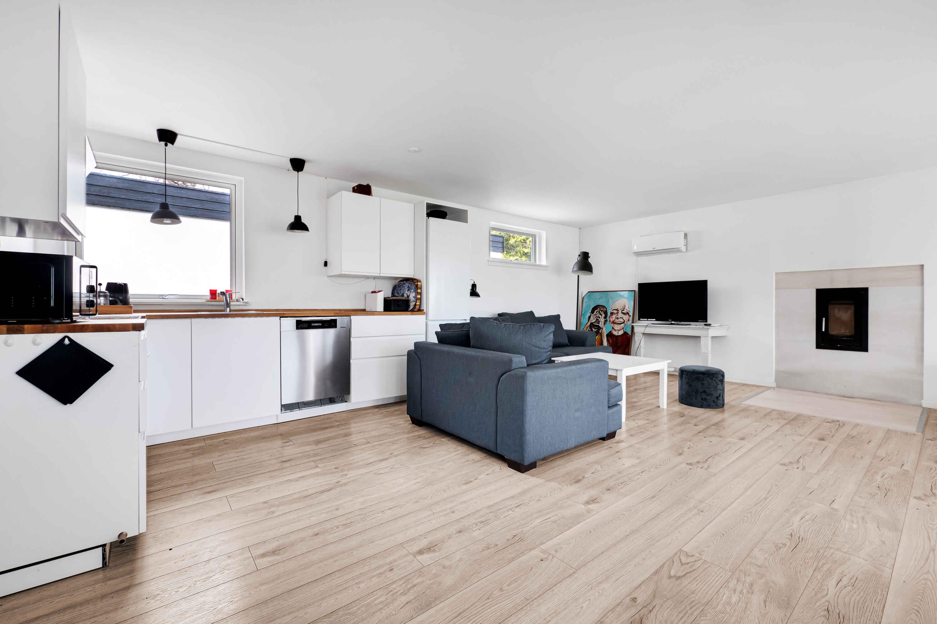 Prachtig, ruim zomerhuis op de 2e rij met het mooiste uitzicht over Lammefjord. De woning is gelegen op een 1.465m2 groot golvend perceel op 2 niveaus. Onlangs gerenoveerd in 2017 en 2022. Overdag kunt u vanaf het terras zitten en uitkijken over de fjord of naar de kleine steiger gaan (slechts 100 meter verderop) en krabben vangen of een duik nemen. Het water is zeer kindvriendelijk en ondiep bij het kleine, smalle strand. 's Nachts kun je genieten van de zwarte nachthemel of slapen in de nieuwe shelter die op het terrein staat (er liggen vier matrassen in de cottage die gebruikt kunnen worden in de shelter). Het huis is groot en ruim met 2 badkamers en 3 slaapkamers met 2 tweepersoonsbedden en 2 eenpersoonsbedden. In totaal 6 bedden. Daarnaast is er een lichte en heerlijke woonkeuken met o.a. oven, magnetron, koelkast en vaatwasser en een comfortabele zithoek met houtkachel. De grote raampartijen in de serre zorgen voor een fijne hoeveelheid licht in huis. Vanaf hier is er directe toegang tot het terras met barbecue en tuinmeubelen. Voor de kinderen zijn er veel spelletjes en een trampoline. Er is ook een telescoop in de serre als u wilt genieten van de prachtige nachtelijke hemel. Als je zin hebt in lekker eten, dan is Odsherred de plek voor veel goede ingrediënten, en op minder dan 10 km van het zomerhuis vind je het Michelin-restaurant MOTA in Anneberg Kultur Park. Als u zich wilt vermaken tijdens een wandeling, is Nykøbing Sjælland niet ver weg. De kinderen kunnen naar Sommerland Zealand komen, en als je liever naar kunst kijkt: het zomerhuis ligt op slechts een paar kilometer van Swanernes hus, Malergården, waar je meer te weten kunt komen over de kleine maar getalenteerde kunstenaarskolonie die in Odsherred was.