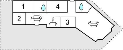 Badkamer (nr. 1) - Toilet: warm en koud water. Douche