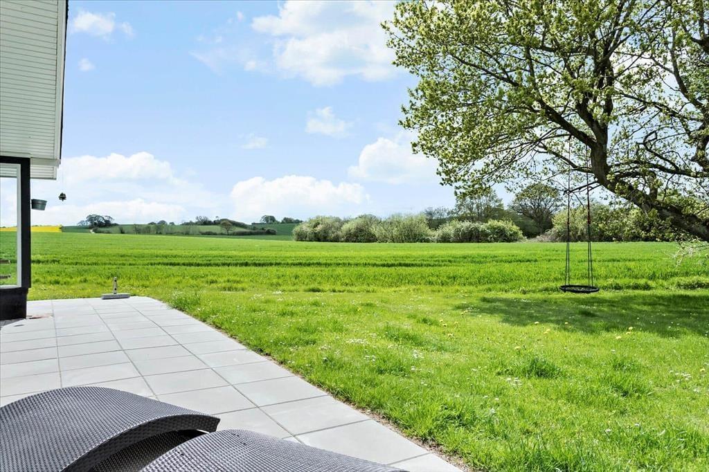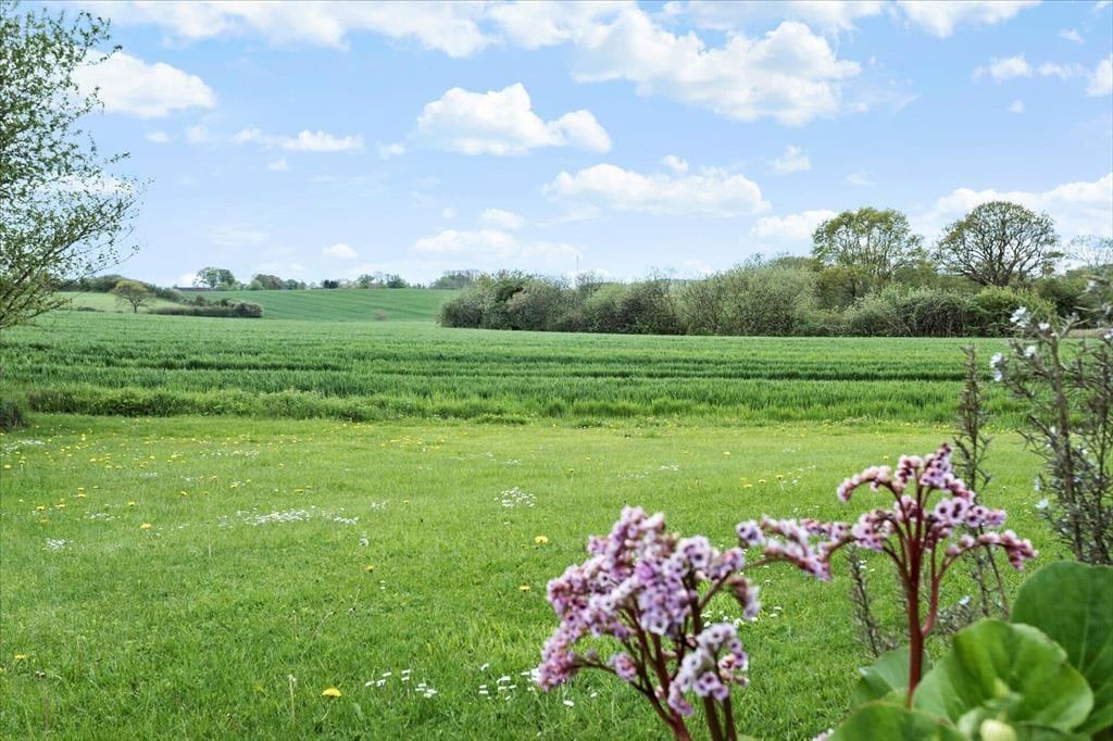 Outdoors, a lovely and secluded garden awaits, where you can enjoy the peace and fresh air to the fullest. The garden is surrounded by open fields, creating a wonderful sense of freedom and privacy, and here you can listen to the birds singing as the sun warms your face. The terrace invites you to long, lazy days with morning coffee in the sun and cosy evenings with barbecues and delicious meals under the open sky. The garden also offers space for play, relaxation, and quiet moments with a good book. With dogs welcome, it’s easy to bring the whole family along, and the scenic surroundings are ideal for small walks right from the front door.