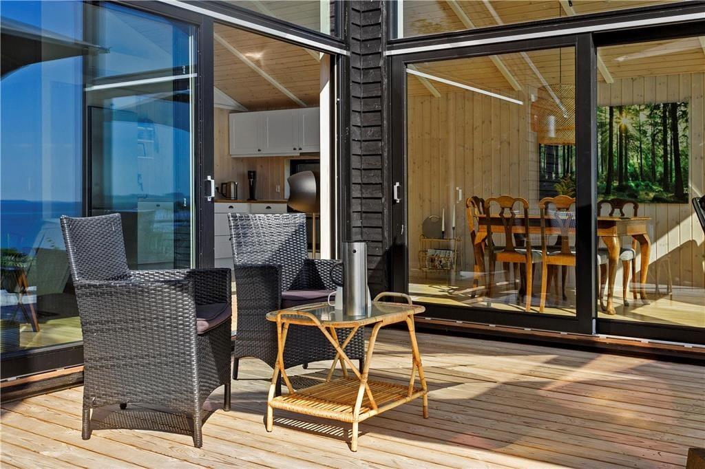 Die schönen Terrassen zählen zweifelsohne zu den besonders großen Pluspunkten dieses Hauses. Vor dem Haus lockt eine kleinere, nach Westen ausgerichtete Terrasse. Gen Süden erwartet Sie eine schöne Außenküche. Auf der Wasserseite, also gen Südosten, laden zwei große sonnenverwöhnte Terrassen zu traumhaft erholsamen Stunden ein. Hier können Sie im Liegestuhl ein Nickerchen machen oder auch einfach den grandiosen Ausblick über den Limfjord und zur Insel Mors genießen.