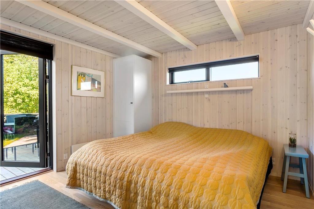 Das im Jahr 2020 errichtete Ferienhaus begeistert mit seinem schlichten und klassischen Stil, der Sie im Nu in eine wunderbare Urlaubsstimmung versetzen wird. In Richtung des Wassers gewähren Ihnen die großen Fensterfronten einen einzigartigen Ausblick. Die Innenraumgestaltung ist modern und umfasst einen großen Wohnraum mit einem Biokamin in offener Verbindung zur Küche. Zur Wohnfläche zählen darüber hinaus auch drei Schlafräume, die allesamt mit je einem Doppelbett ausgestattet sind. Sechs übernachtende Urlauber finden also problemlos in diesem ansprechenden Mietobjekt Platz. Ein Badezimmer ist selbstverständlich ebenfalls vorhanden. Es umfasst eine Dusche, eine Fußbodenheizung, eine Waschmaschine und einen Wäschetrockner.