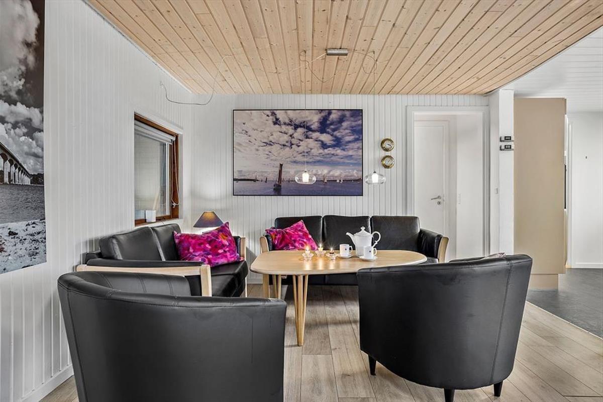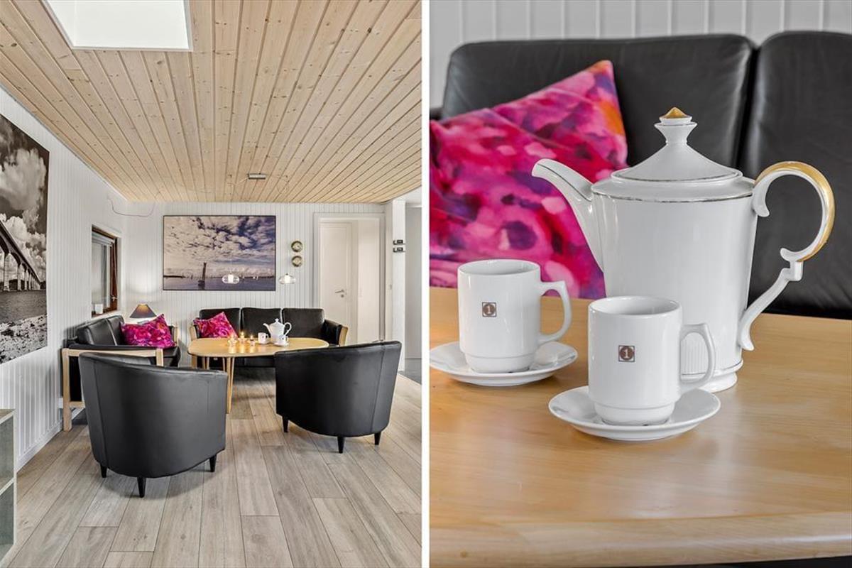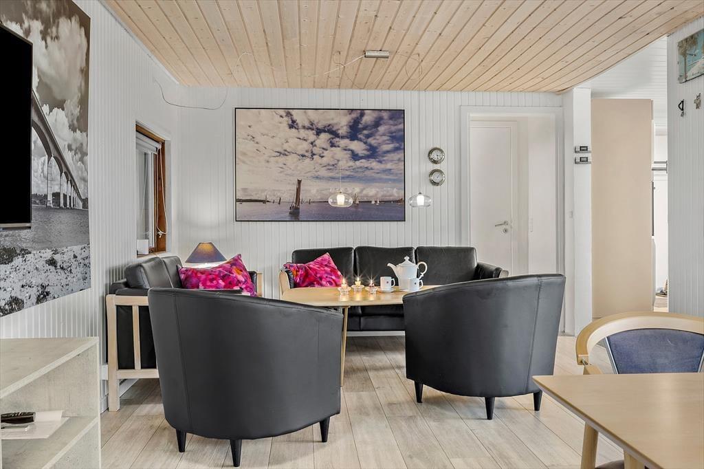 Drinnen erwartet Sie eine helle und einladende Einrichtung, die sofort eine entspannte Urlaubsatmosphäre schafft. Das Wohnzimmer und die Küche sind offen gestaltet, sodass Sie gemeinsam Zeit verbringen können – sei es beim Kartenspielen am Esstisch oder beim gemeinsamen Zubereiten des Abendessens. Das bequeme Sofa lädt zum Entspannen vor dem Kamin ein, während Sie nach einem erlebnisreichen Tag zur Ruhe kommen. Das Haus verfügt über drei Schlafzimmer mit guten Betten, sodass sowohl Kinder als auch Erwachsene ausgeruht in einen neuen Urlaubstag starten können. Das Badezimmer ist hell und funktional, und überall im Haus herrscht eine angenehme Atmosphäre von Raum und Gemütlichkeit.