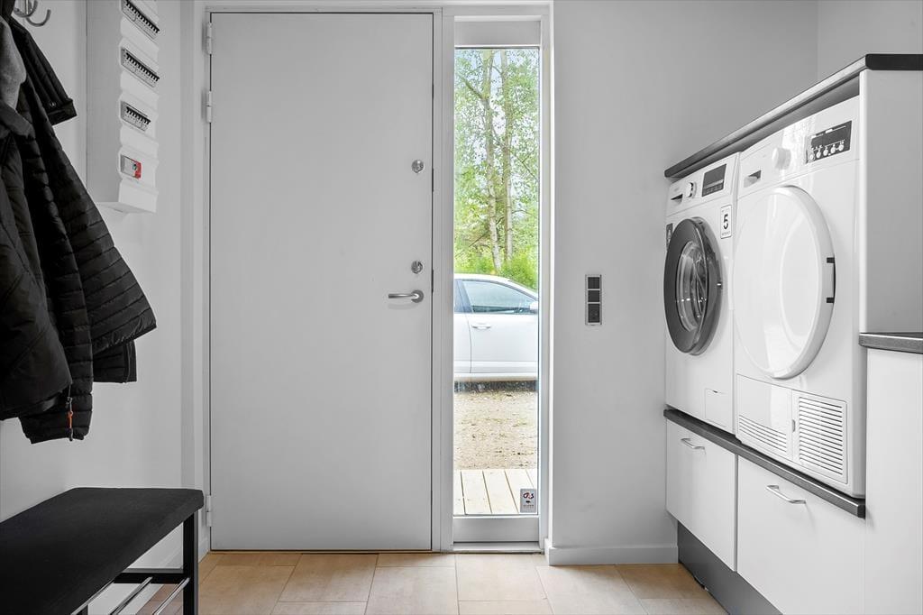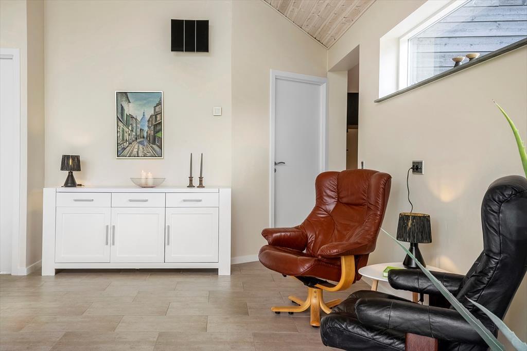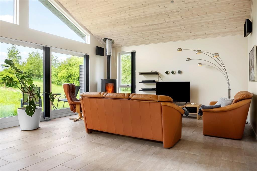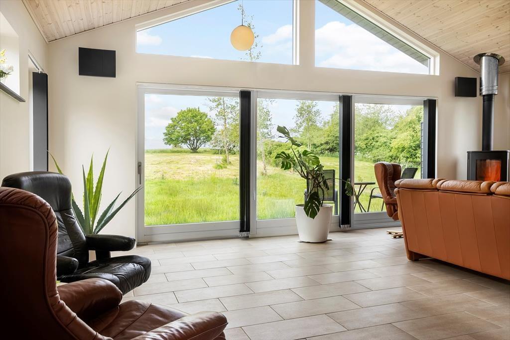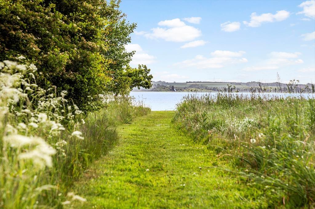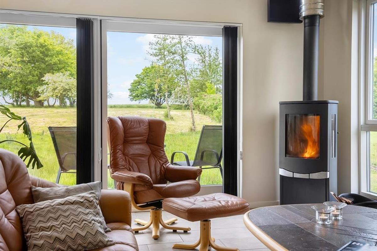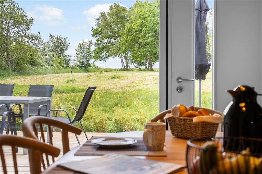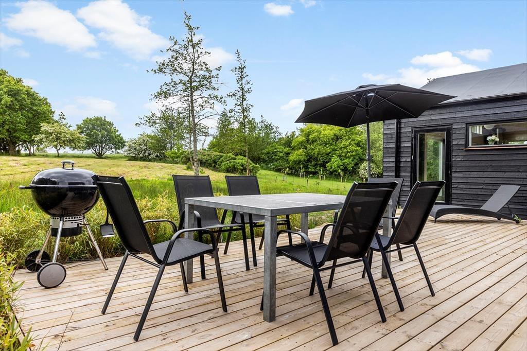 Obwohl es einfach herrlich ist, die Urlaubstage ganz entspannt und zwanglos im Ferienhaus zu verbringen, wird dich die hoch am Himmel stehende Sonne garantiert hinaus ins Freie locken. Das Terrassenareal besticht mit einer Grundfläche von 60 m² und ermöglicht dir die Wahl zwischen mehreren Aufenthaltsplätzen. Dank der hochwertigen Gartenmöbel und Gartenliegen gestaltet sich dein Aufenthalt an der frischen Luft angenehm komfortabel. Das 2.992 m² umfassende Naturgrundstück bietet viel Platz zum Erholen, Ballspielen und Umhertollen. Die offene Landschaft vor dem Fjordufer unterstreicht das Gefühl von Ruhe und Erholung auf schönste Weise.