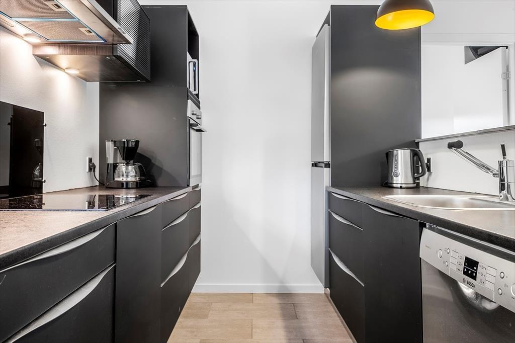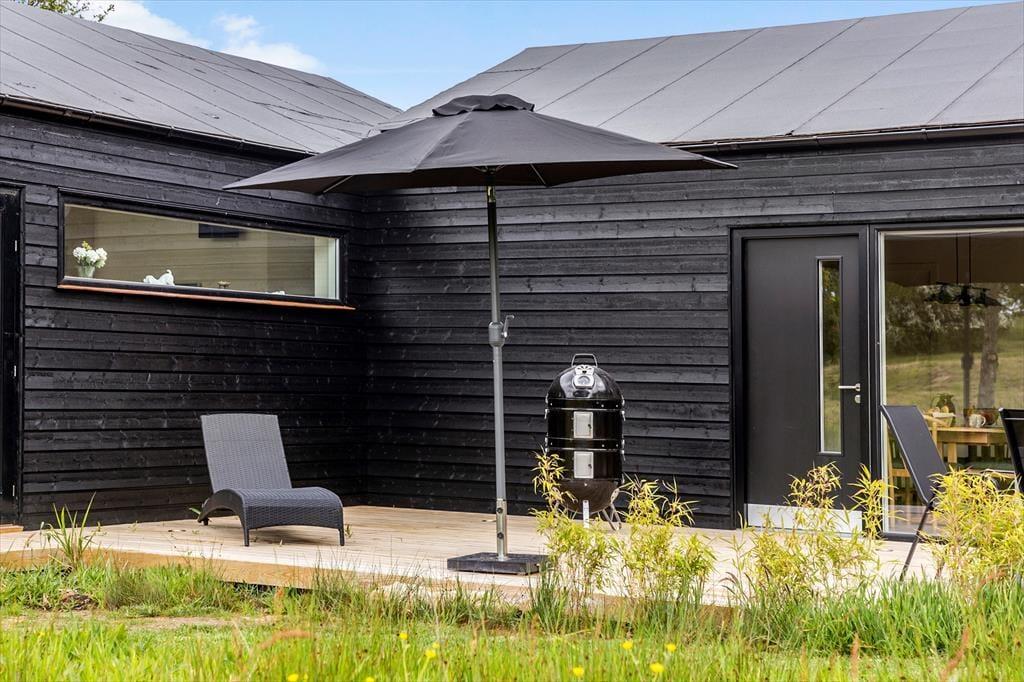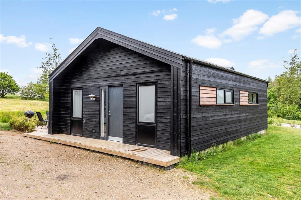 Das schwarz gestrichene Ferienhaus ist neu erbaut und bereit, den Rahmen für einen Urlaub in stilvollem, modernem Ambiente zu bilden – perfekt für Entspannung und Gemütlichkeit das ganze Jahr über. Die großen Fensterpartien sorgen für einen attraktiven Tageslichteinfall und stellen eine schöne Verbindung zur umliegenden Natur her - selbst dann, wenn du in aller Ruhe im Wohnraum liest, mit deiner Familie Gesellschaftsspiele spielst oder in der Küche köstliche Mahlzeiten kreierst. Zum Schlafen stehen euch drei ansprechende Schlafräume zur Verfügung. Gleiches gilt für einen eingezogenen Schlafboden. Dein Ferienhaus beherbergt demnach bis zu sechs Erwachsene und zwei Kinder. Der im Wohnraum platzierte Kaminofen verwöhnt dich und deine Lieben an kühlen Tagen und Abenden mit viel Gemütlichkeit, Wärme und klassischer Ferienhausatmosphäre. Pure Entspannung und beste Erholung verspricht das große Wellnessbadezimmer, das mit einem Whirlpool und einer Sauna zu glänzen weiß.