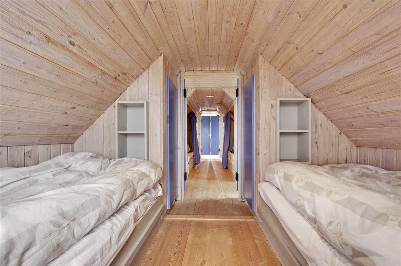 Er zijn in totaal 2 slaapkamers. De slaapplaatsen zijn als volgt verdeeld: 6 slaapplaatsen in eenpersoonsbedden. 2 van deze slaapplaatsen bevinden zich in de open slaapzolder.