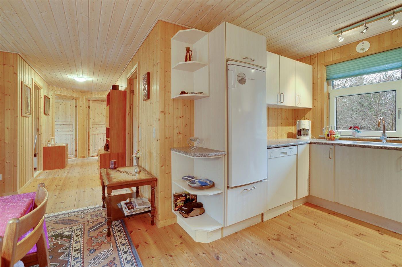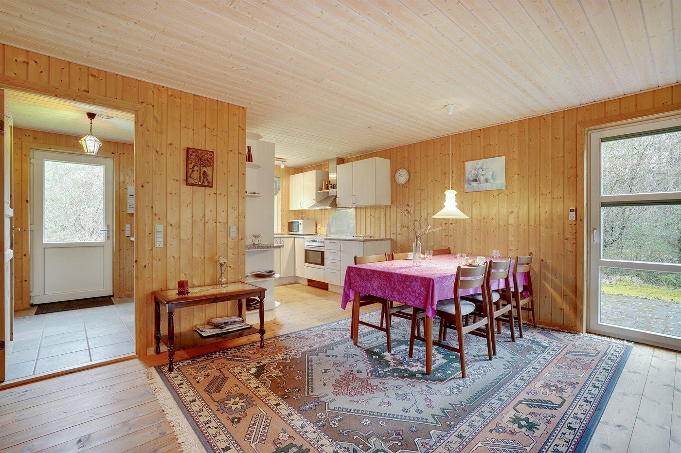 De vakantiewoning is gelegen op een 5000 m² groot natuural grond. Afstand tot de fjord 700 m. Er is een zwemsteiger in de buurt. Dichtstbijzijnde winkel 2000 m. Bij de vakantiewoning hoort 30 m² terras. Afstand tot speelplaats 200 m. Barbecue. Parkeerplaats bij het huis.