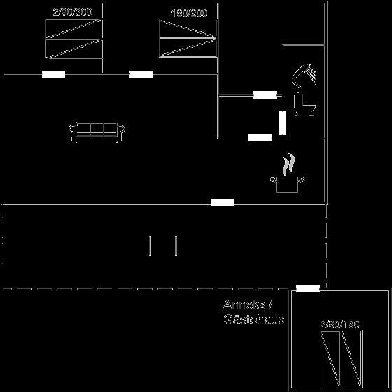 Er zijn in totaal 3 slaapkamers. De slaapplaatsen zijn als volgt verdeeld: 2 slaapplaatsen in tweepersoonsbed. 4 slaapplaatsen in eenpersoonsbedden.- 2 van deze slaapplaatsen bevinden zich in de bijgebouw.