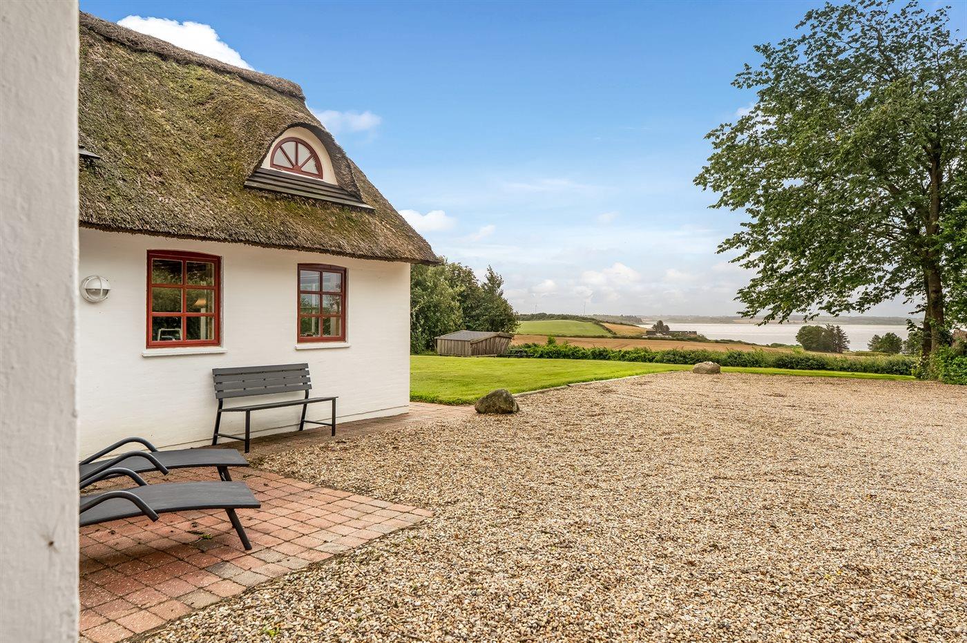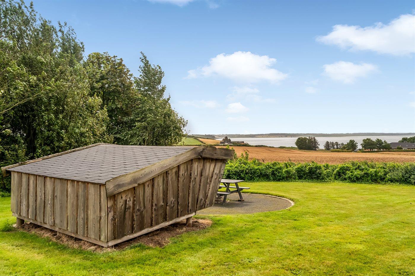 De vakantiewoning is gelegen op een 8700 m² groot natuural grond. Afstand tot de fjord 400 m. Dichtstbijzijnde winkel 4000 m. Er is een golfbaan op een afstand van 5600 m. Bij de vakantiewoning hoort terras. Gereedschapsruimte.Vuurplaats. Shelter. Barbecue. Carport ter beschikking. Parkeerplaats bij het huis.