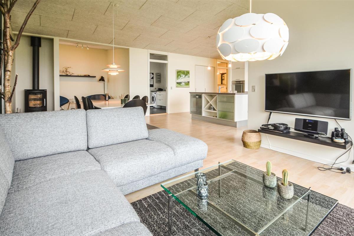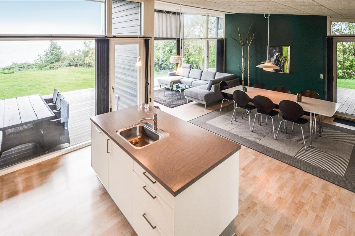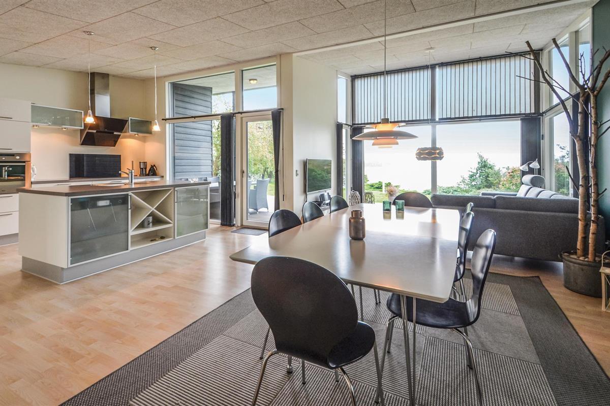 Het vakantiehuis is iets buitengewoons. Het ligt op de 1e rij aan het water en biedt u een panoramisch uitzicht op het fjord en de prachtige natuur van de omgeving. Het huis is zo geplaatst dat de buren ver weg lijken, u kunt hier ongestoord genieten van de privacy. De minimalistische stijl past goed bij het huis. Grote ramen met uitzicht op het water laten in de zomer veel licht in het huis. Mooie buitenruimte op het heuvelachtige perceel dat langzaam afloopt naar het water in de Harrevig baai aan de Limfjord.