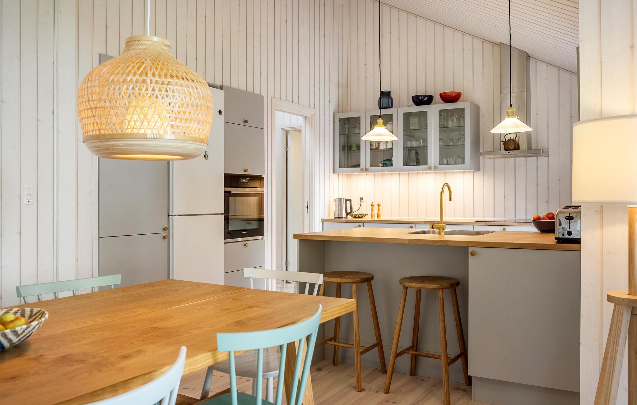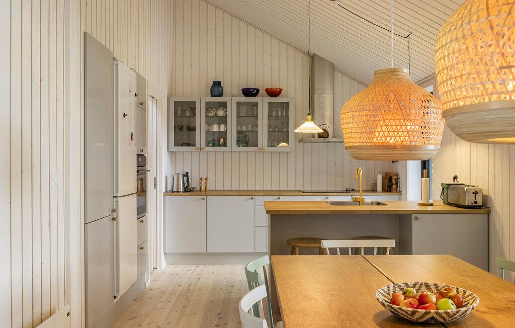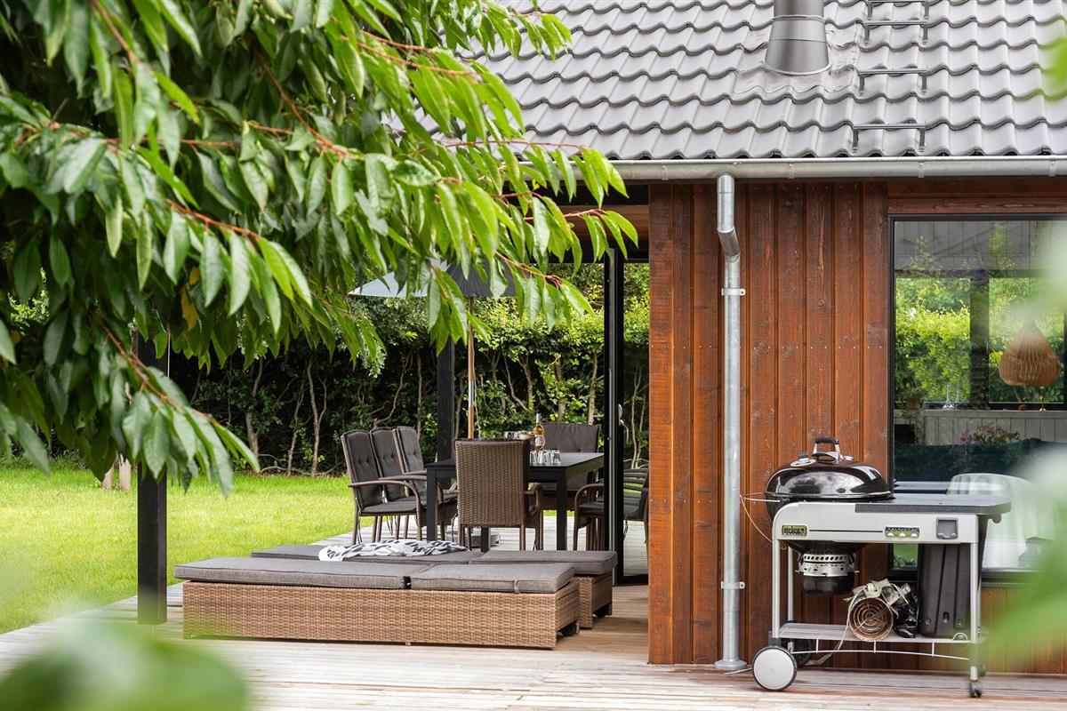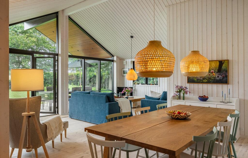 Als je op zoek bent naar een luxe vakantiehuis in een natuurlijke omgeving, dan is dit vakantiehuis in Villingebæk echt iets voor jou. Het mooie houten huis is omgeven door een liefdevol onderhouden tuin en biedt een zonnig terras. Hier vind je de ideale plek om de dag ontspannen te beginnen of gezellig af te sluiten. De lichte woonkamer met grote ramen en gezellige meubels nodigt je uit om ontspannende uren door te brengen, terwijl de open keuken direct overgaat in de ruime eethoek. Dineer hier met het hele gezin. Op warme dagen kun je buiten van je maaltijd genieten en je blik over het groen laten dwalen.