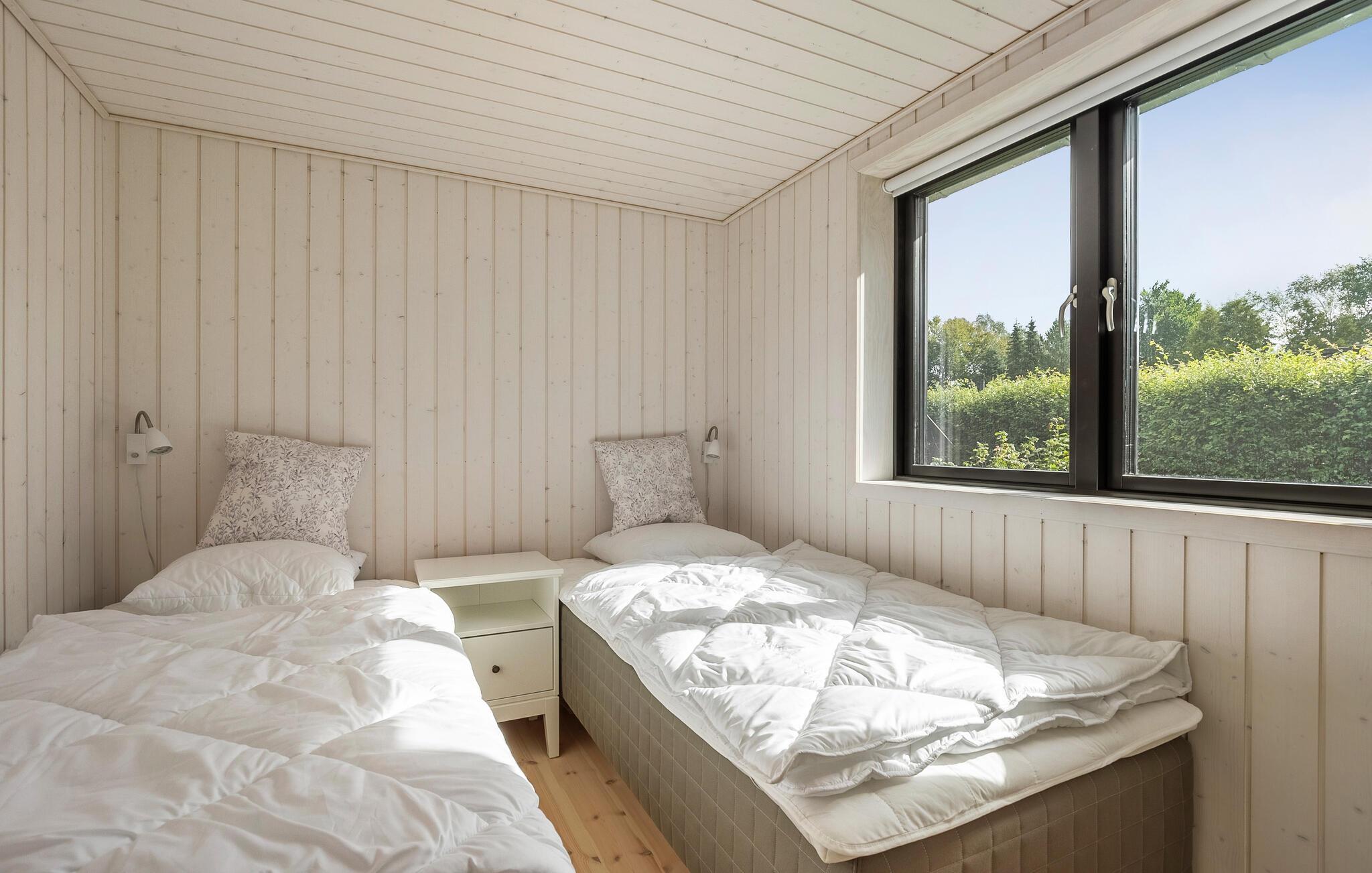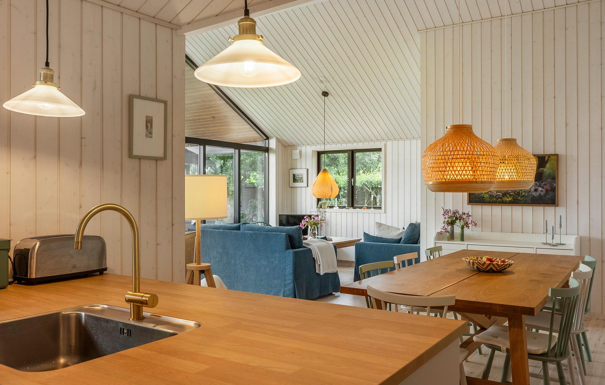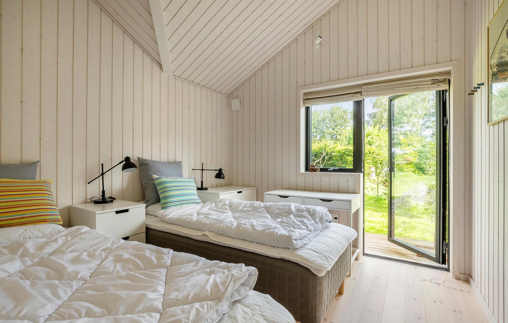 Als je op zoek bent naar een luxe vakantiehuis in een natuurlijke omgeving, dan is dit vakantiehuis in Villingebæk echt iets voor jou. Het mooie houten huis is omgeven door een liefdevol onderhouden tuin en biedt een zonnig terras. Hier vind je de ideale plek om de dag ontspannen te beginnen of gezellig af te sluiten. De lichte woonkamer met grote ramen en gezellige meubels nodigt je uit om ontspannende uren door te brengen, terwijl de open keuken direct overgaat in de ruime eethoek. Dineer hier met het hele gezin. Op warme dagen kun je buiten van je maaltijd genieten en je blik over het groen laten dwalen.