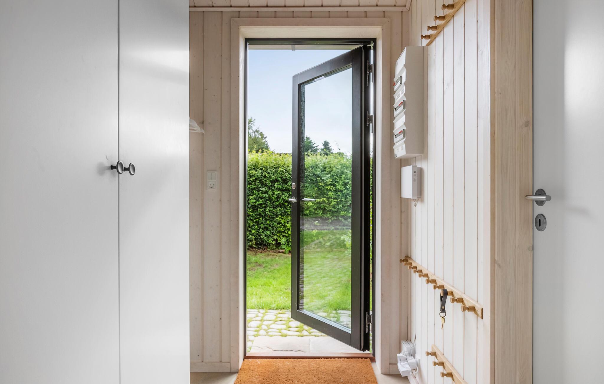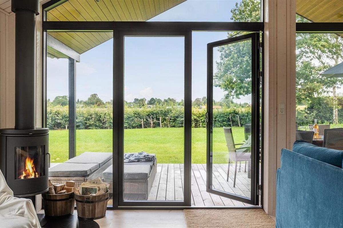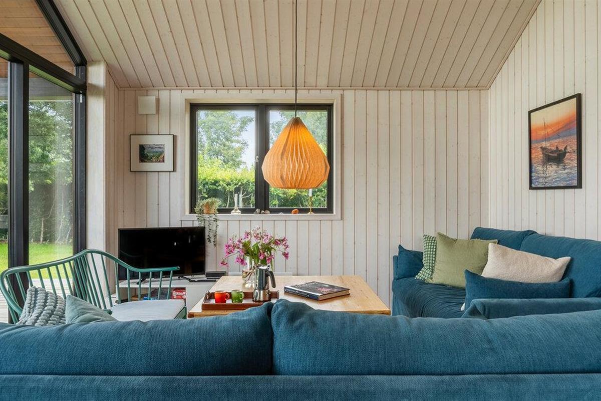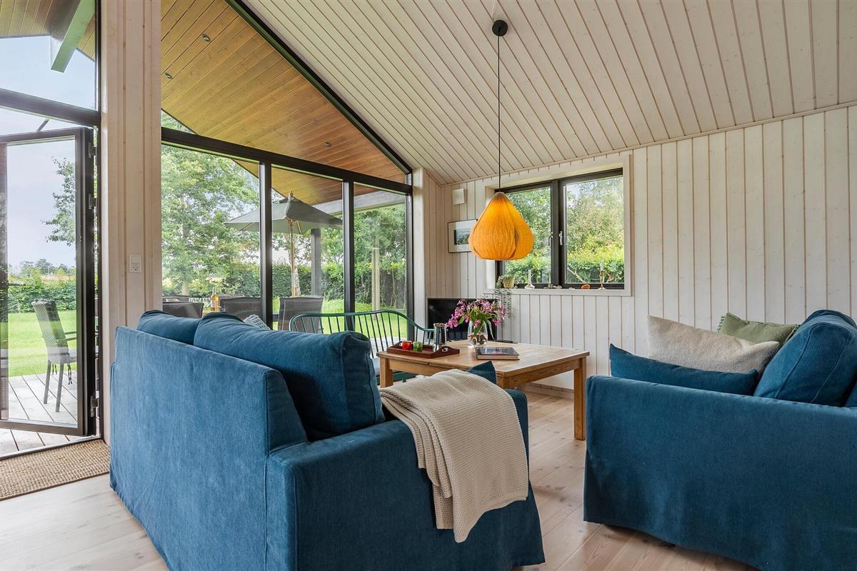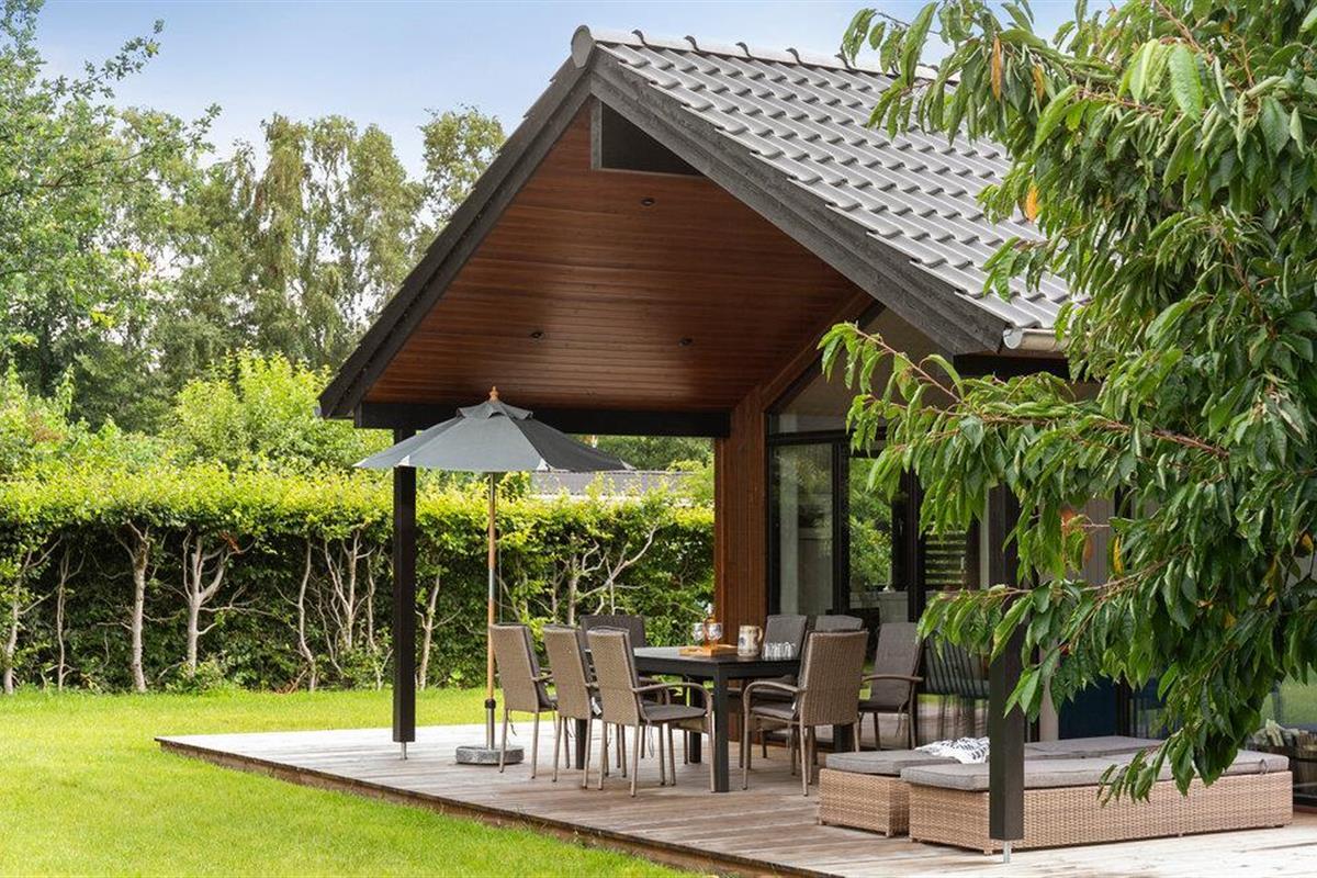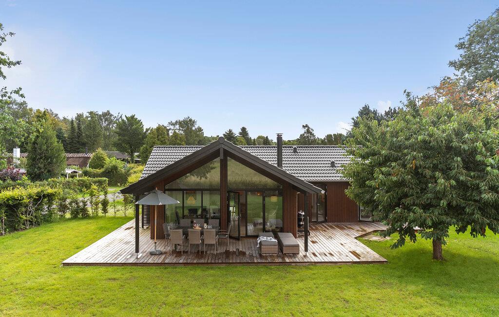 Luxe houten vakantiehuis in Villingebæk met tuin, terras en sfeervolle woonkamer, vlak bij zee en culturele bezienswaardigheden.