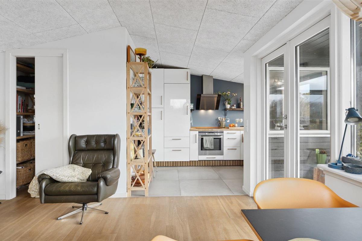 De vakantiewoning is gelegen op een 1200 m² groot natuural grond. Afstand tot de fjord 30 m. Dichtstbijzijnde winkel 500 m. Er is een golfbaan op een afstand van 20000 m. Daarnaast is er een 15 m² groot overdekt terras.Vuurplaats. Shelter. Barbecue. Parkeerplaats bij het huis.